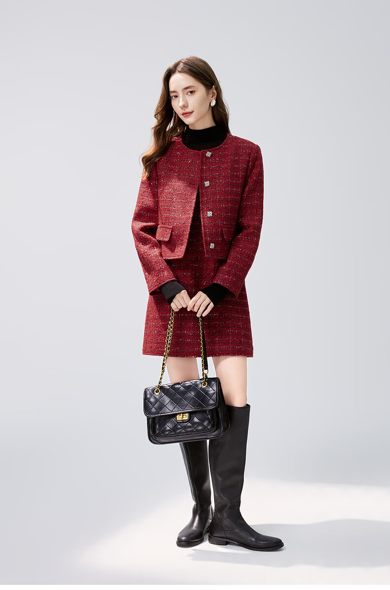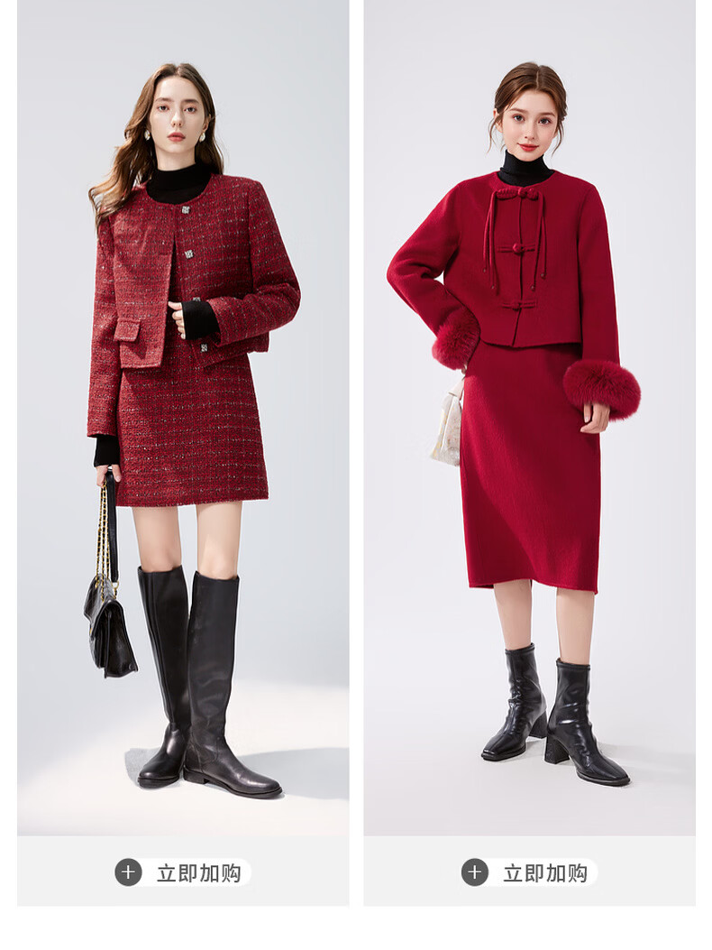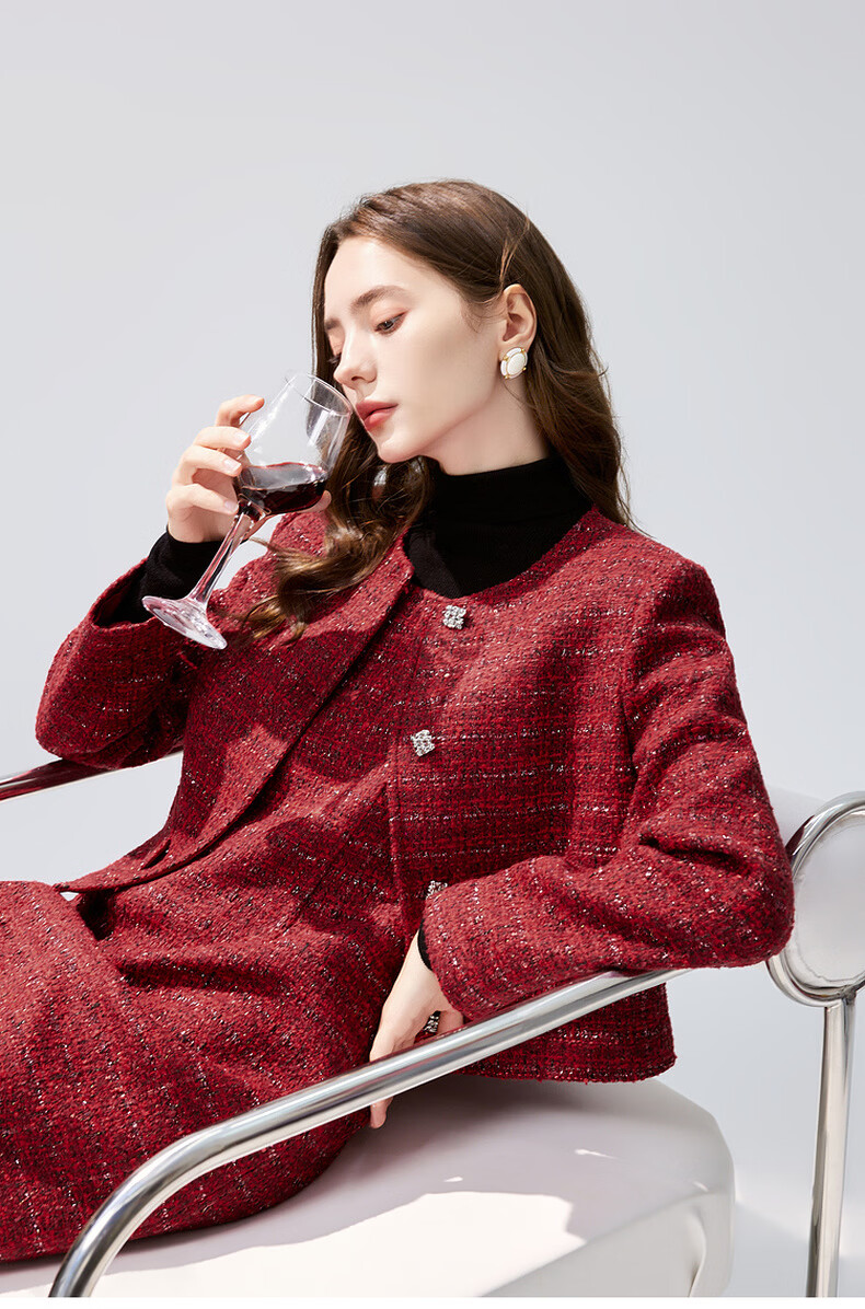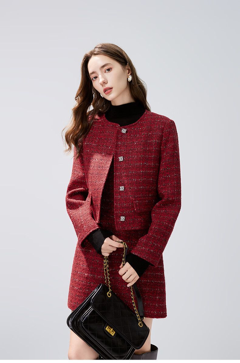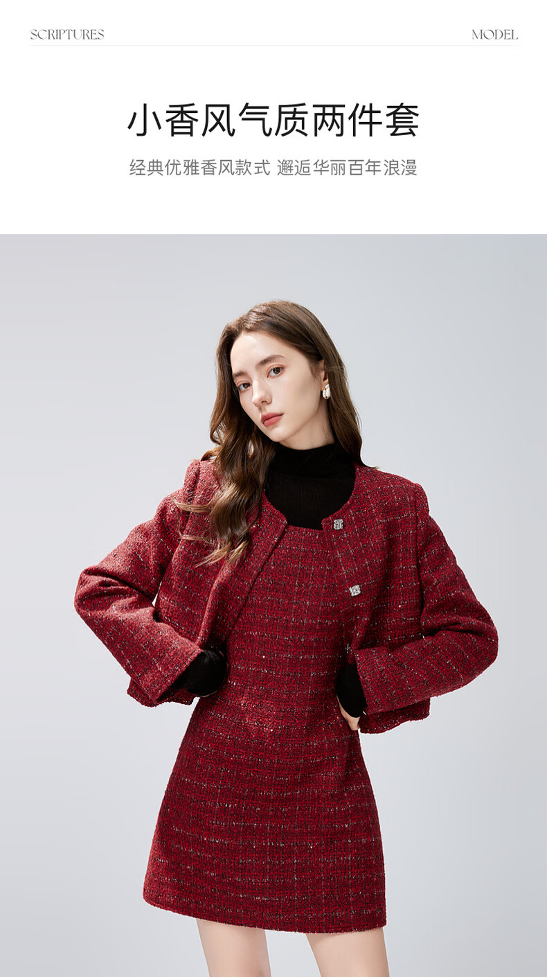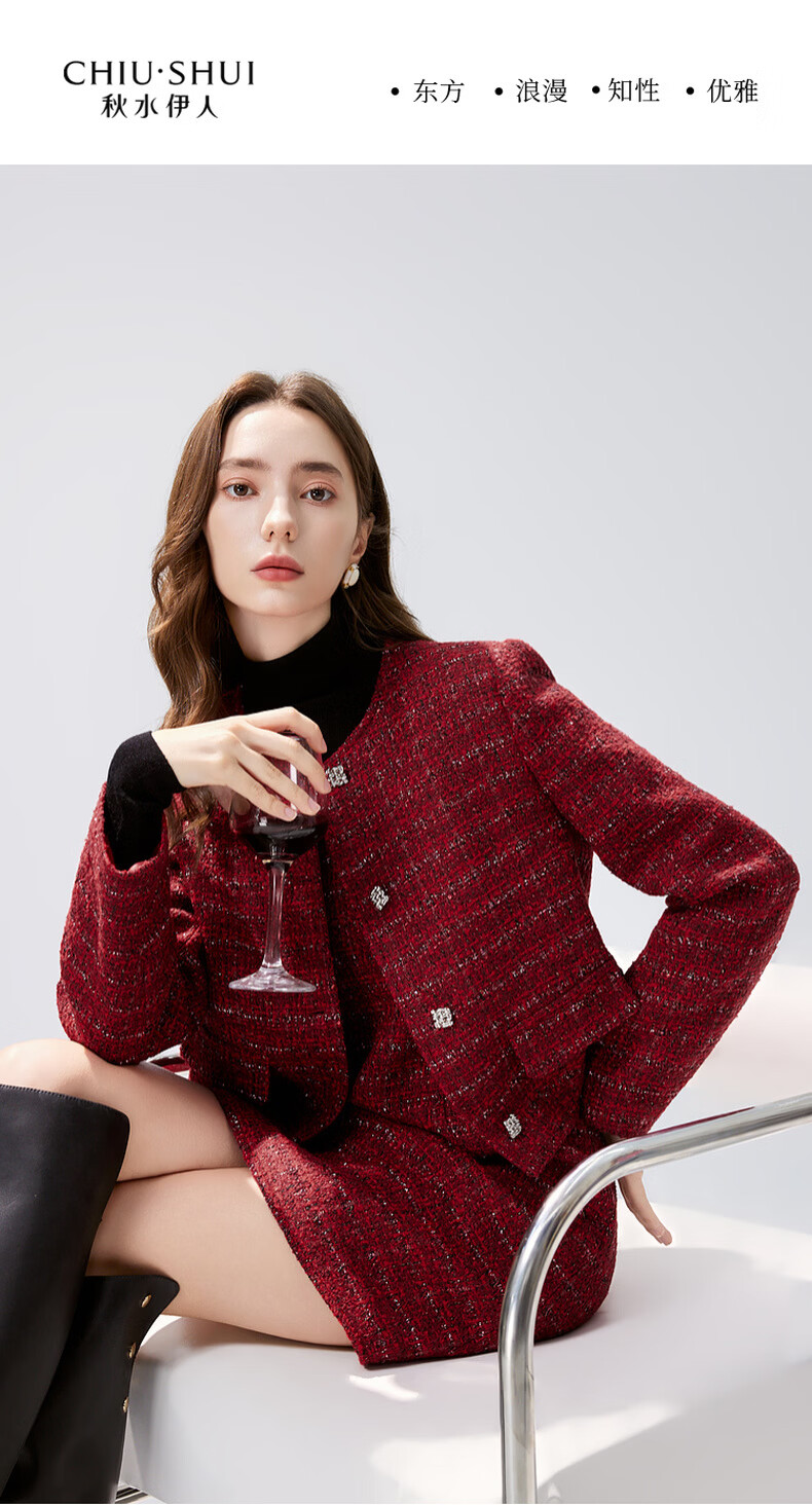Qiushui Yiren Xiaoxiangfeng Sweet Temperament Suit 2025 Winter New Women's Clothing Spring Festival New Year Red Two-piece Set Big Red S