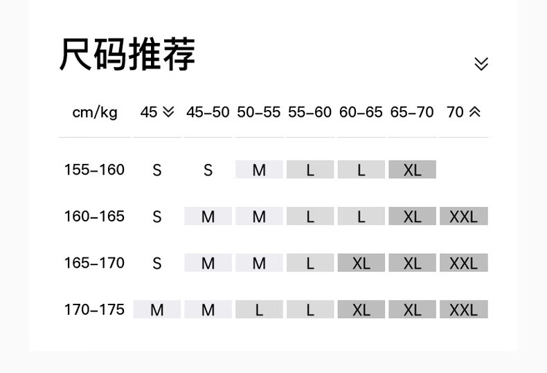 China (cm) 160-165/84-86 165-170 / 88-90 167-172 / 92-96 168-173 / 98-102 170-176 / 106-110