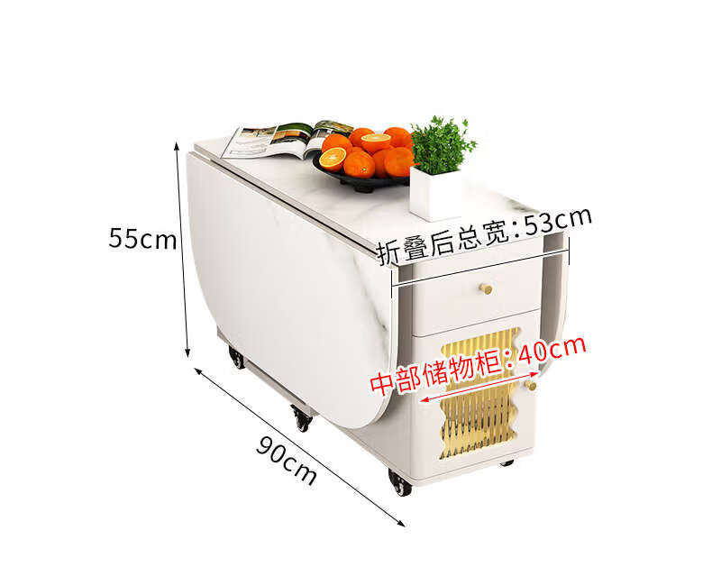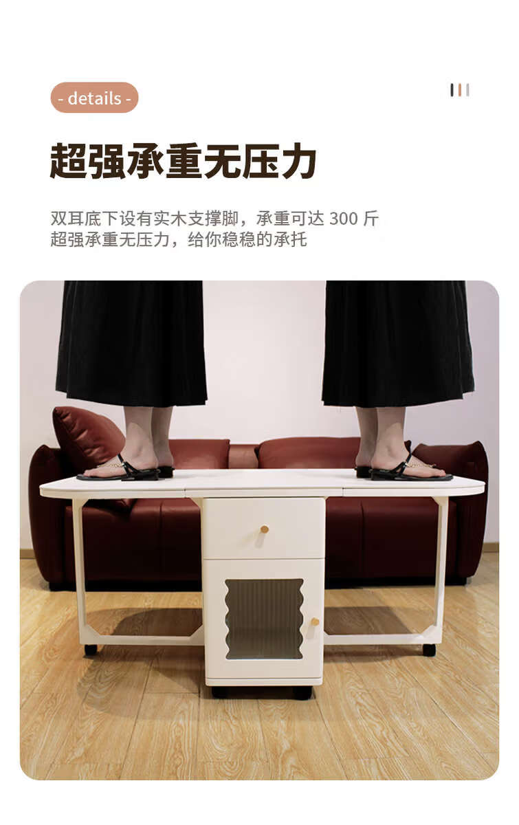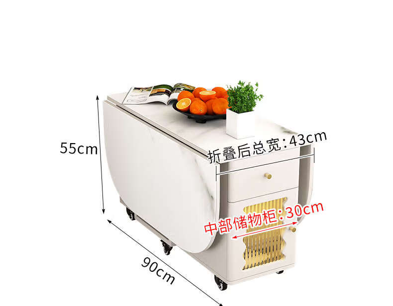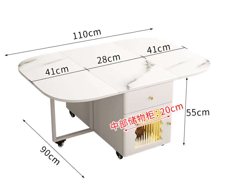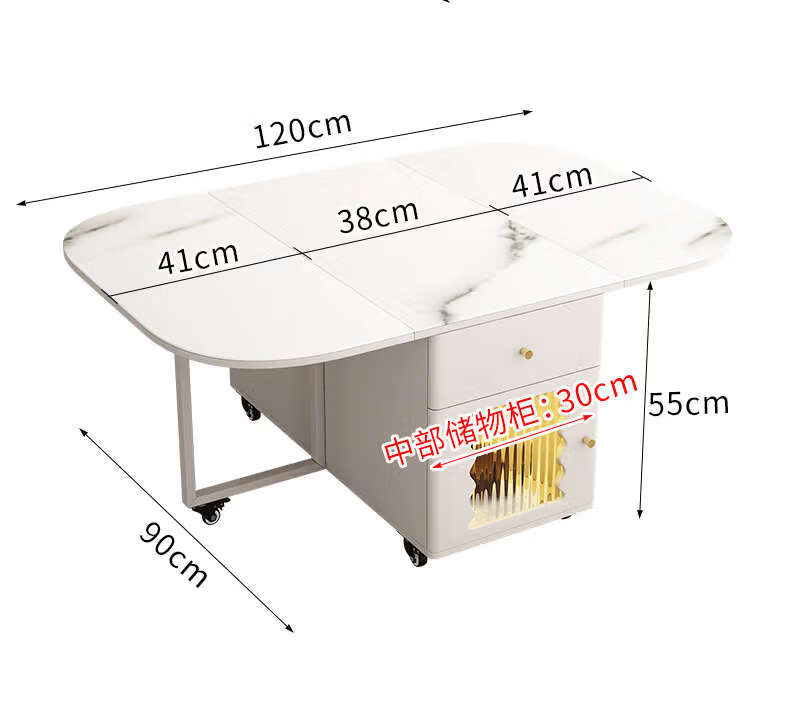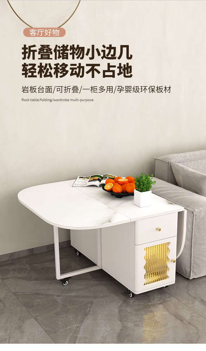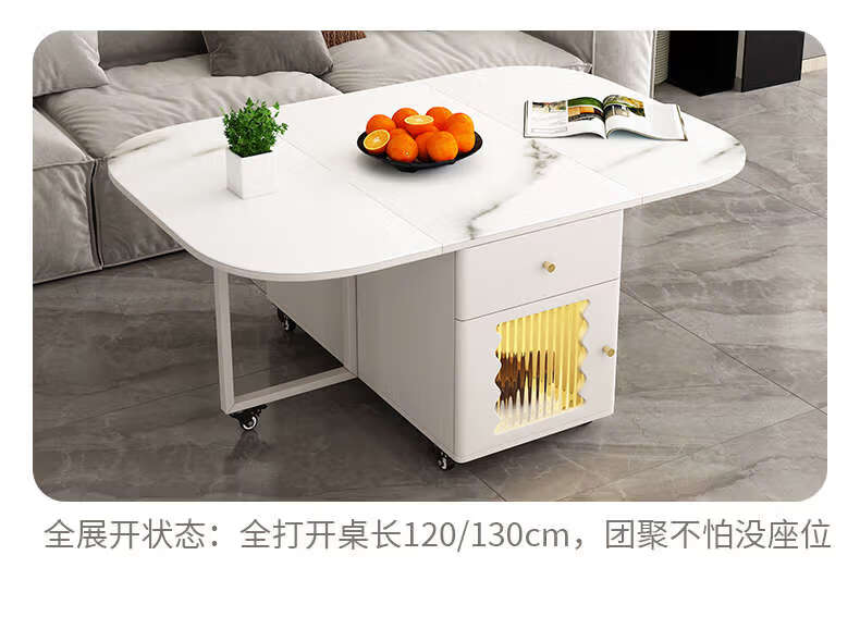 Yusenyi small apartment living room sofa movable coffee table folding side cabinet tea table home coffee table dining table integrated 30cm warm white snow mountain white slate with matching high cabinet
