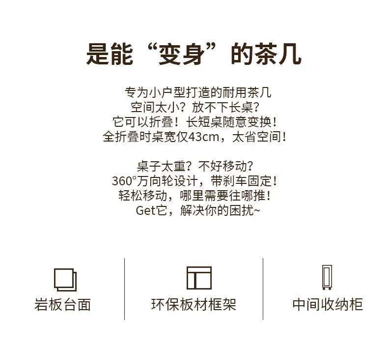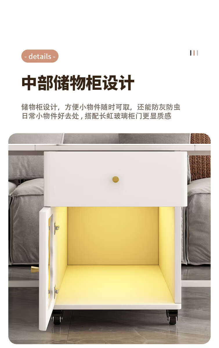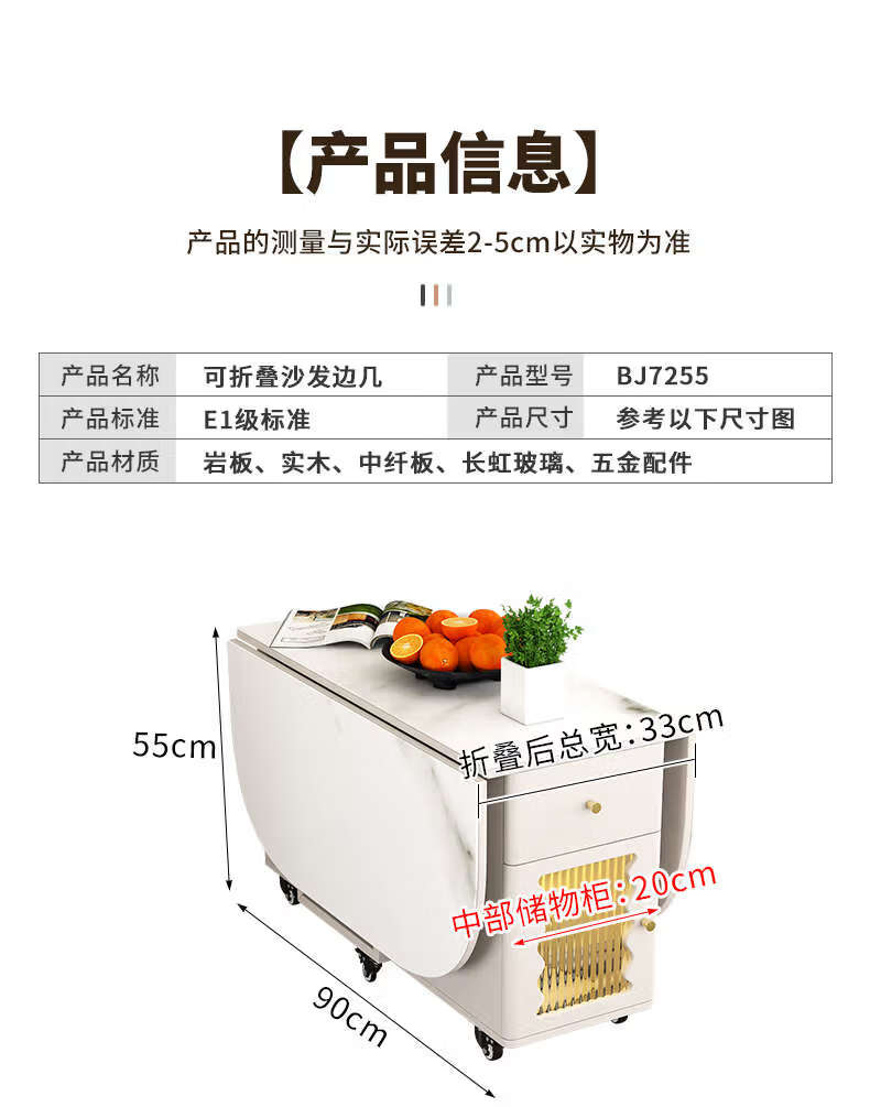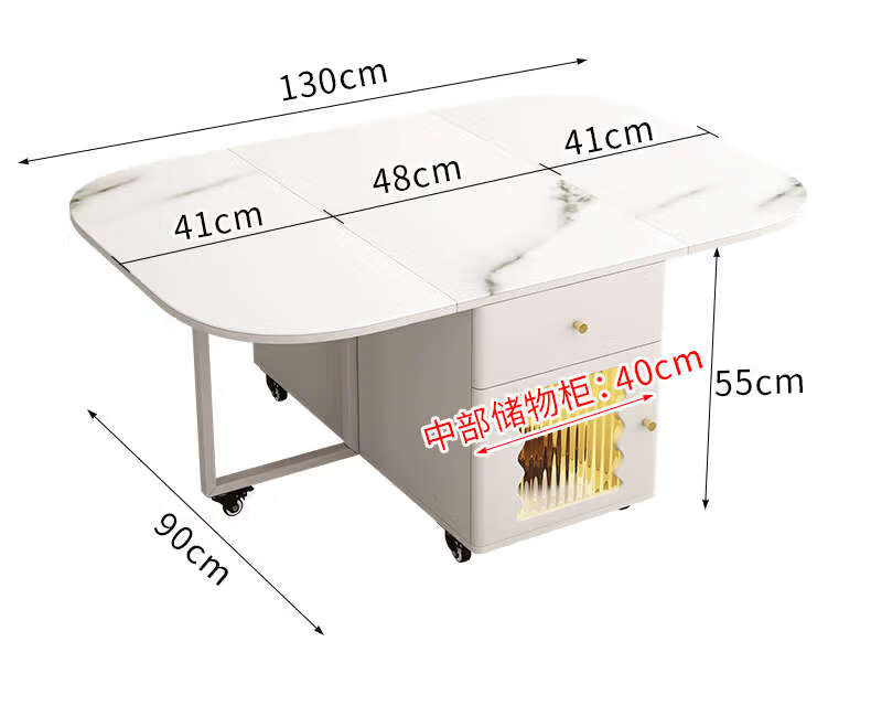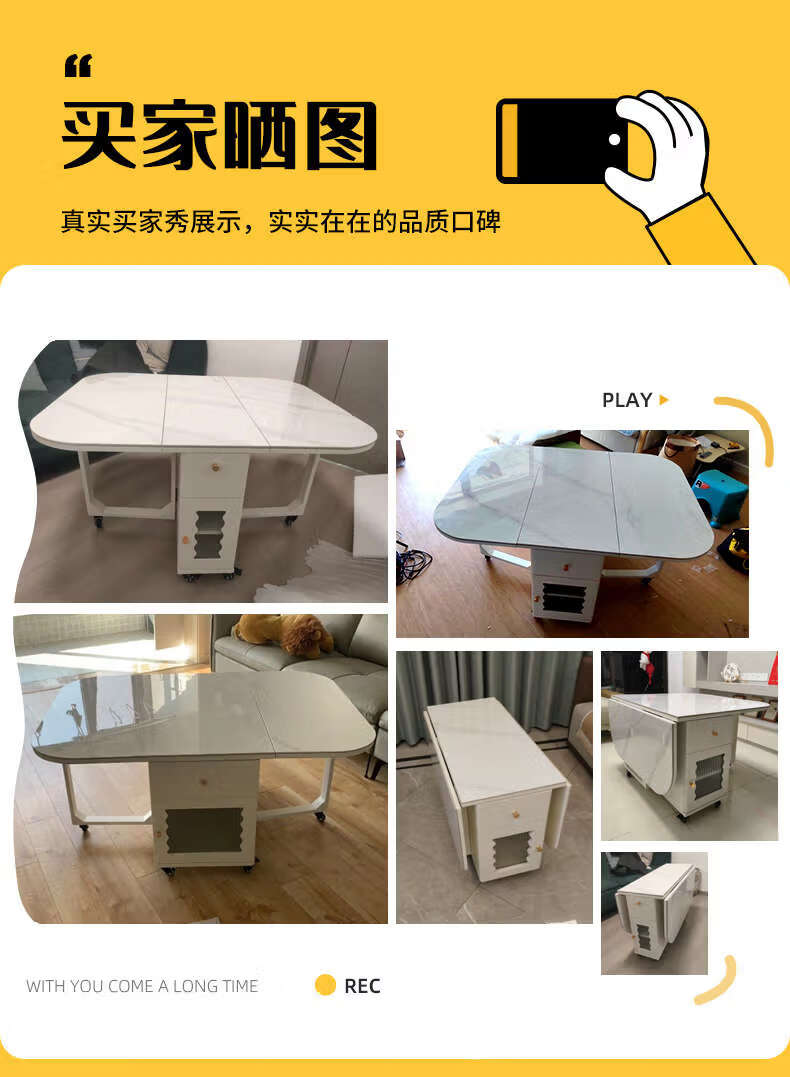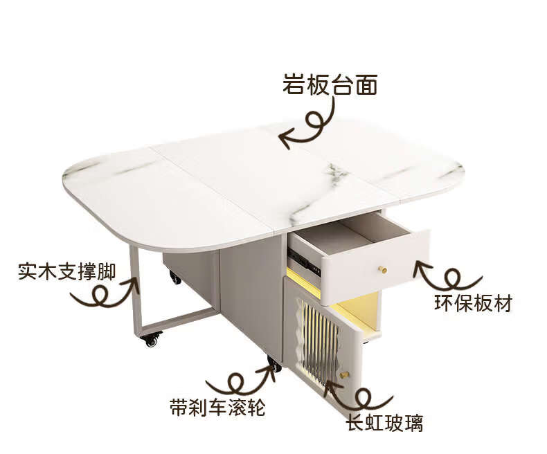 Yusenyi small apartment living room sofa movable coffee table folding side cabinet tea table home coffee table dining table integrated 30cm warm white snow mountain white slate with matching high cabinet