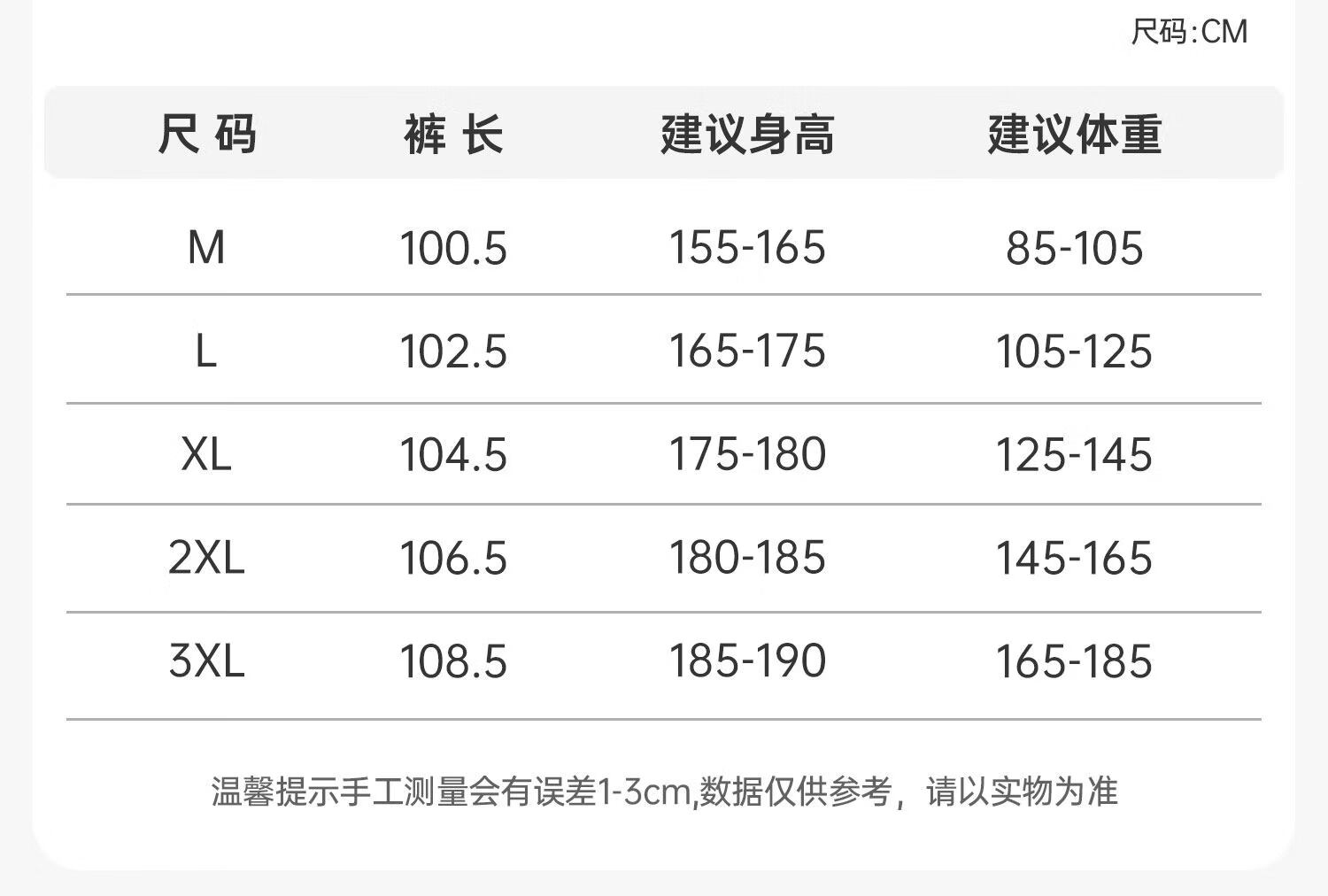 Outseam (cm) 99 cm 101.5 cm 104 cm 106.5 cm 109 cm