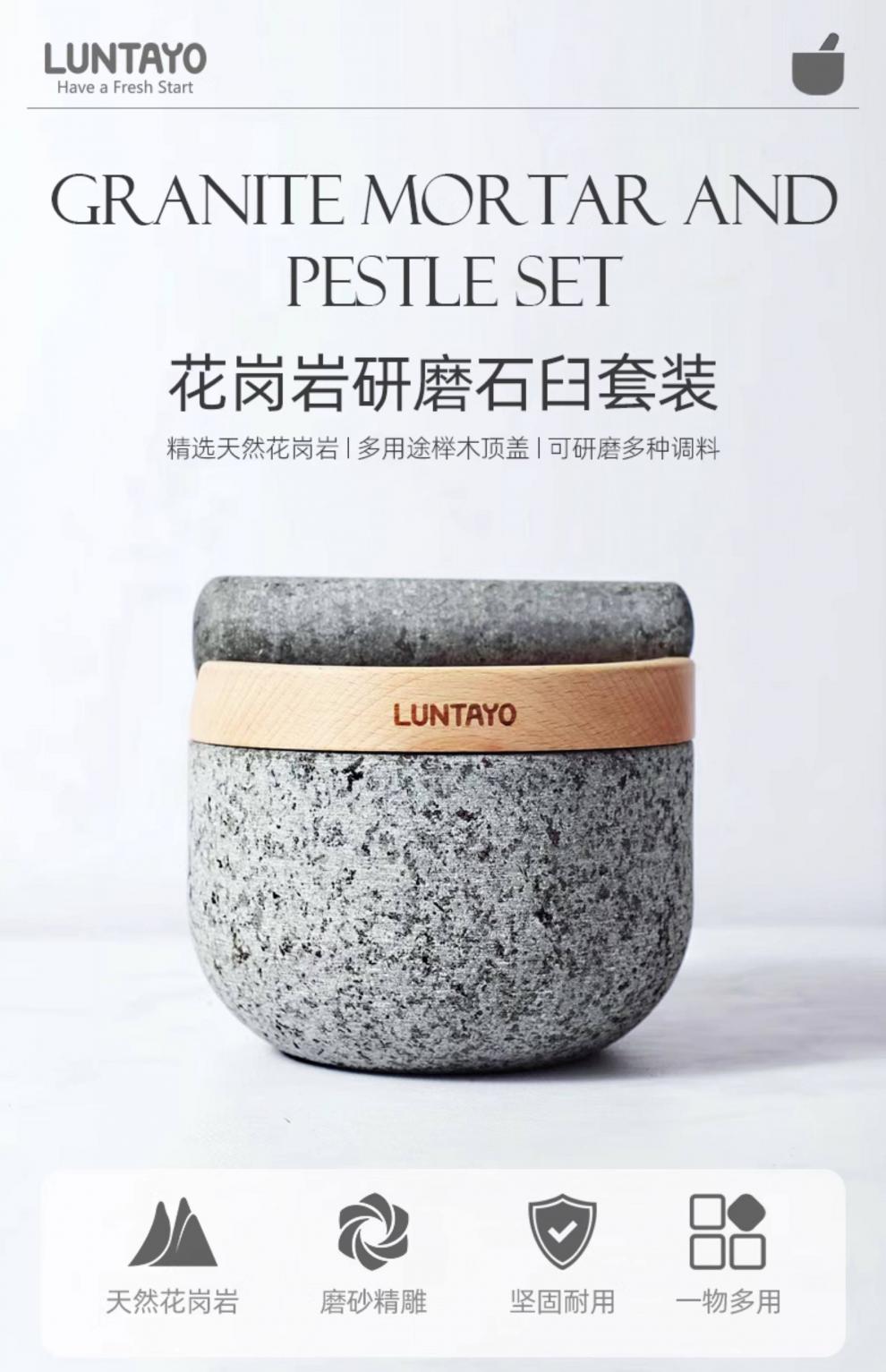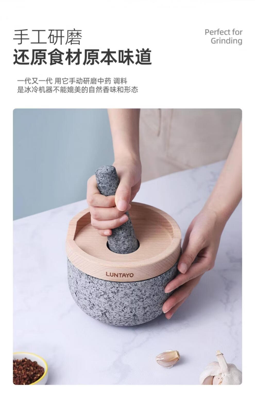 Shaofan natural imported granite mortar garlic mortar household garlic press old-fashioned garlic paste grinder spice grinder granite stone mortar grinder set