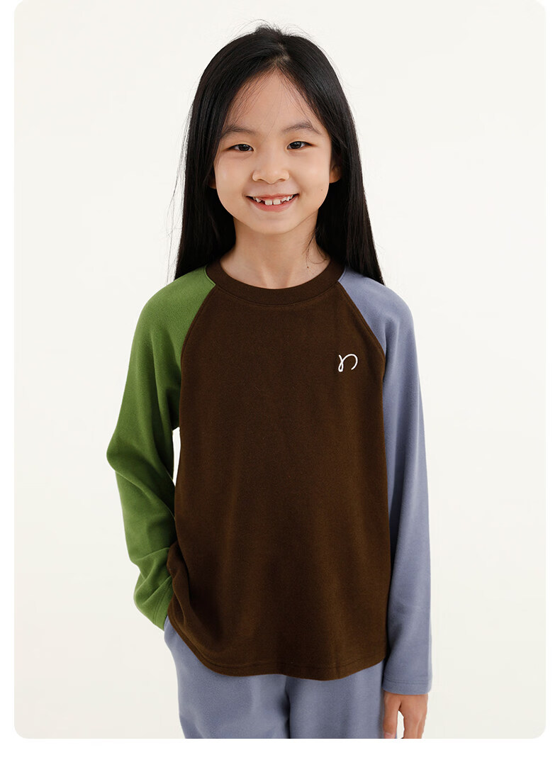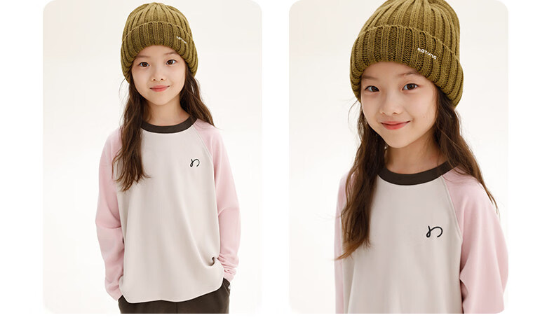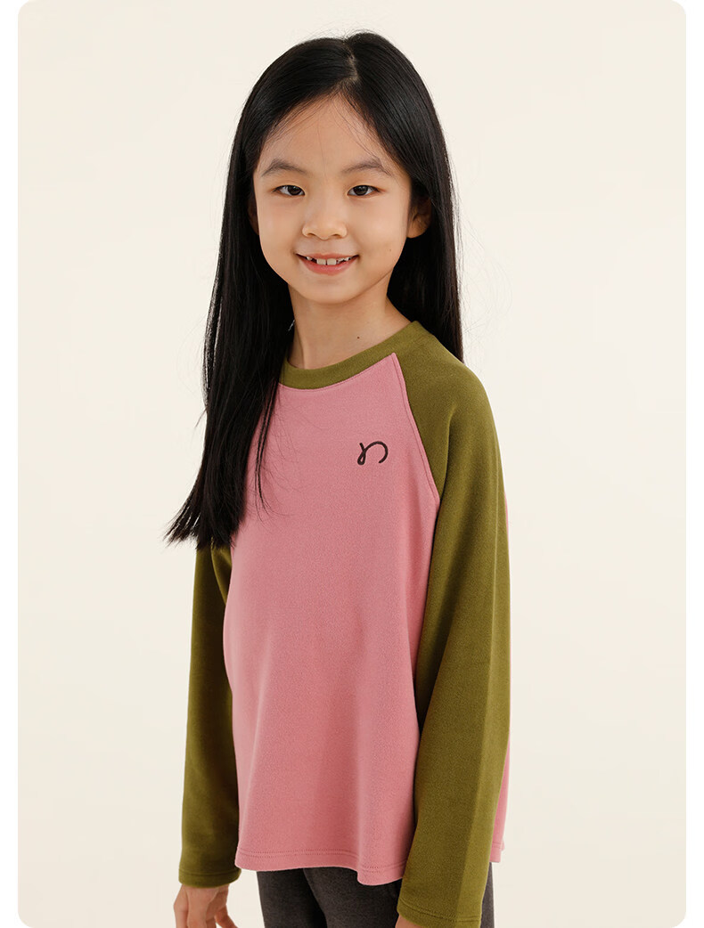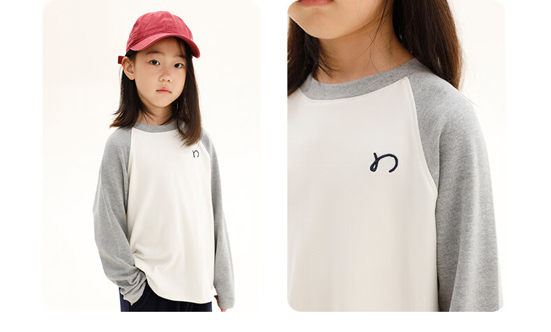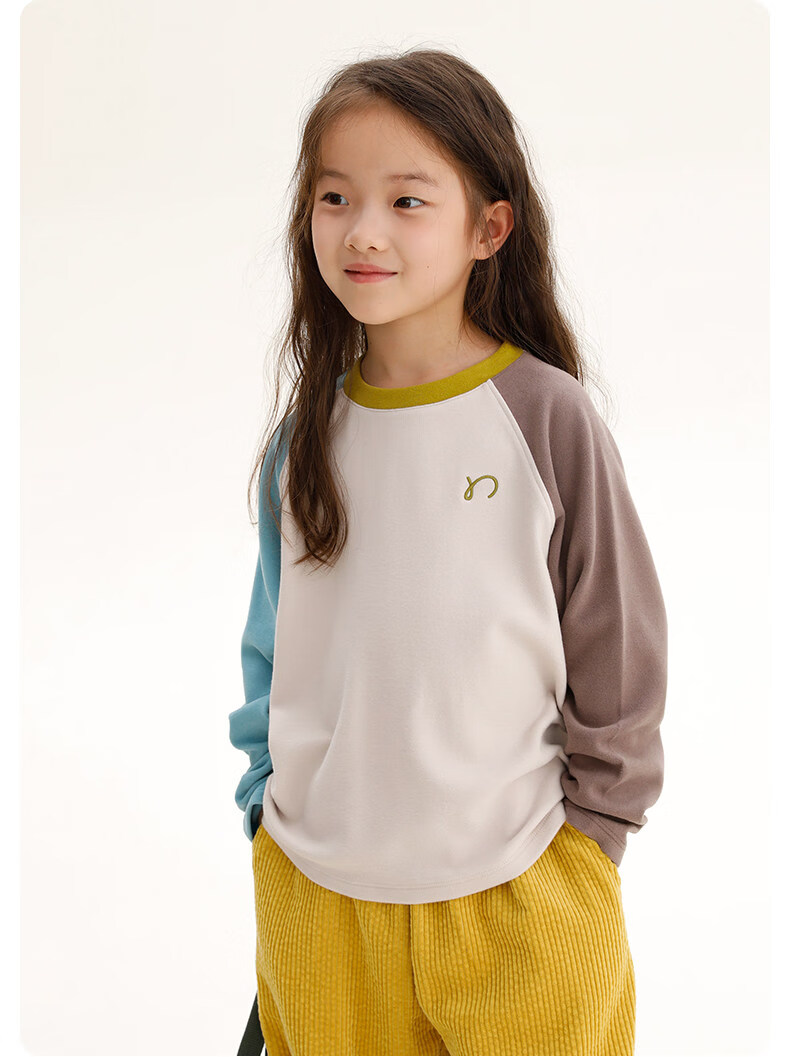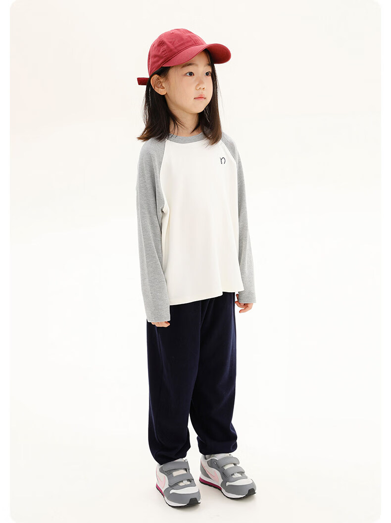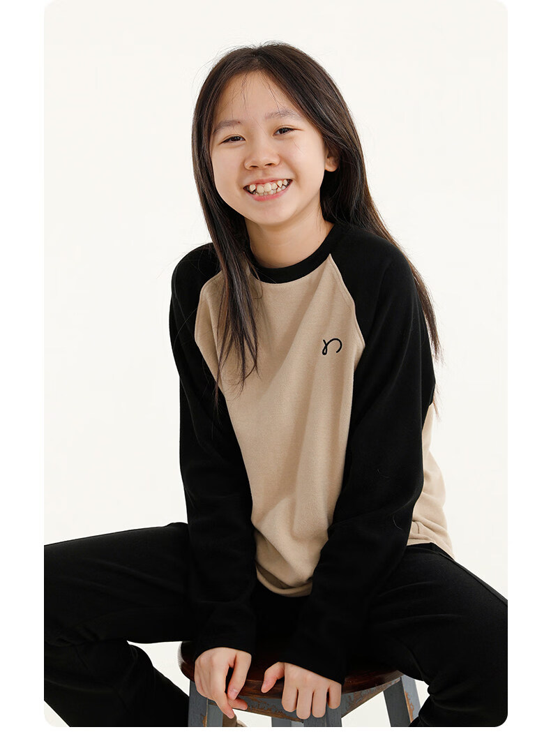 Najie capsule Najie family parent-child light warm velvet without static electricity children's warm thin velvet raglan long-sleeved T-shirt milk gray white sweet powder splicing ready stock 165 cm