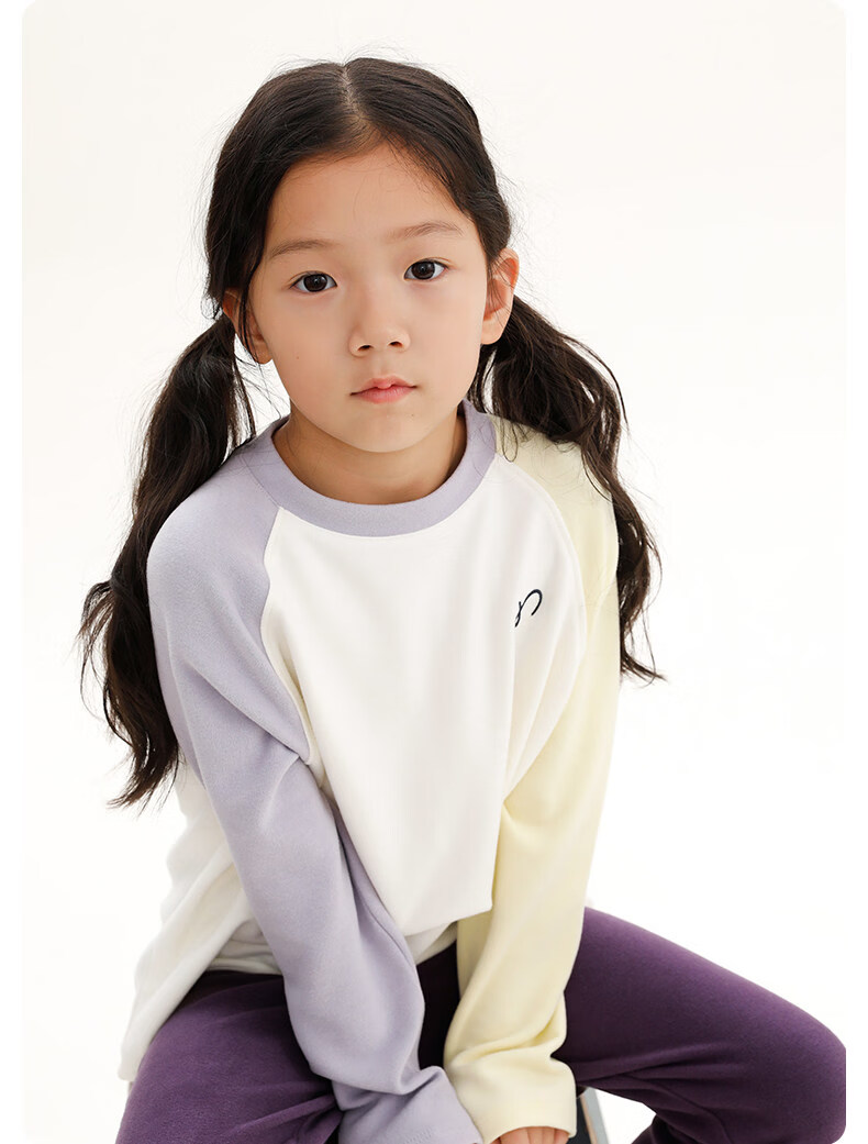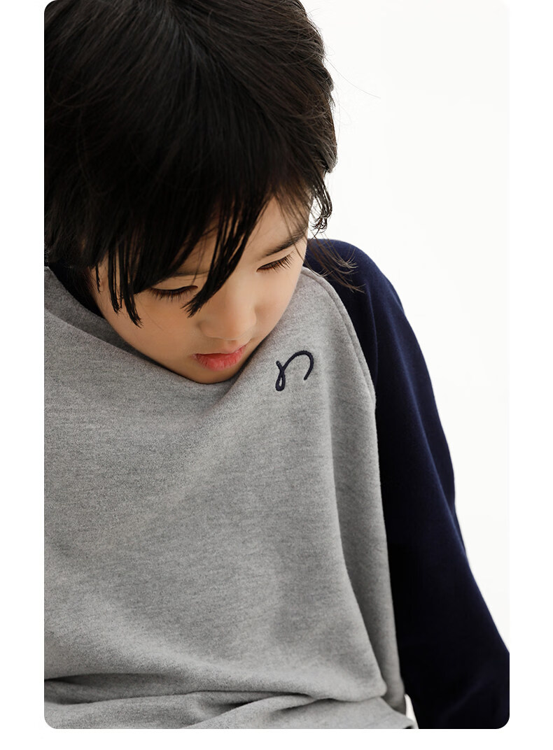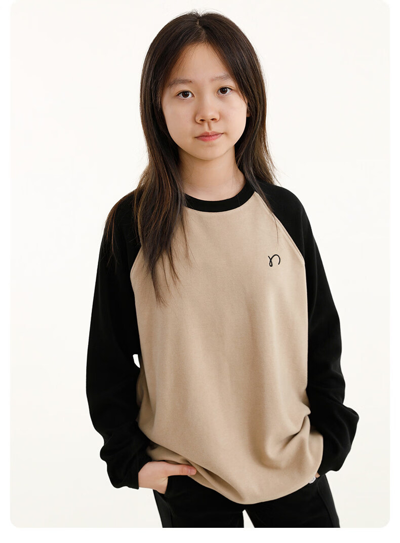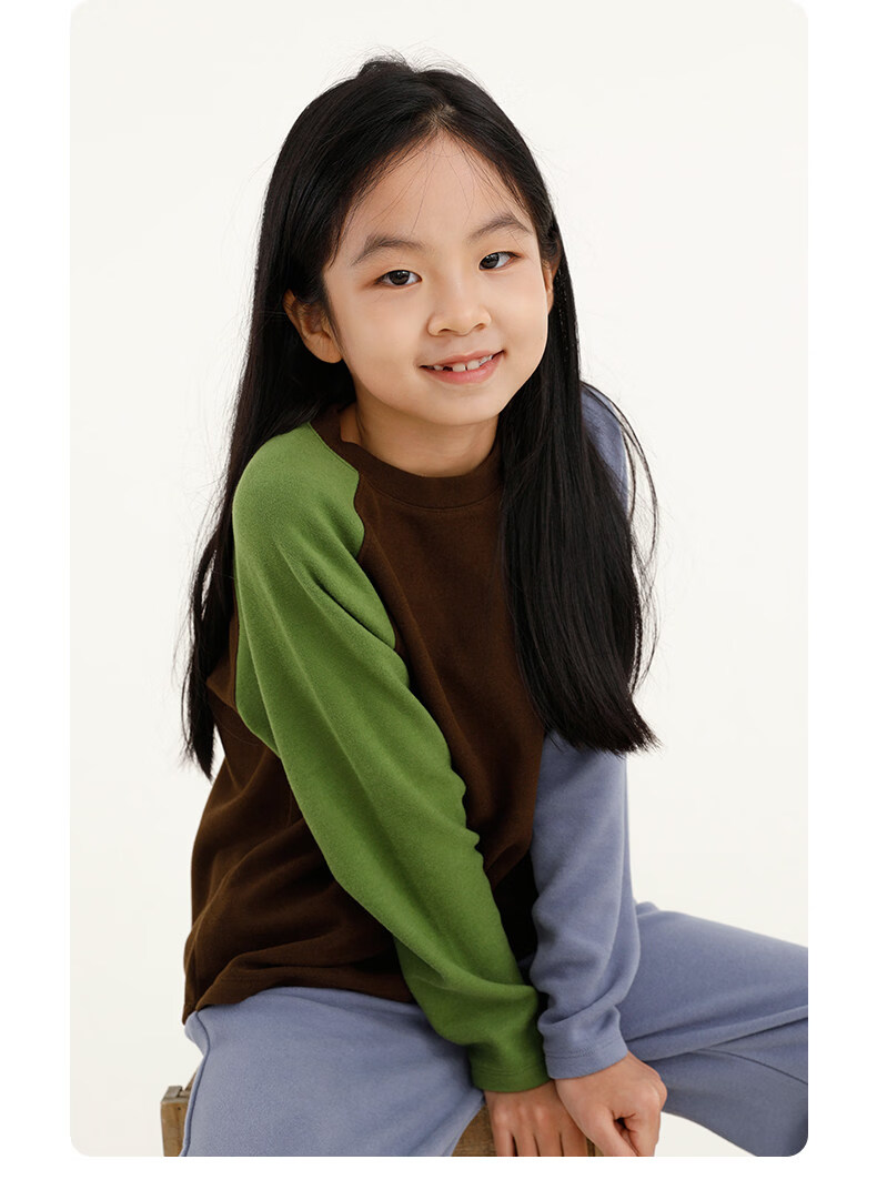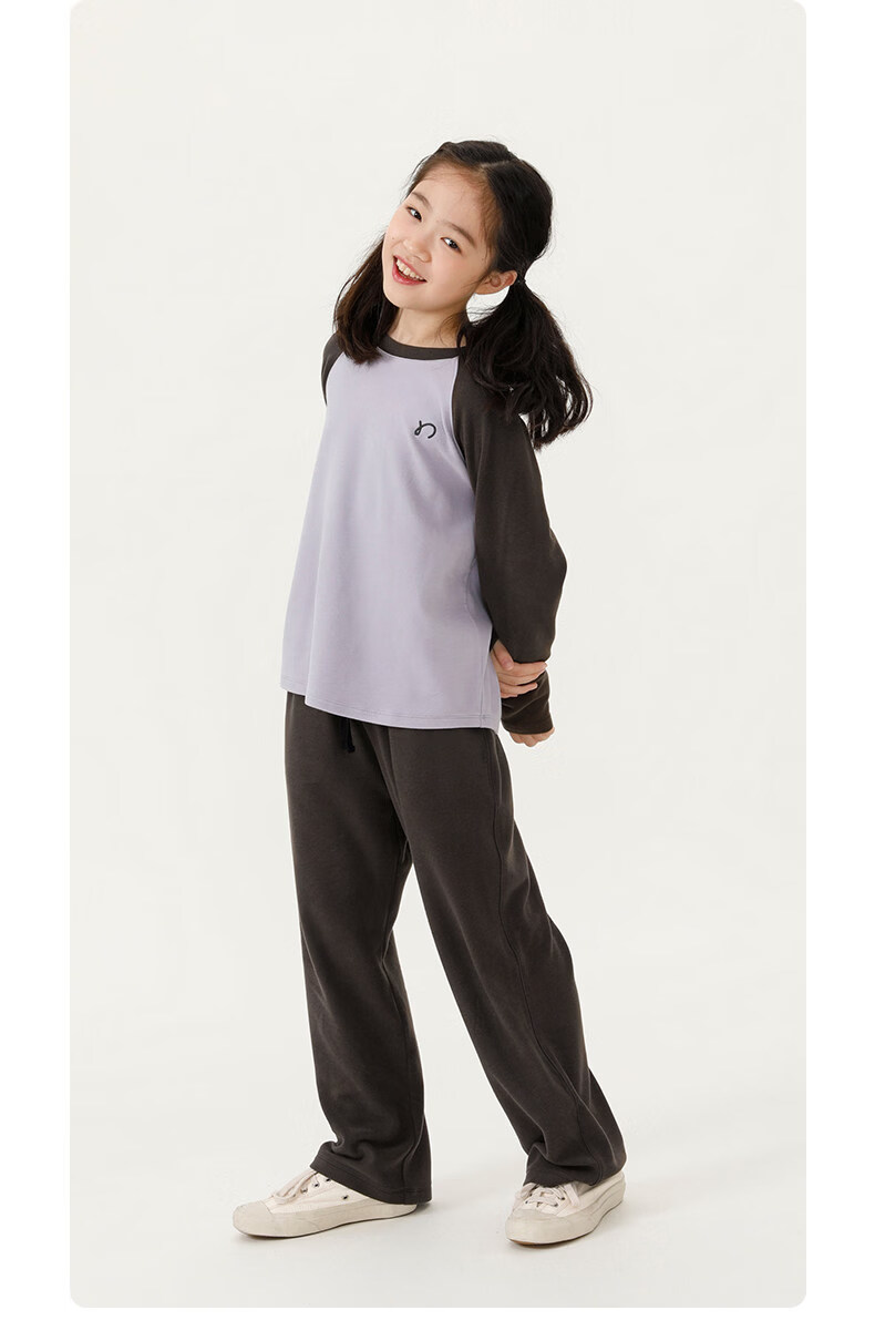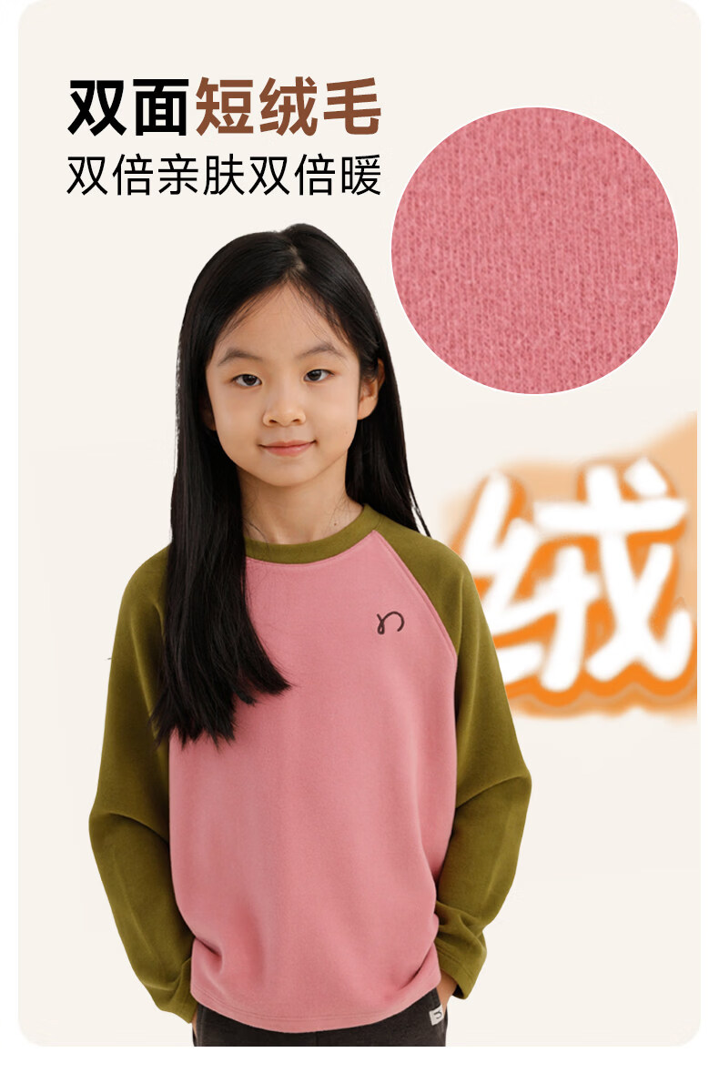 Najie capsule Najie family parent-child light warm velvet without static electricity children's warm thin velvet raglan long-sleeved T-shirt milk gray white sweet powder splicing ready stock 165 cm