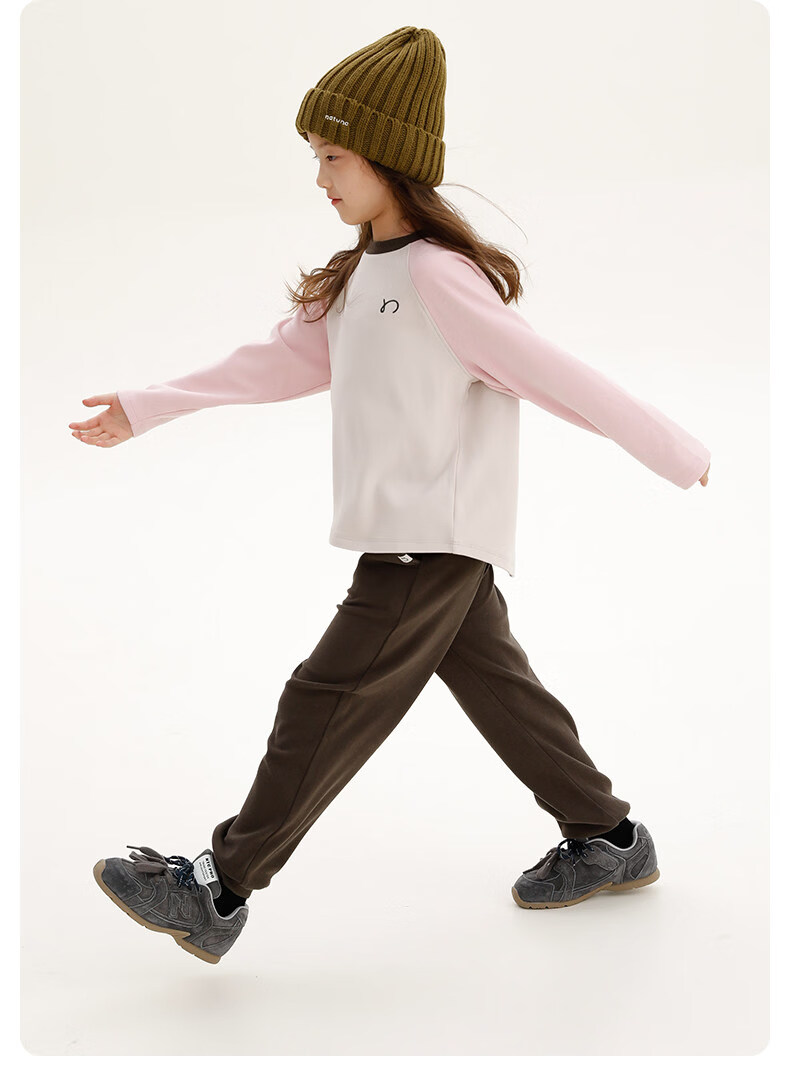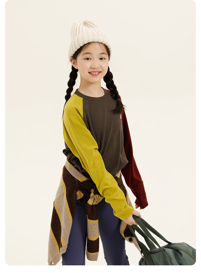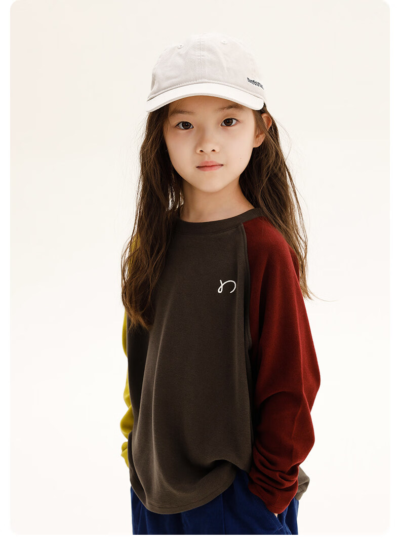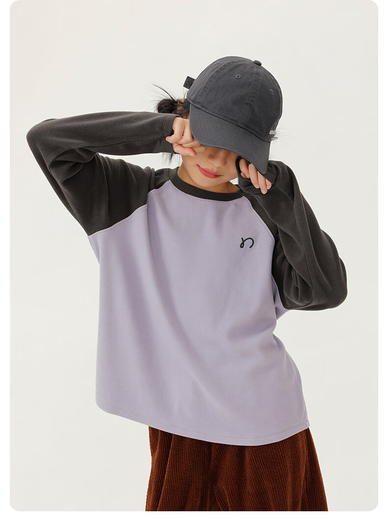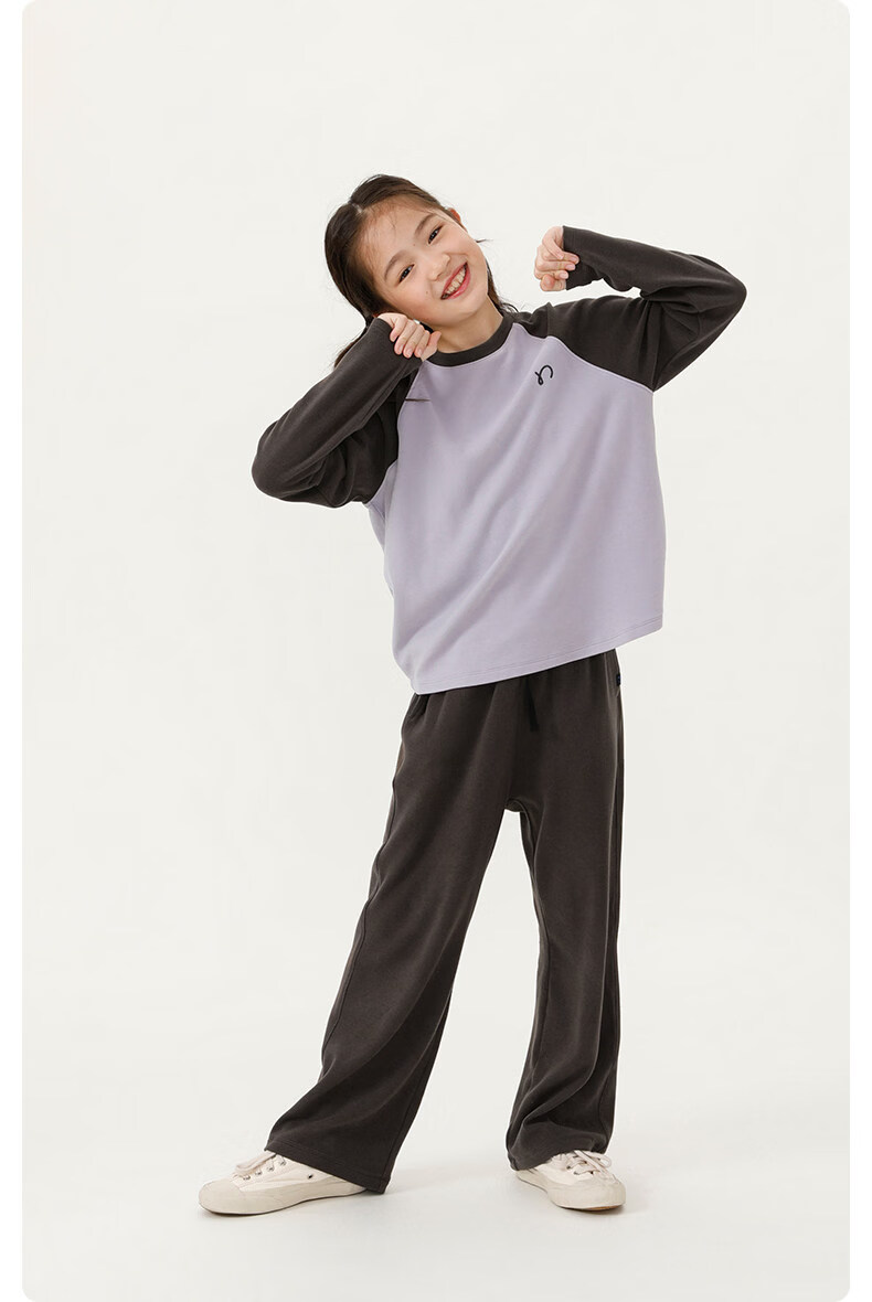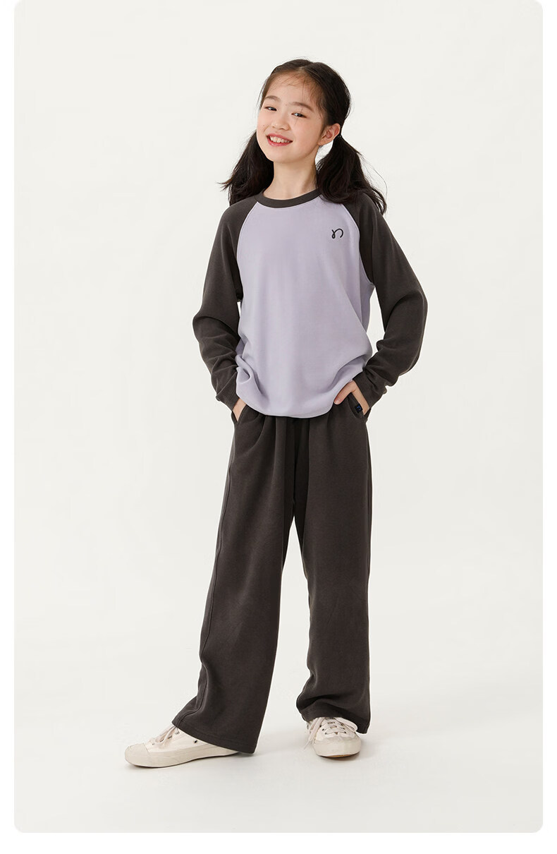 Najie capsule Najie family parent-child light warm velvet without static electricity children's warm thin velvet raglan long-sleeved T-shirt milk gray white sweet powder splicing ready stock 165 cm