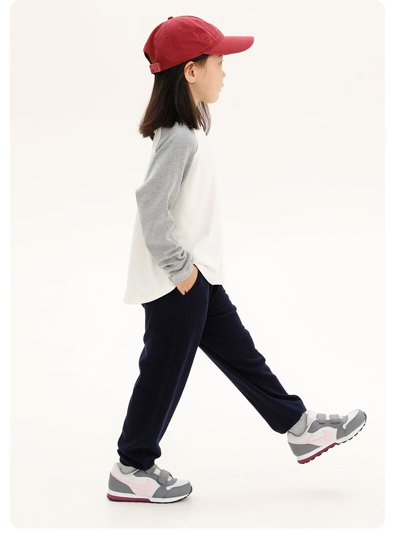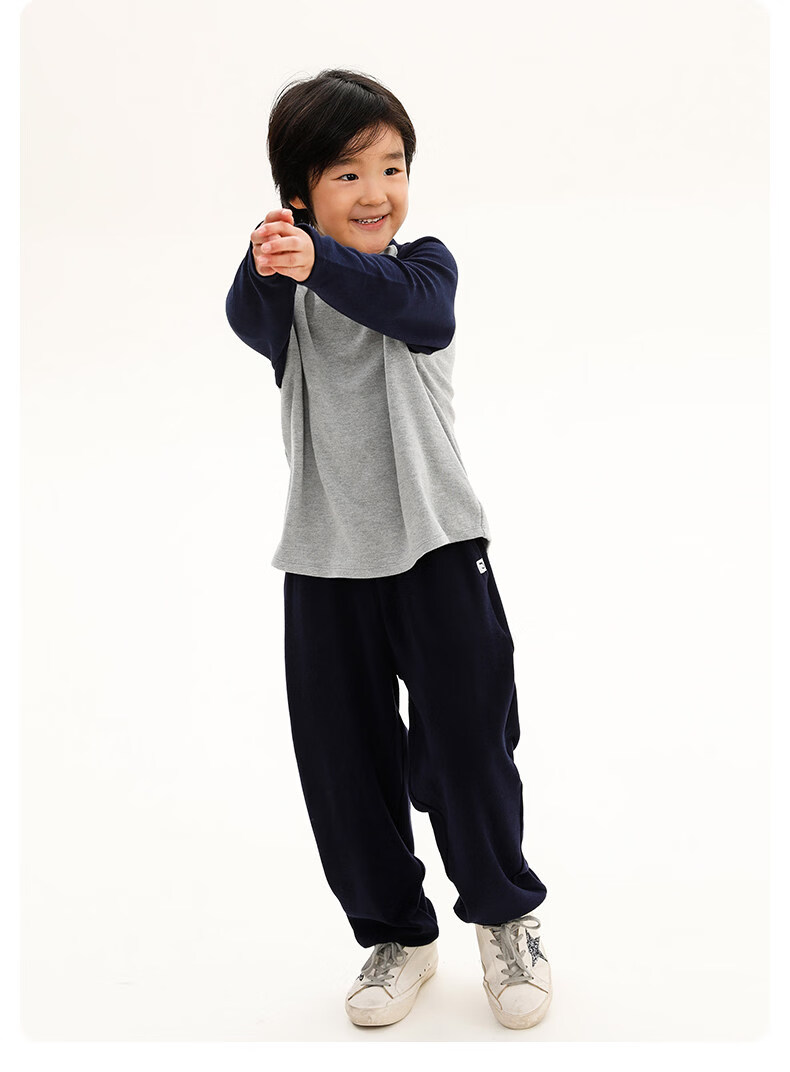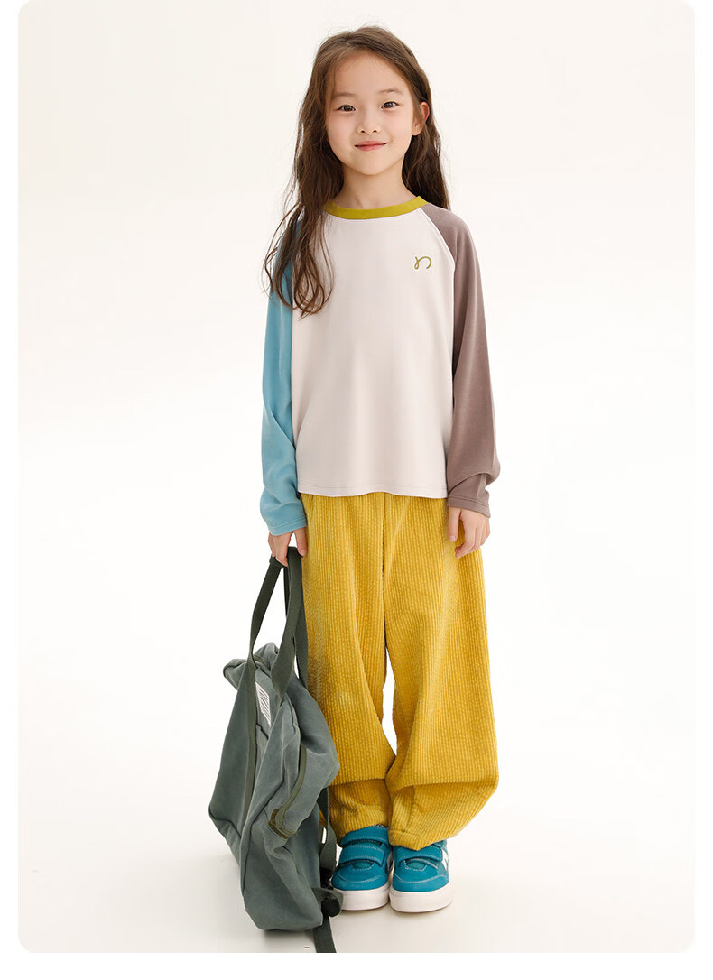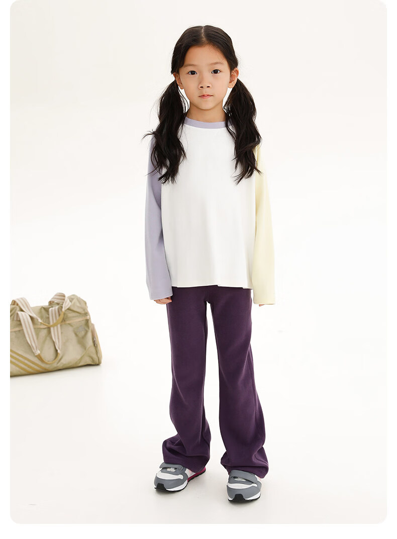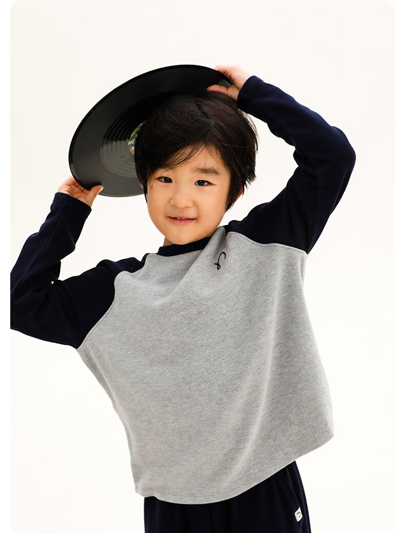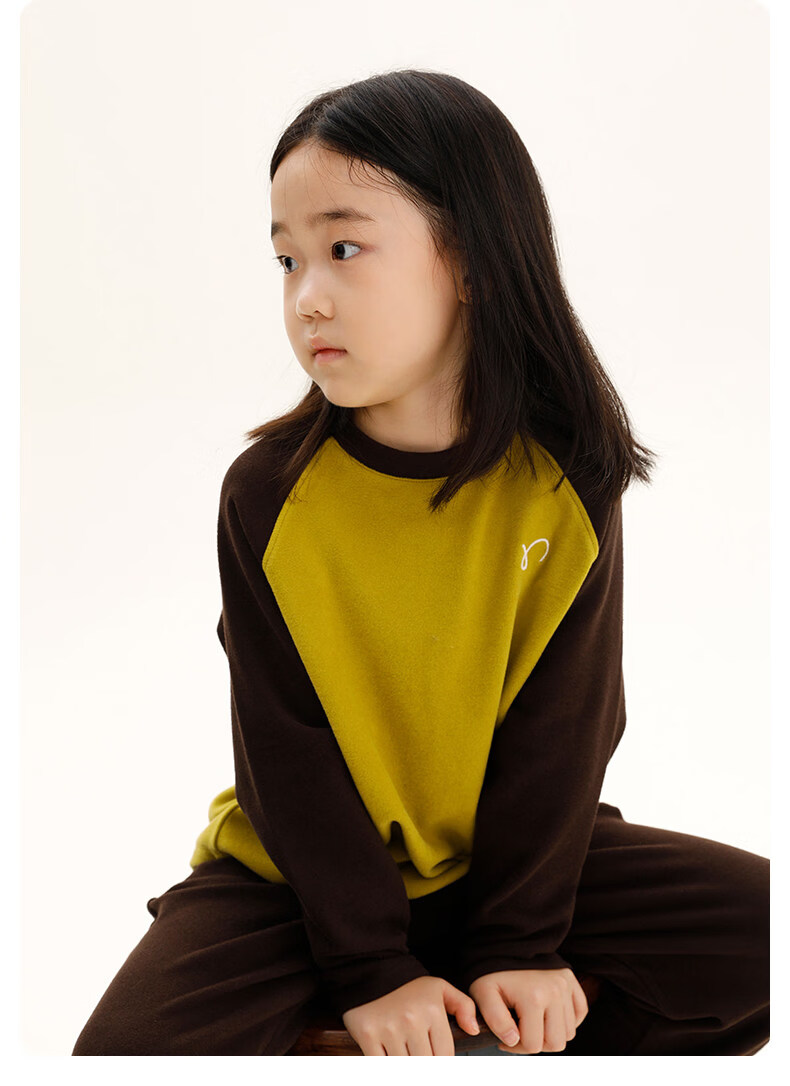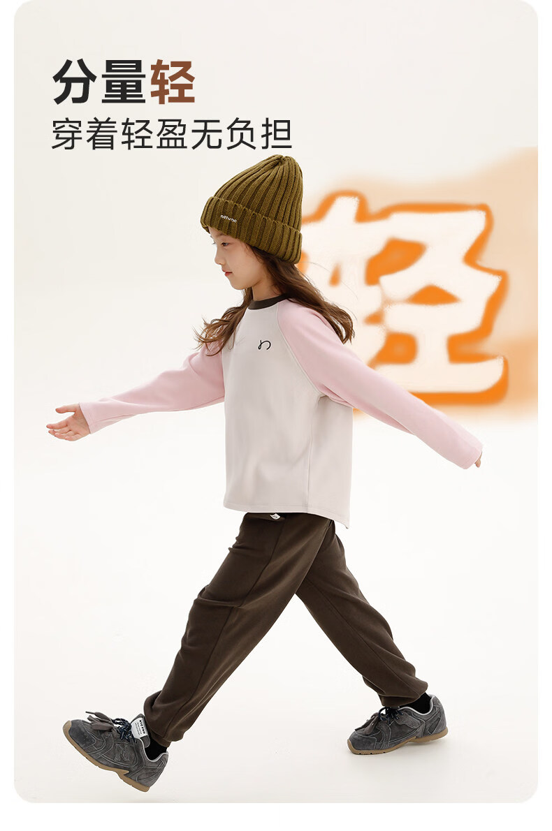 Najie capsule Najie family parent-child light warm velvet without static electricity children's warm thin velvet raglan long-sleeved T-shirt milk gray white sweet powder splicing ready stock 165 cm