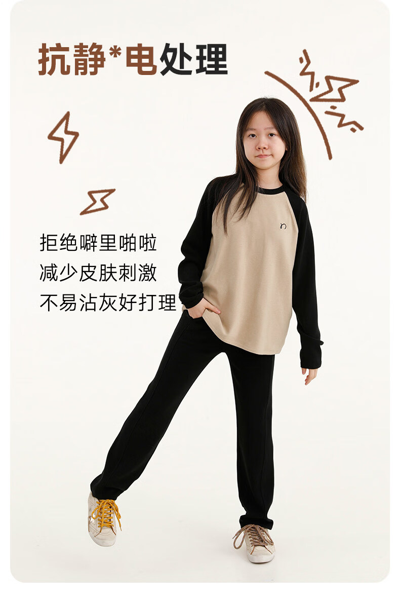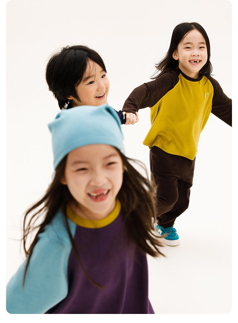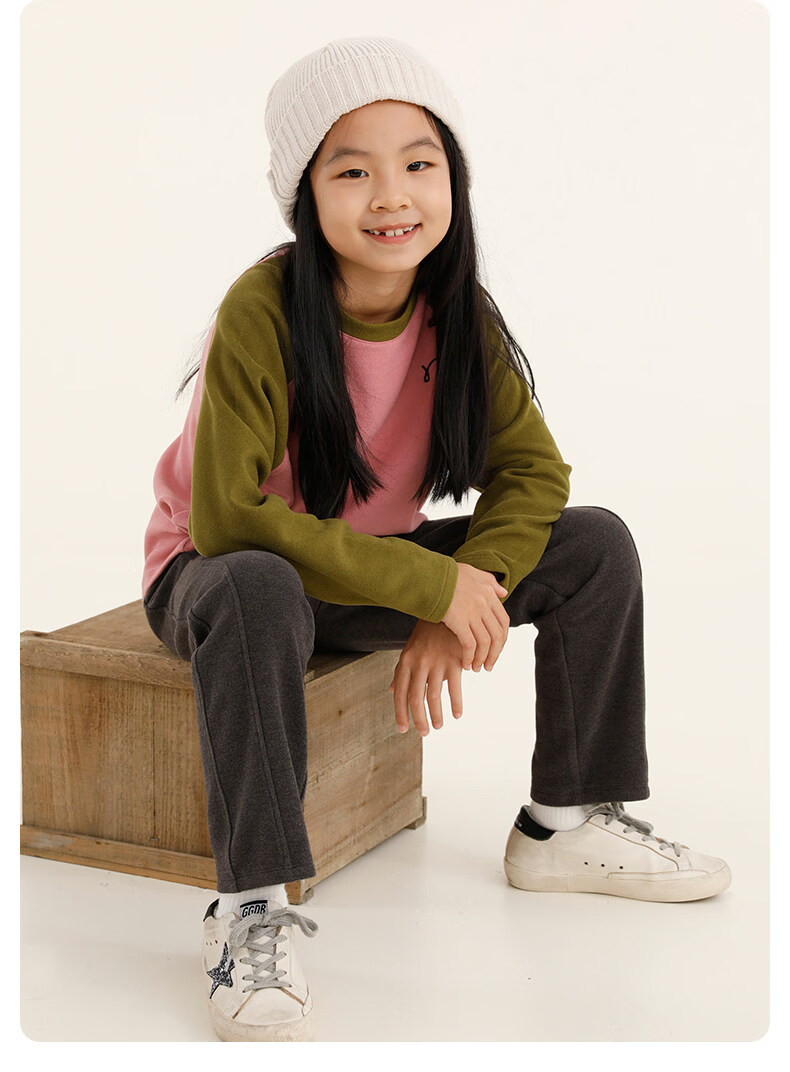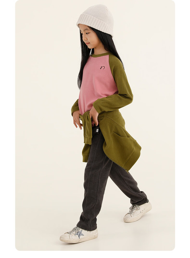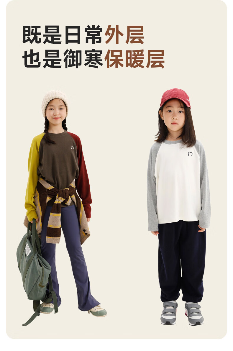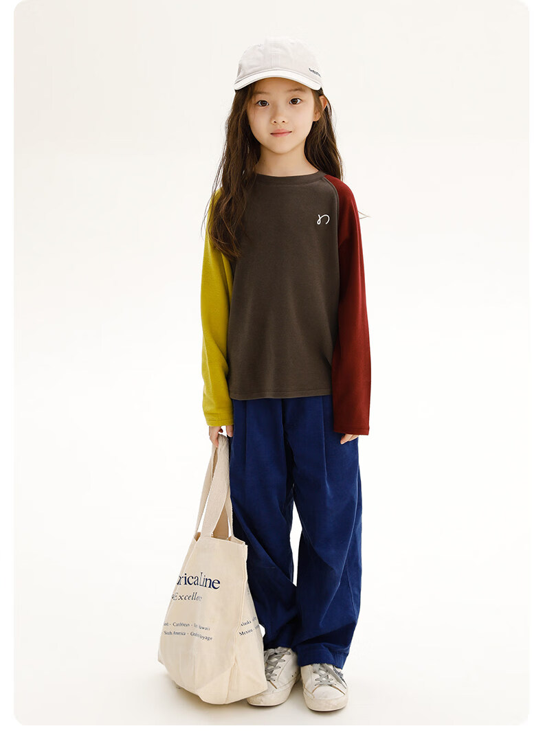 Najie capsule Najie family parent-child light warm velvet without static electricity children's warm thin velvet raglan long-sleeved T-shirt milk gray white sweet powder splicing ready stock 165 cm