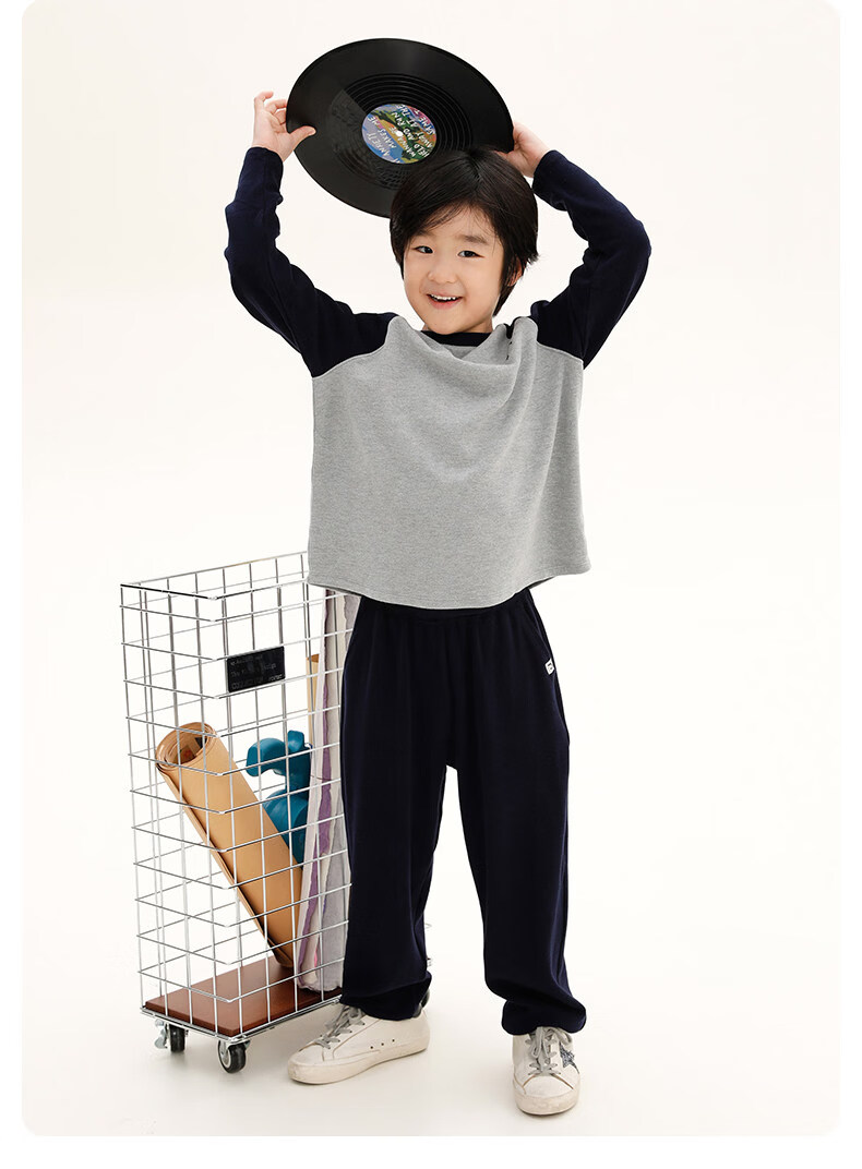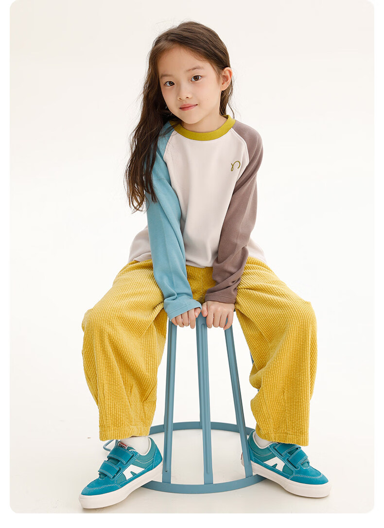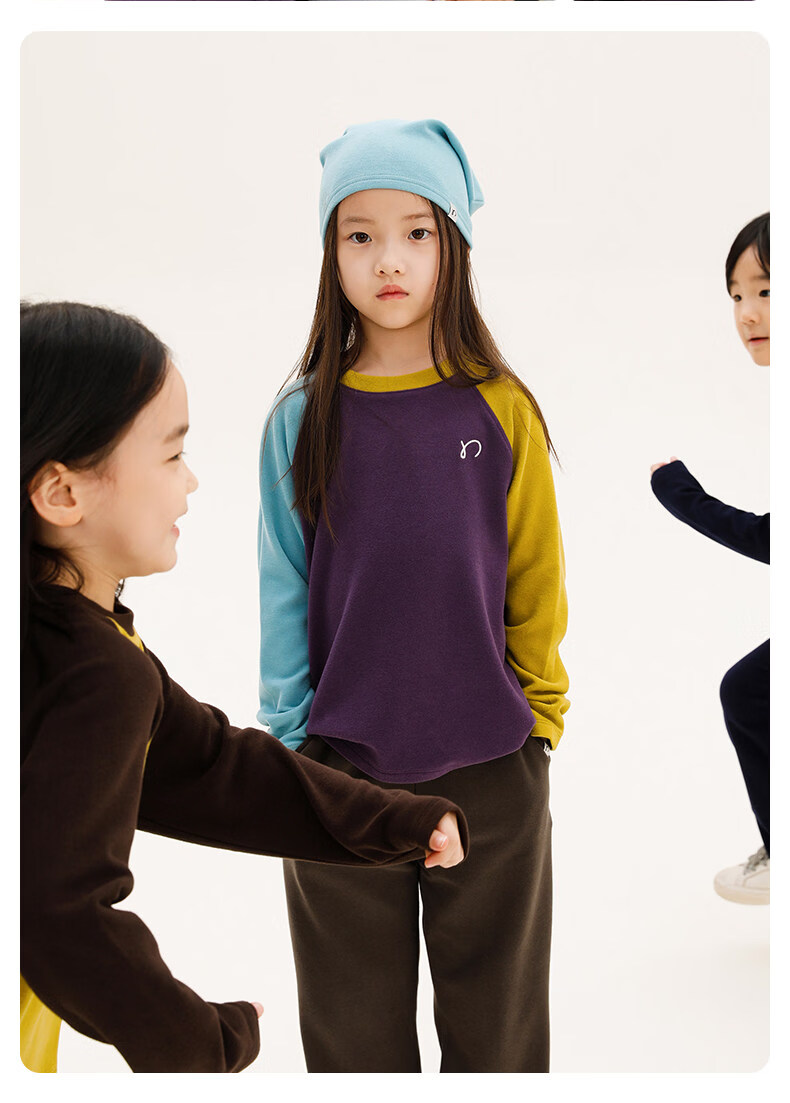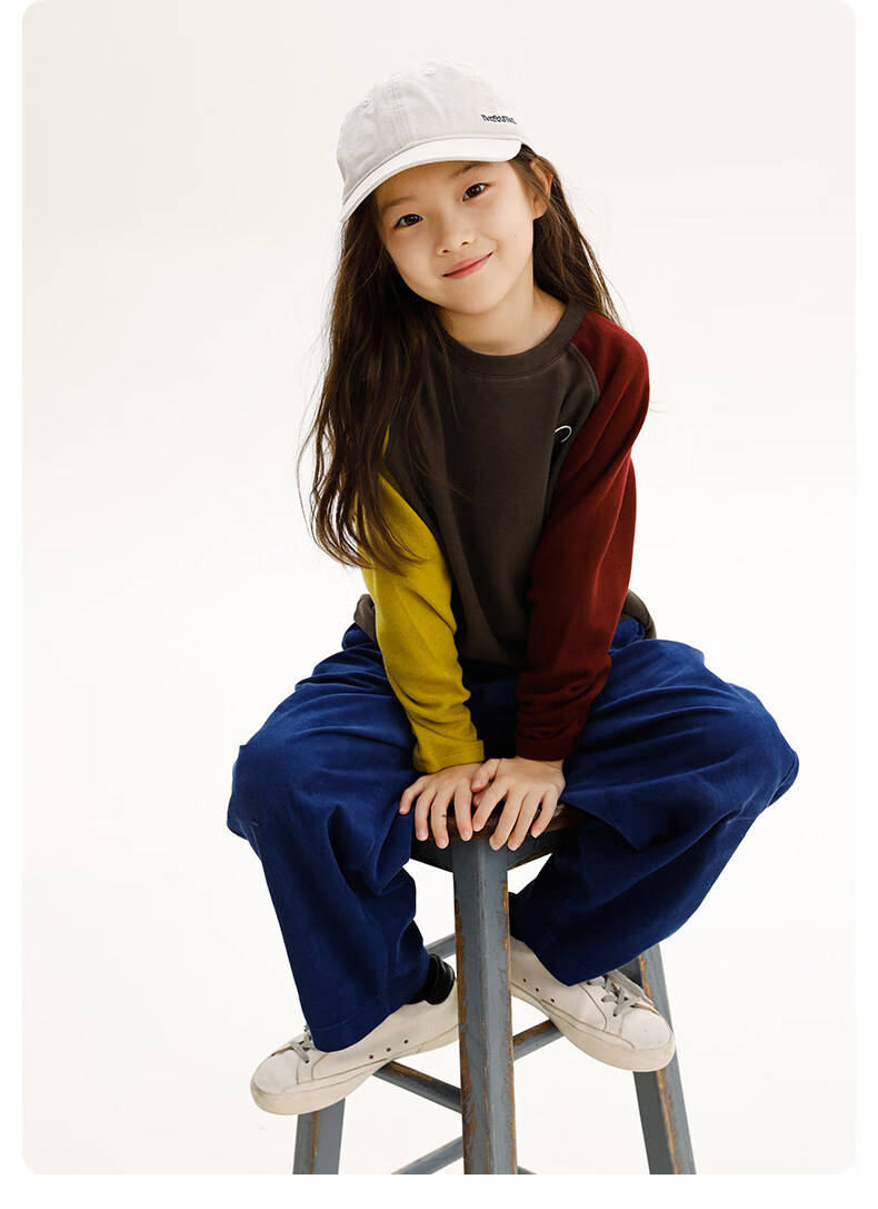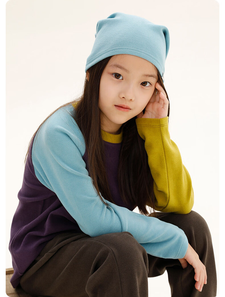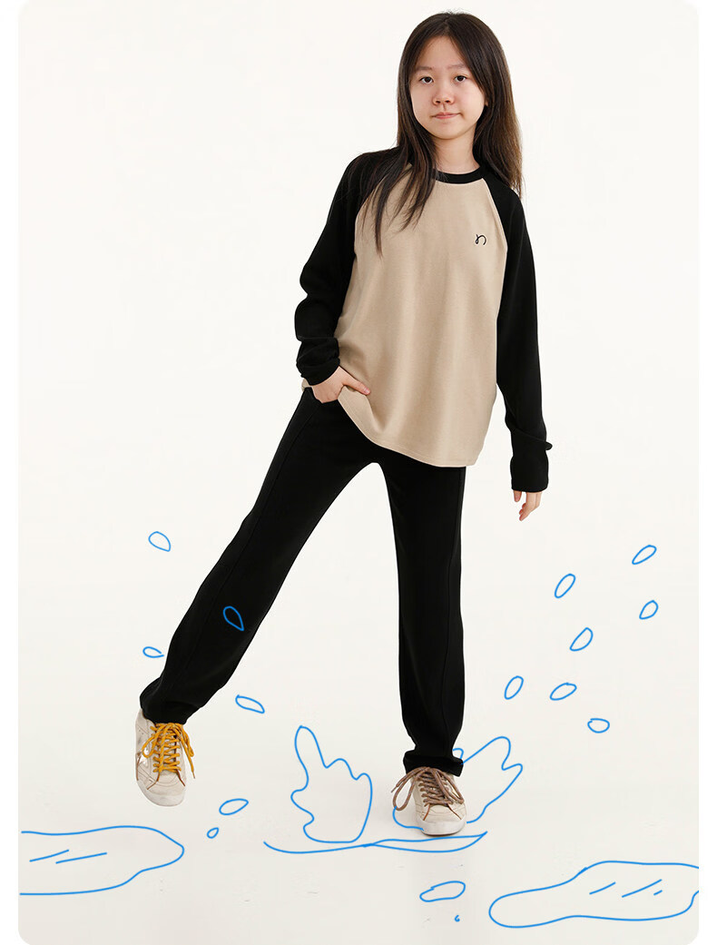 Najie capsule Najie family parent-child light warm velvet without static electricity children's warm thin velvet raglan long-sleeved T-shirt milk gray white sweet powder splicing ready stock 165 cm