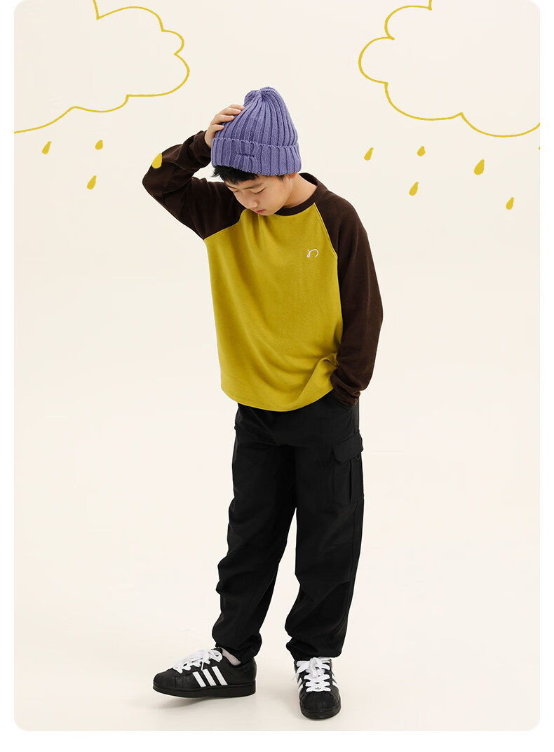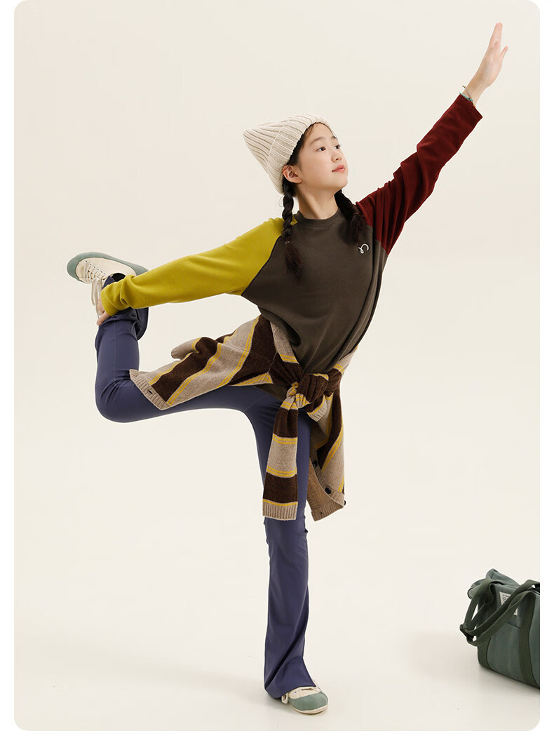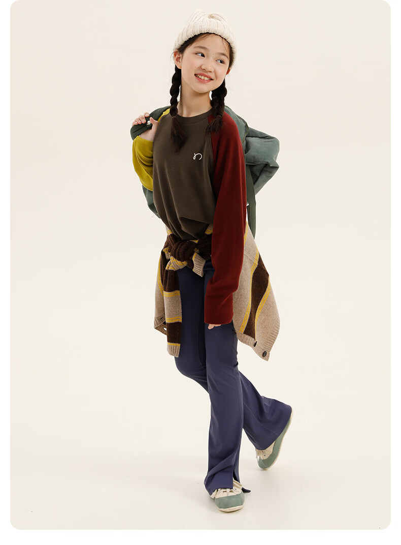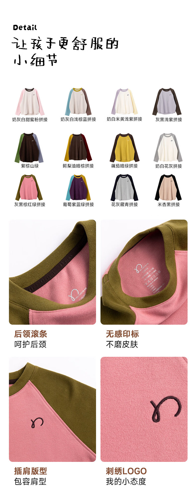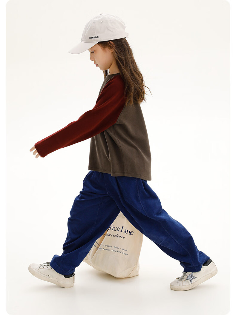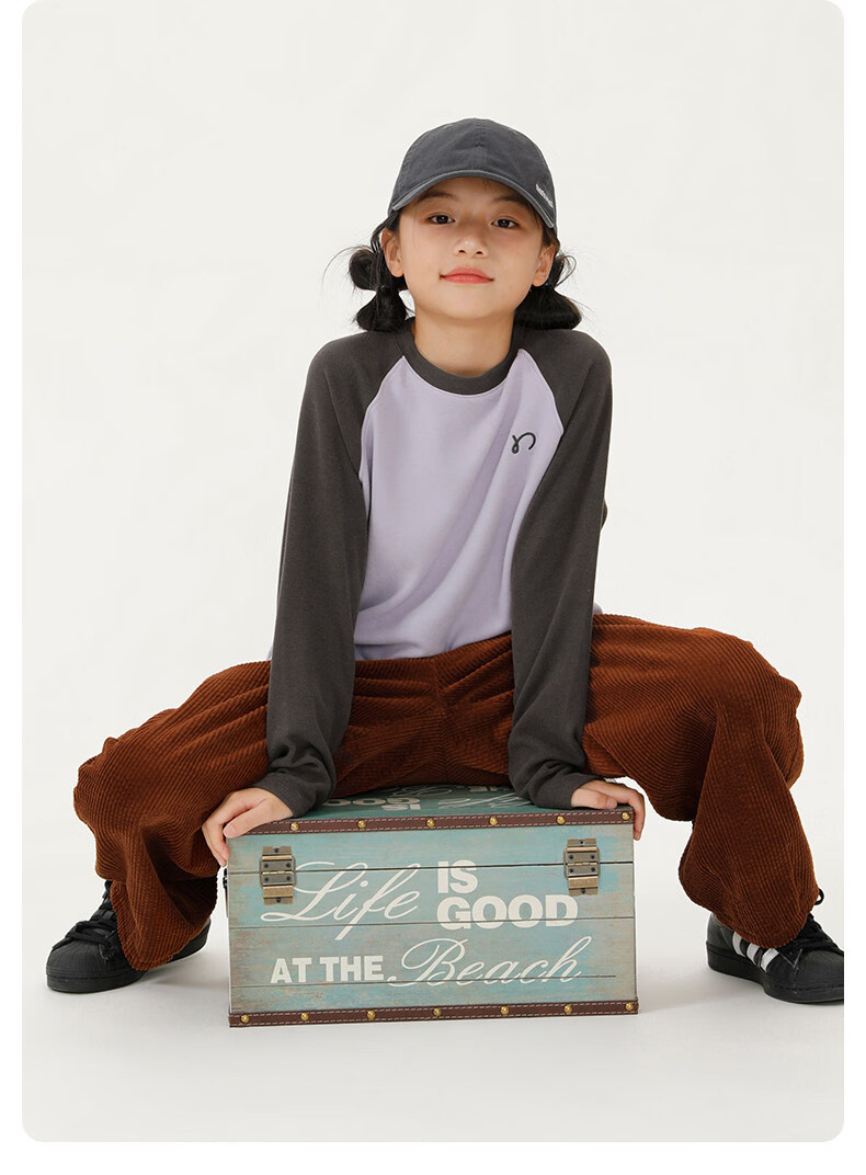 Najie capsule Najie family parent-child light warm velvet without static electricity children's warm thin velvet raglan long-sleeved T-shirt milk gray white sweet powder splicing ready stock 165 cm