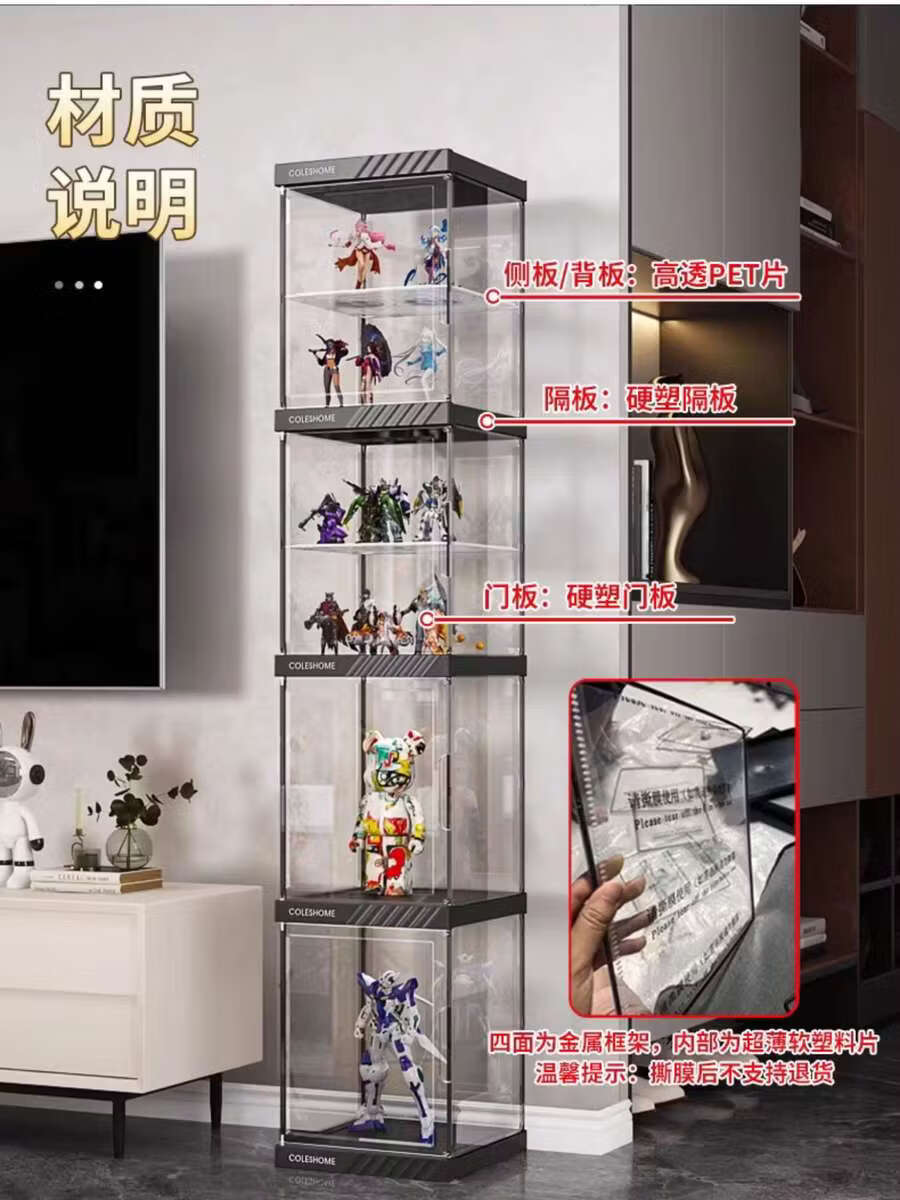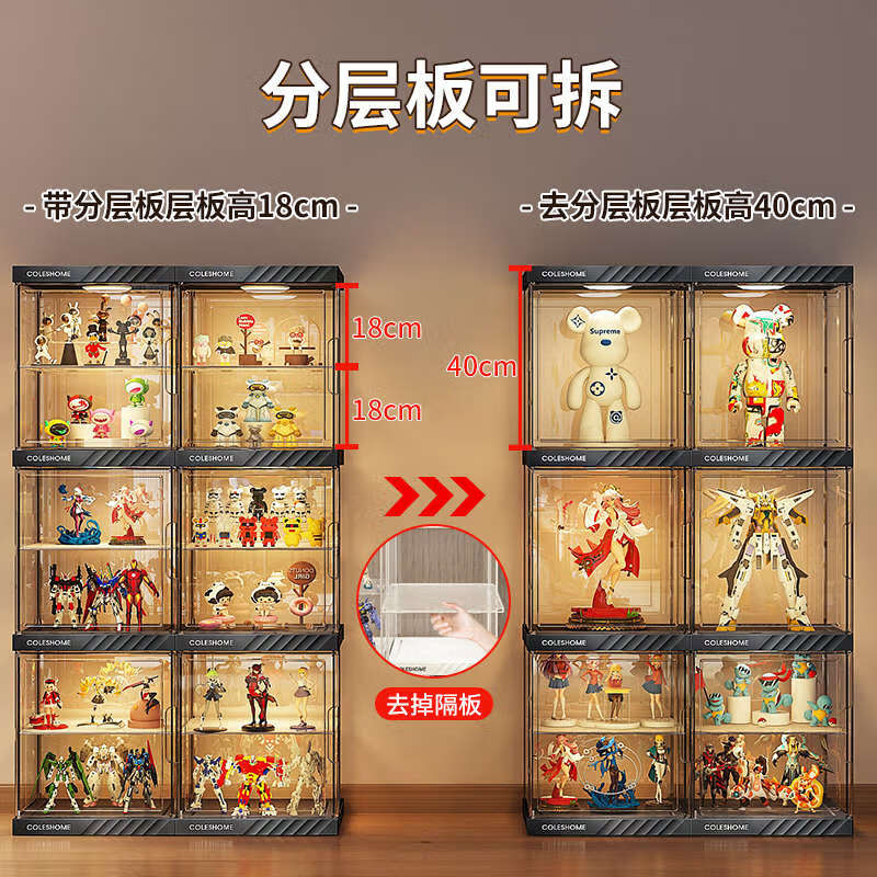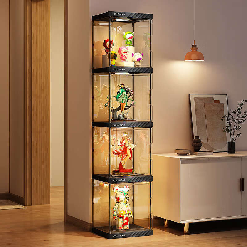 Yusenyi Figure Display Storage Cabinet Transparent Ornament Rack Home Layered LED Display Rack LD Light 5 Grids (US Plug-in Model)