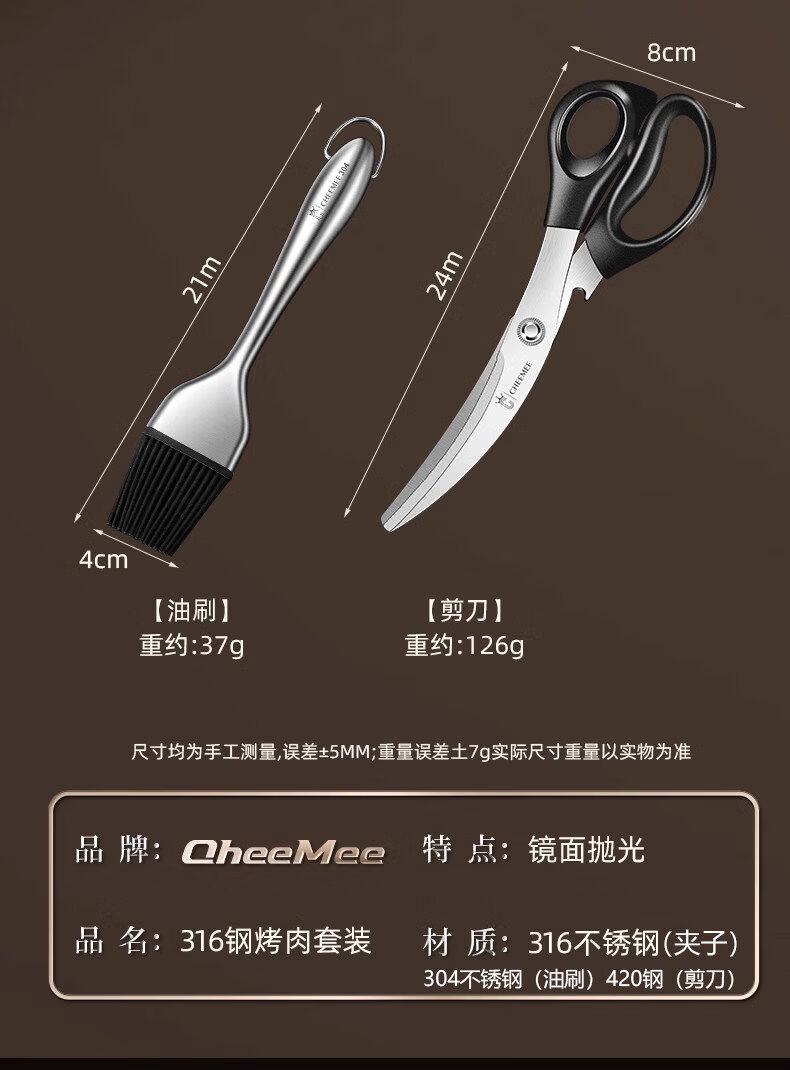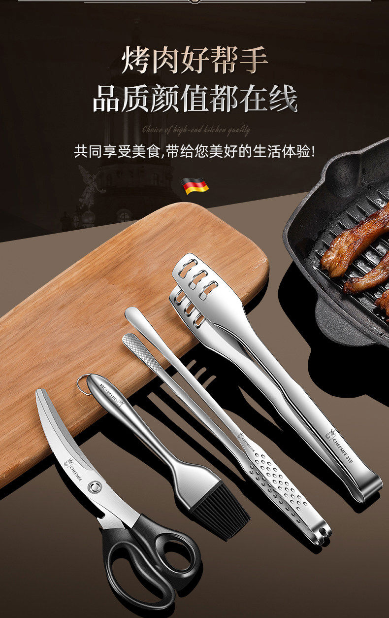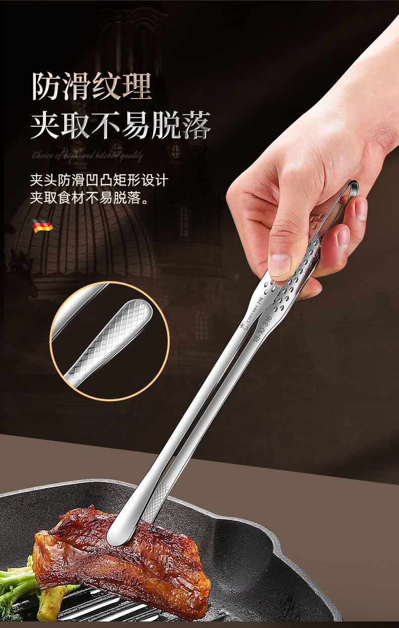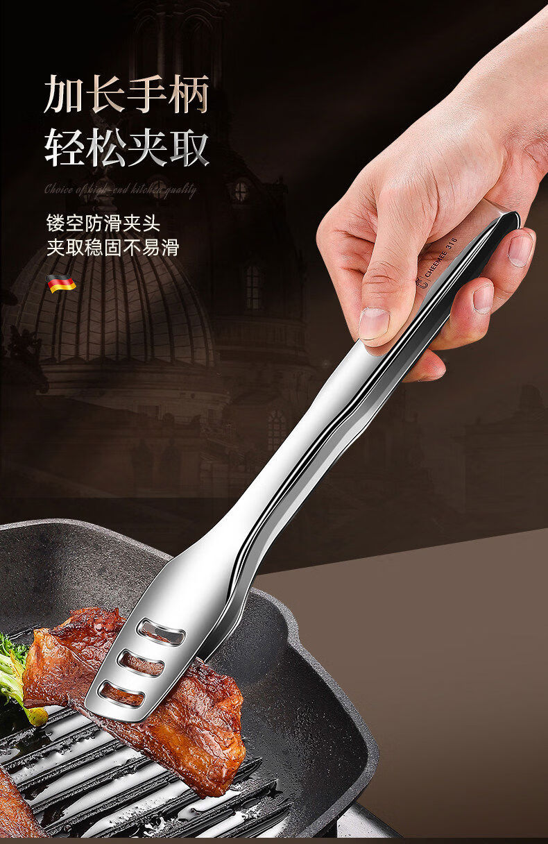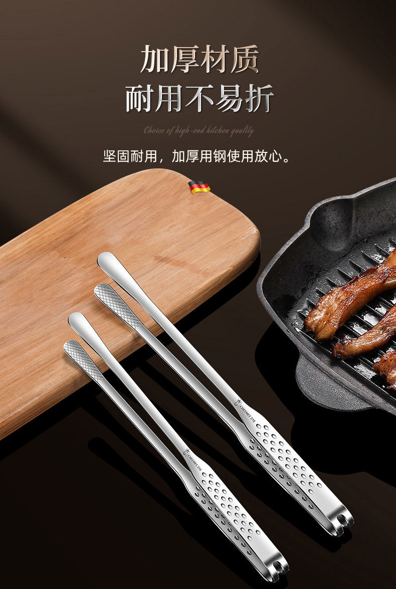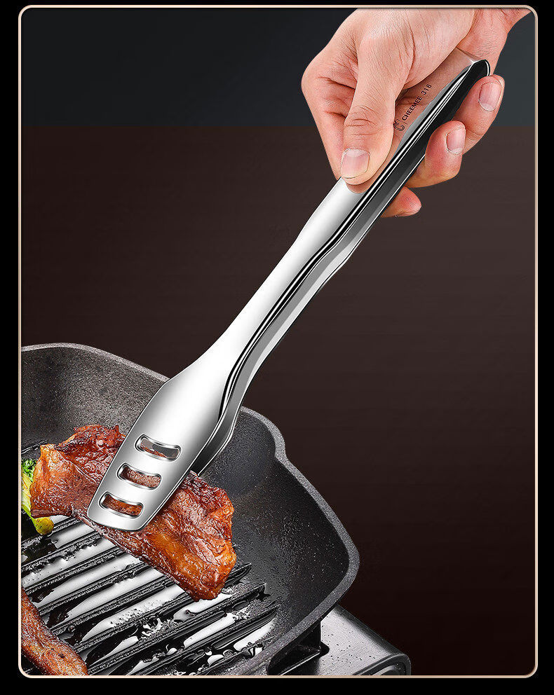 Qimei Korean barbecue tongs special barbecue tongs food tongs commercial food tongs vegetable tongs kitchen gadgets brush scissors 316 thin mouth barbecue tongs short style