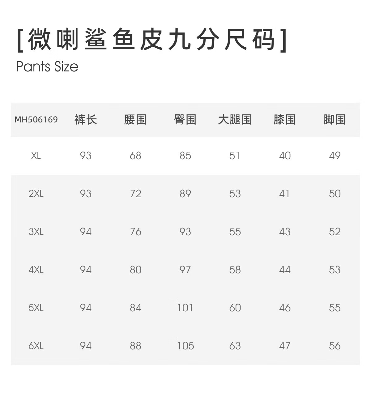 Outseam (cm) 99 cm 101.5 cm 104 cm 106.5 cm 109 cm