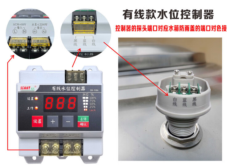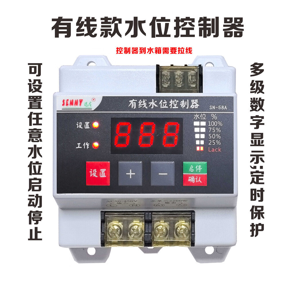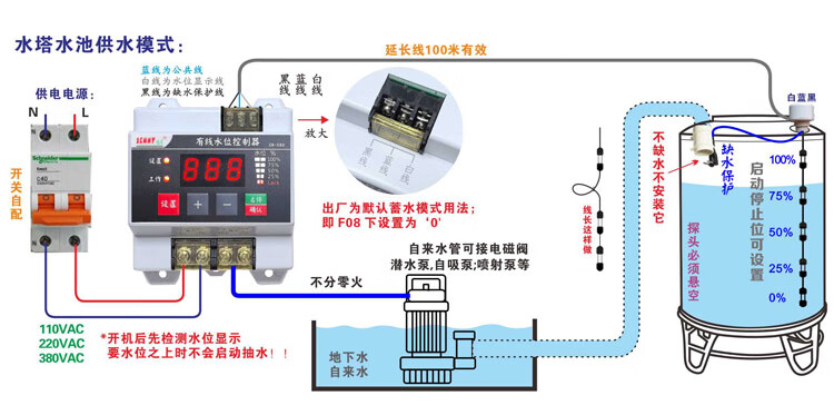 Water tower fully automatic water level controller water tank water switch controls pool drainage water shortage protection can set the water level 58A controller + 0.6 meter probe no signal line