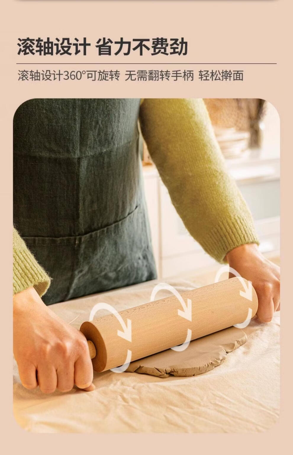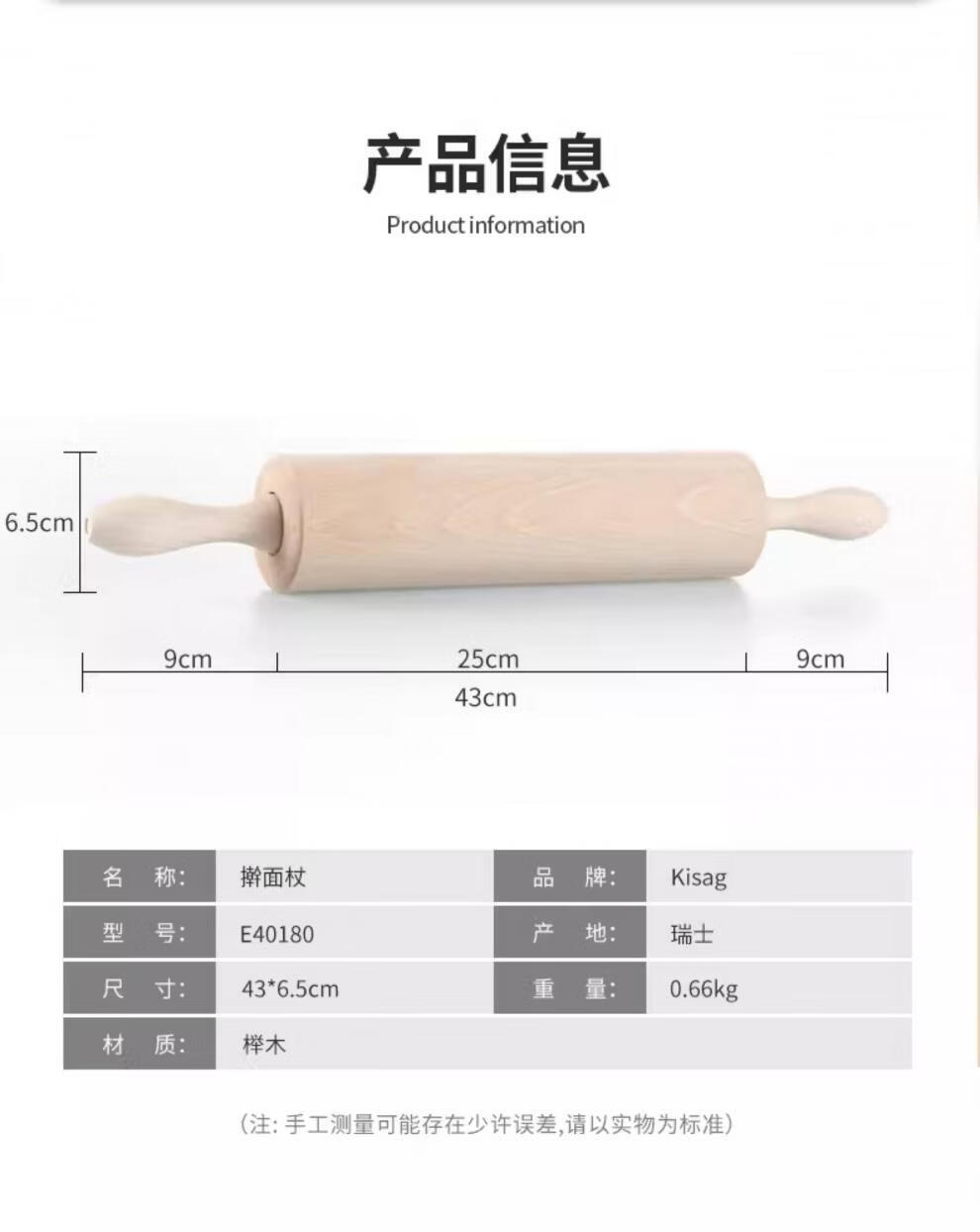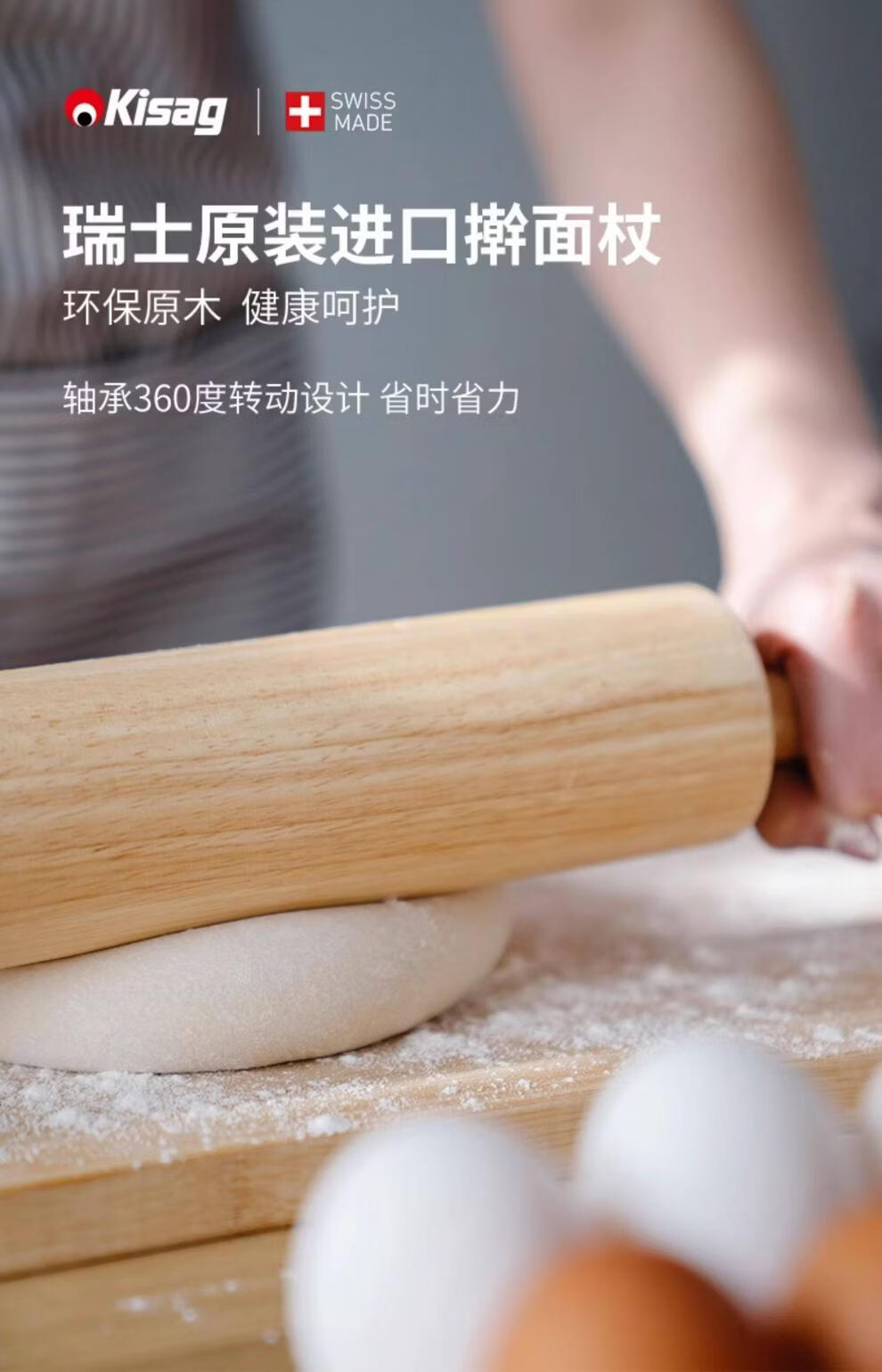Kisag Swiss Kisag large rolling pin solid wood dumpling skin roller non-stick rolling pin hammer thick pressing pin rolling pin