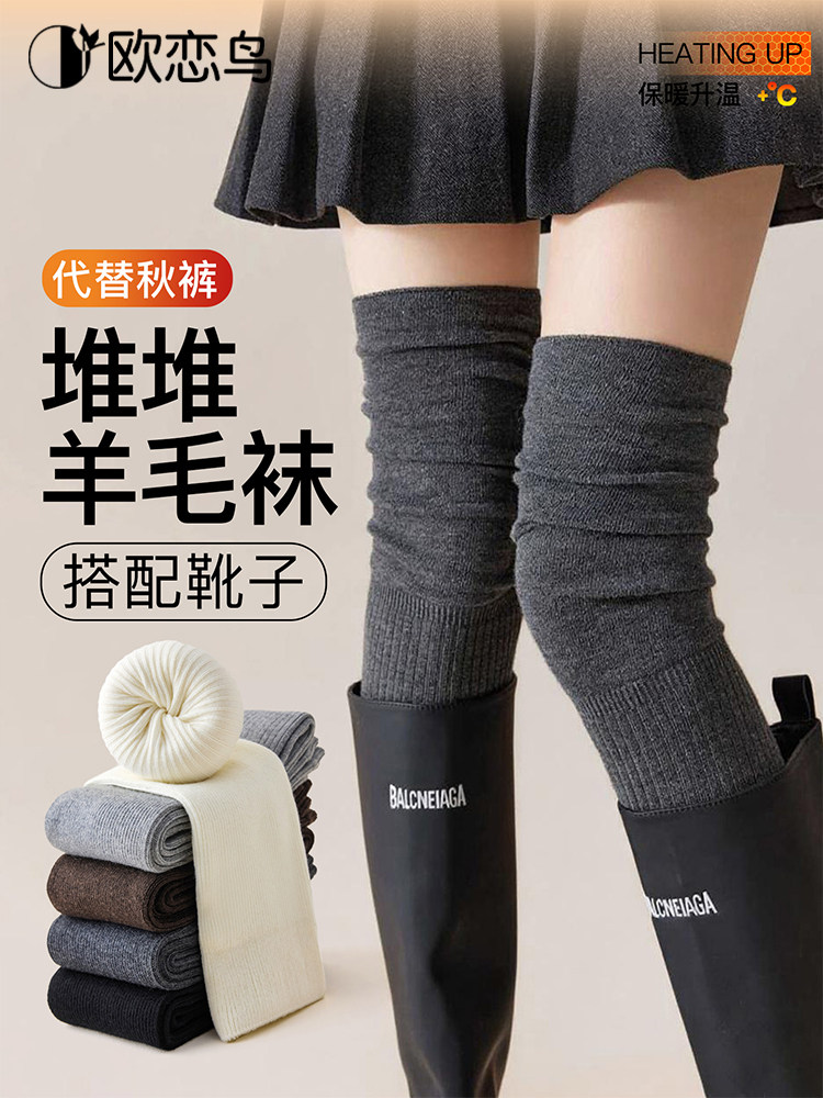 European Love Bird New Product Wool Over-the-Knee Socks Women's Autumn and Winter Long Socks Warm and Thickened Pile Socks Gray Slimming Thighs_Wool Pile Over-the-Knee Socks White 3 Pairs One-size-fits-all Wool Over-the-Knee_Slimming and Warm Add-on Purchase_Priority Delivery