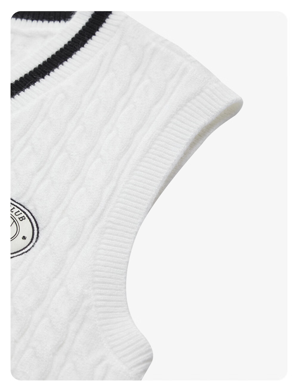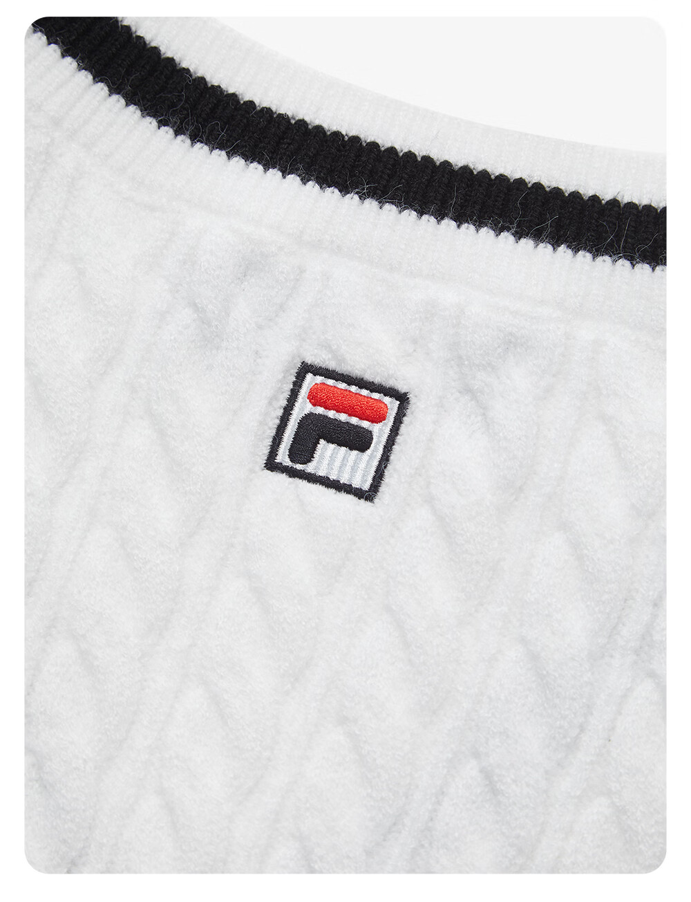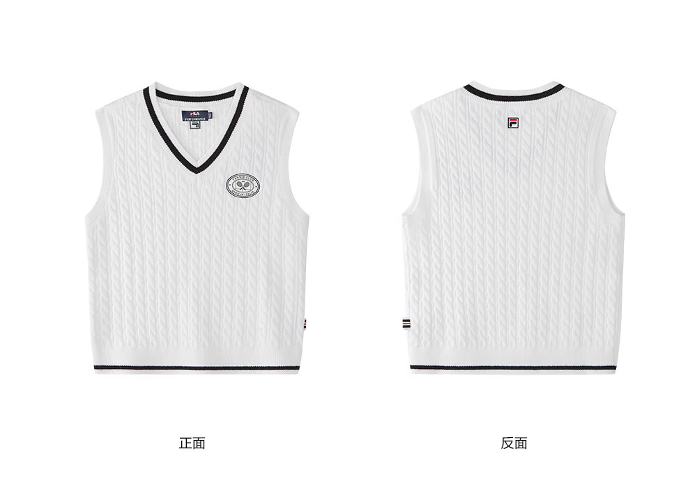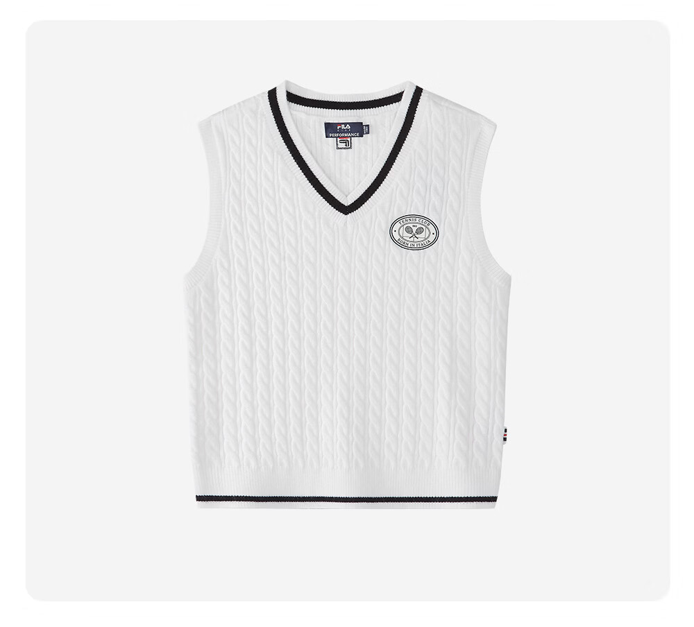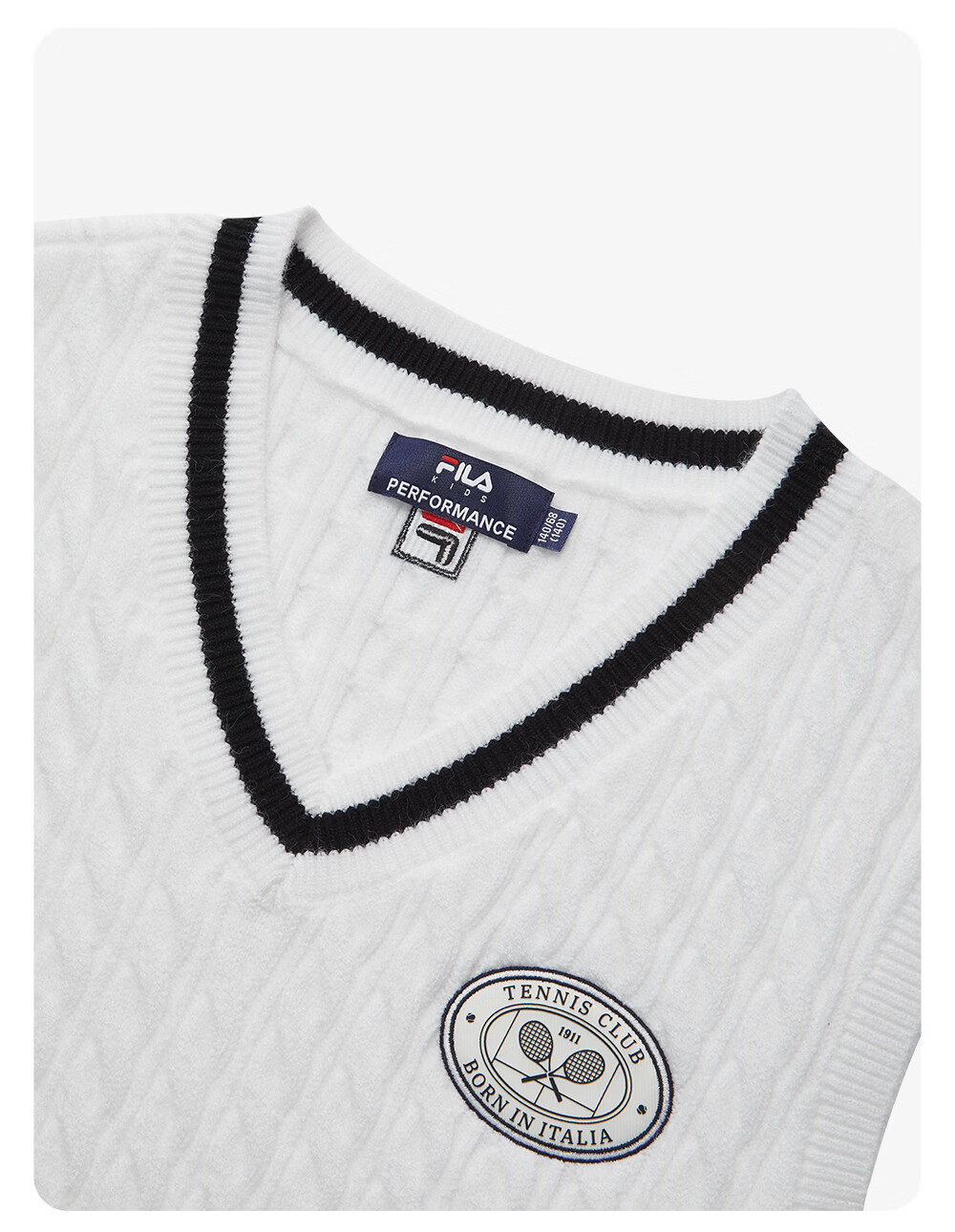 FILA Children's Clothing Sweater 2026 Spring New Boys' V-neck Pullover Woolen Vest Jade White-WT 150