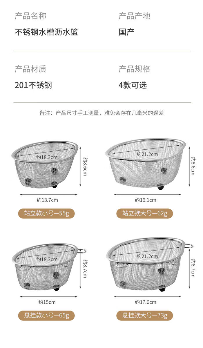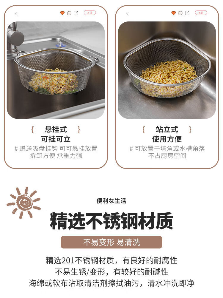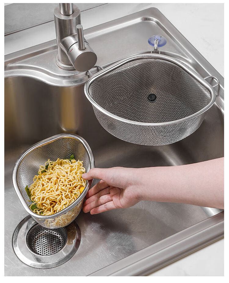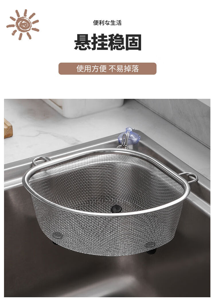 Fantasy sink garbage drain basket triangle filter kitchen sink rack sink leftovers leaking basket large 2-piece set standing type hanging type