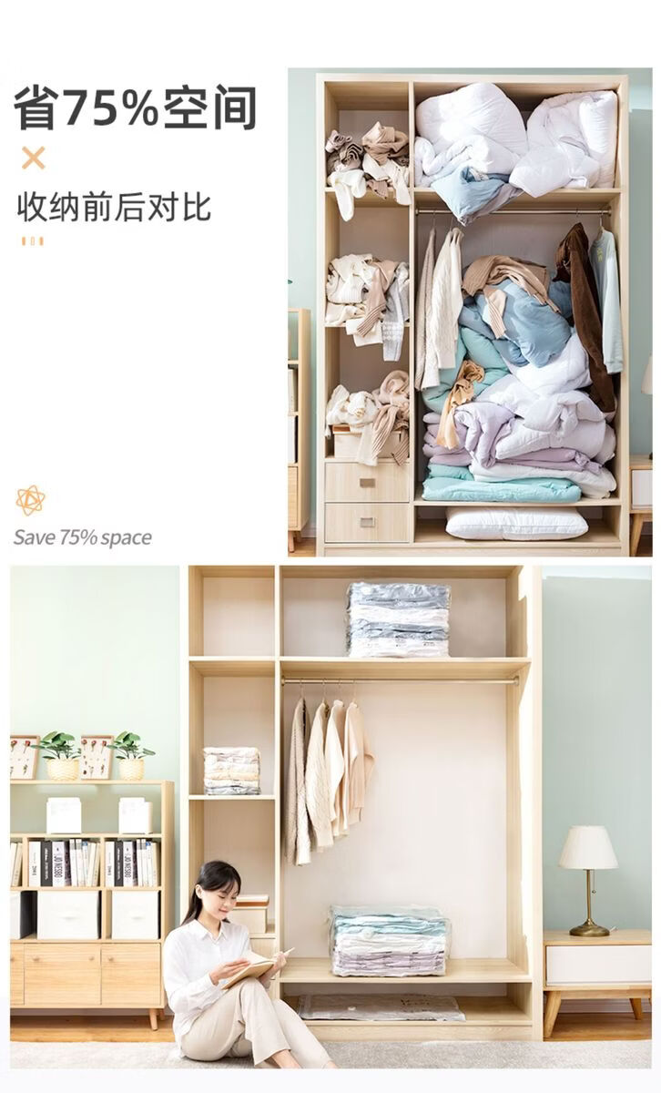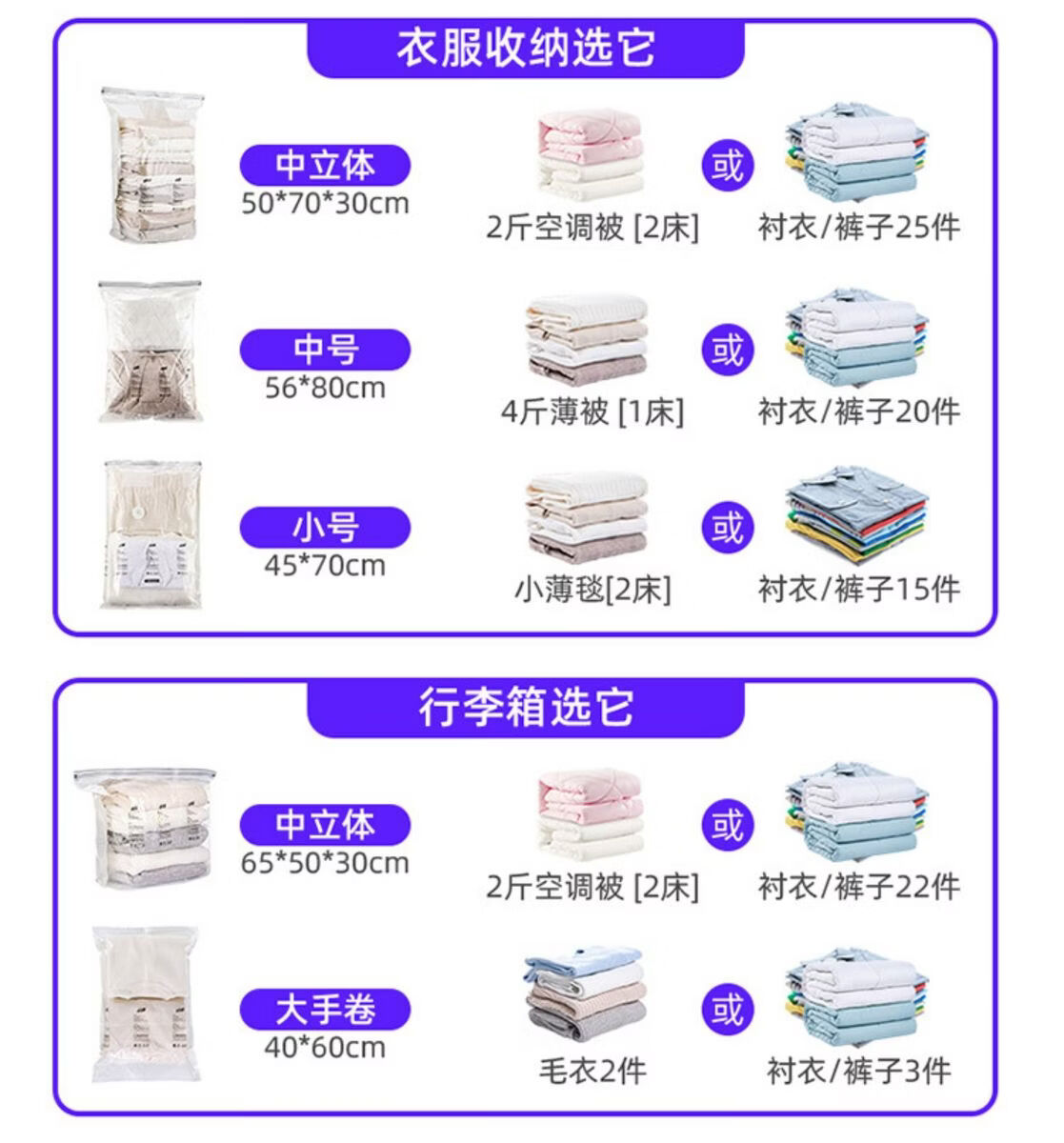 Wing Fantasy Vacuum Compression Bag Three-Dimensional Organizing Bag for Cotton Clothes, Air-Free Travel Storage Bag, Quilt Storage, Medium Square Three-dimensional 80x70x38x38