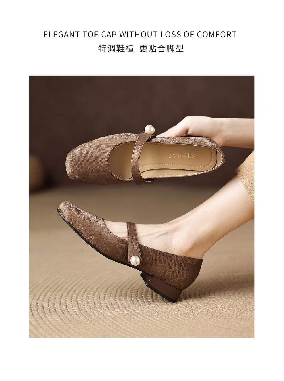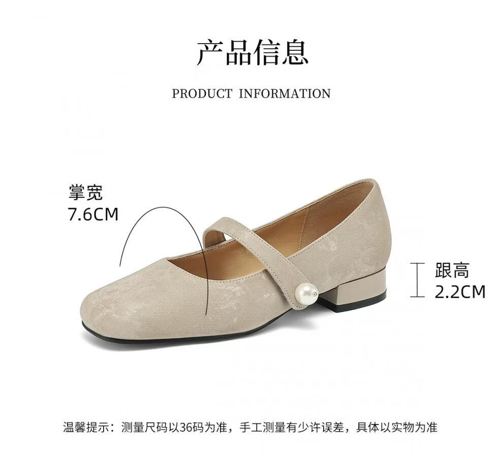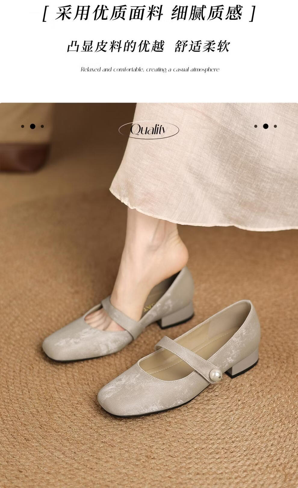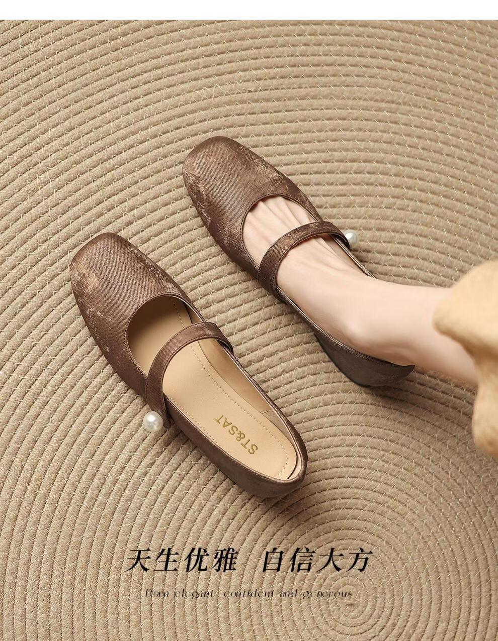 Saturday new Chinese style shallow mouth small shoes 2025 autumn Mary Jane women's shoes low-heeled flat-soled non-tiring leather shoes gentle apricot color 35