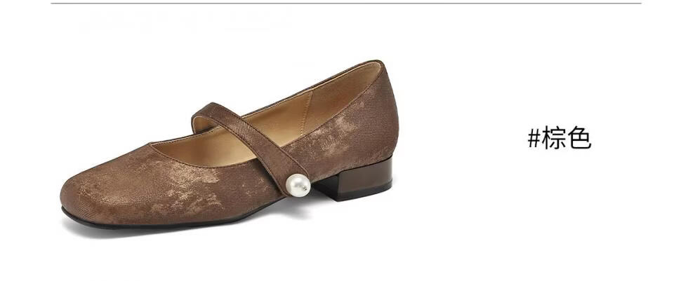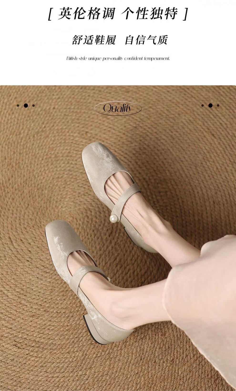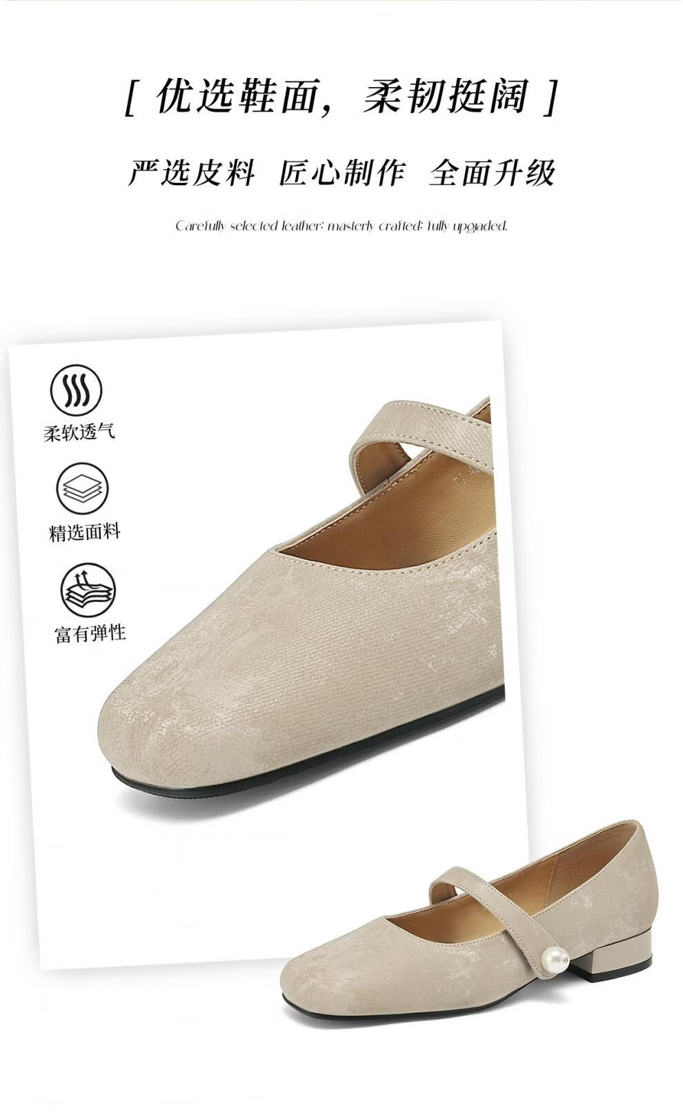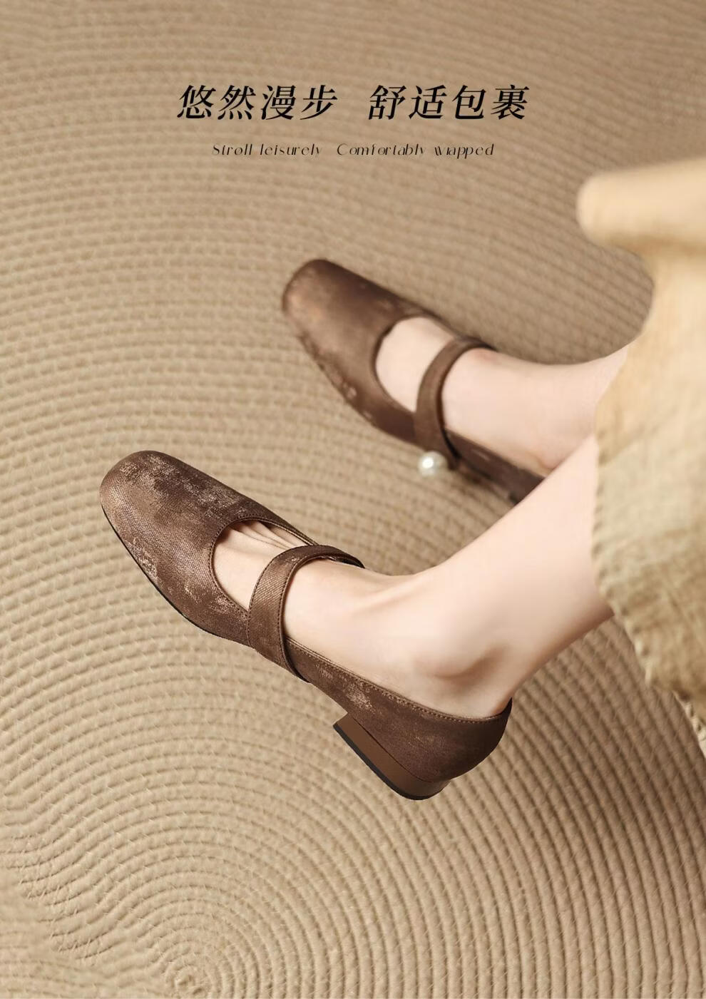 Saturday new Chinese style shallow mouth small shoes 2025 autumn Mary Jane women's shoes low-heeled flat-soled non-tiring leather shoes gentle apricot color 35