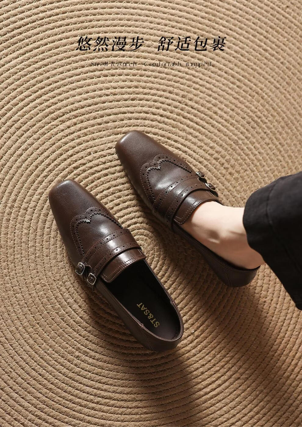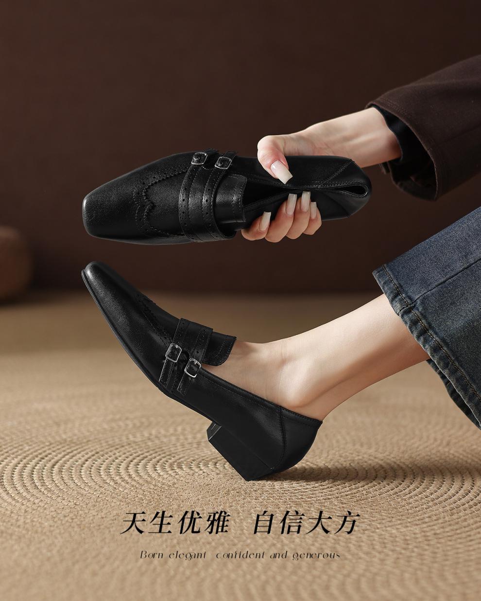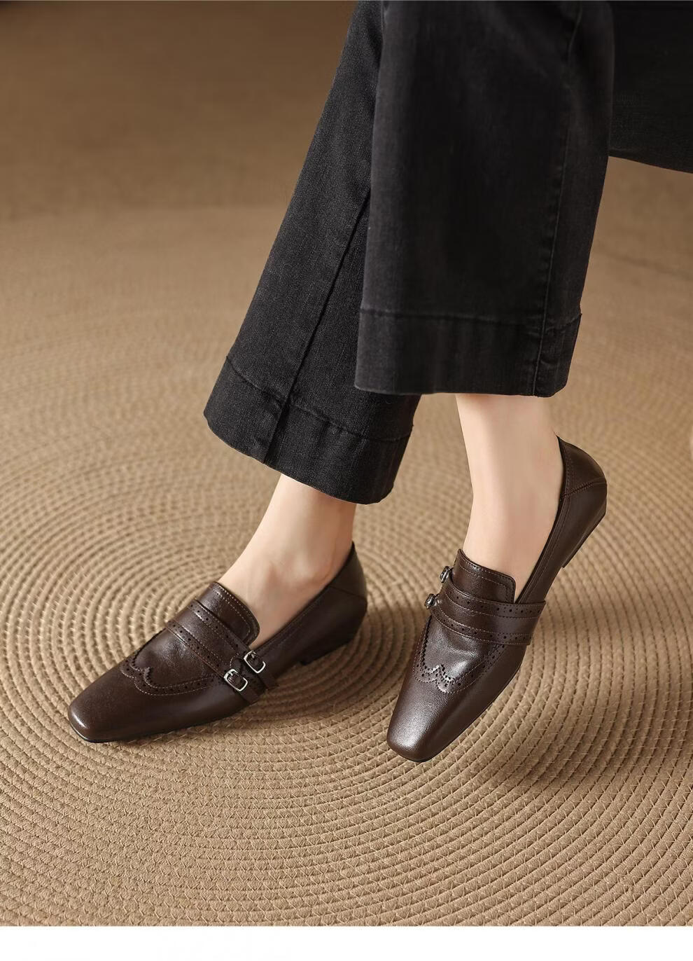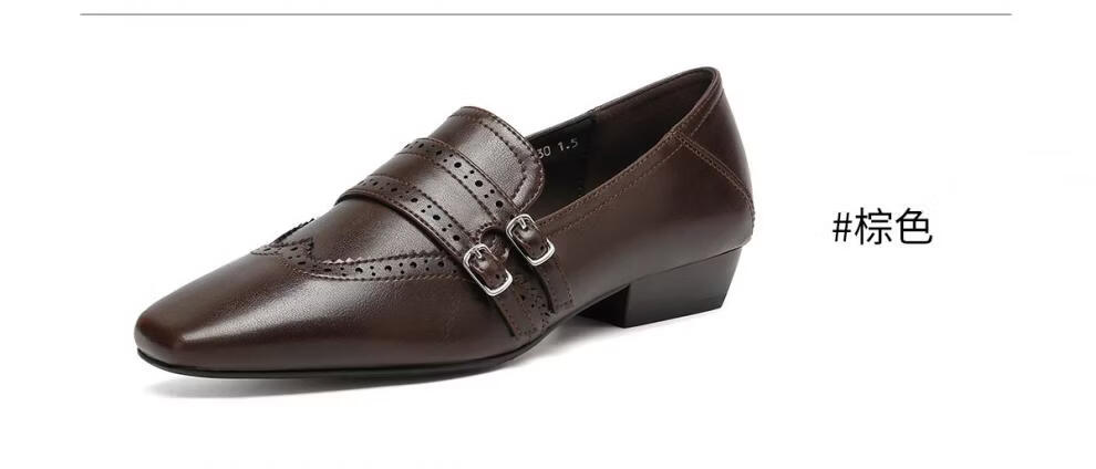 Saturday Square Toe British Style Slip-On Loafers 2026 New Women's Autumn and Winter Versatile Small Leather Shoes Women's Shoes Retro Brown 36