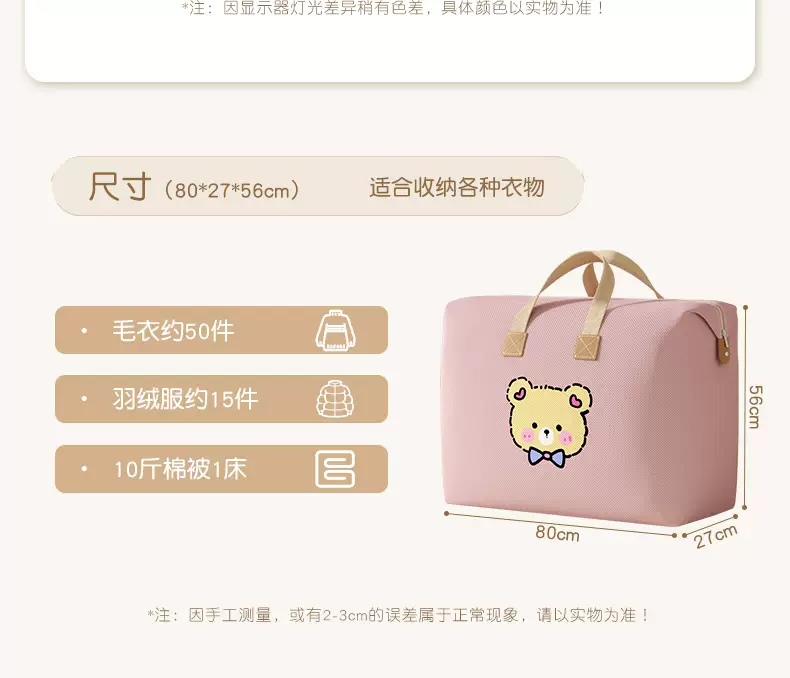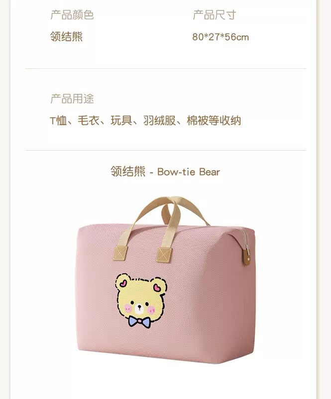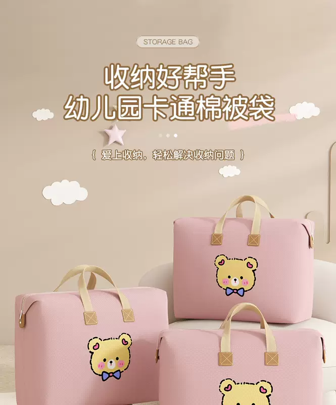 Yusenyi compressed quilt storage bag student clothes quilt vacuum special kindergarten z portable luggage bag mattress 130L Strawberry Bear (upgraded non-woven fabric is skin-friendly and has no odor) 130