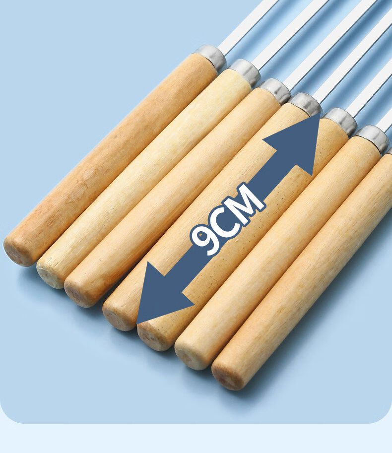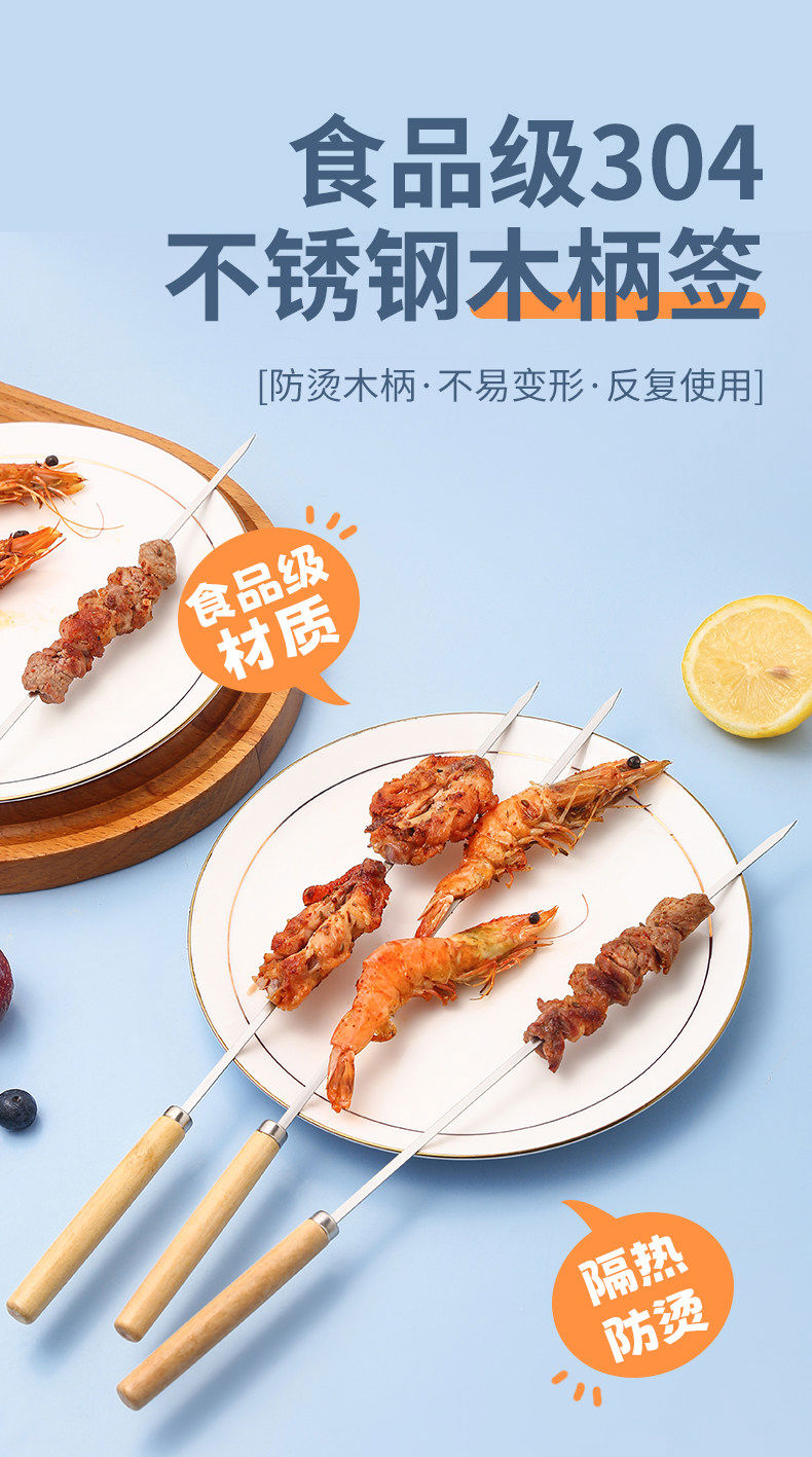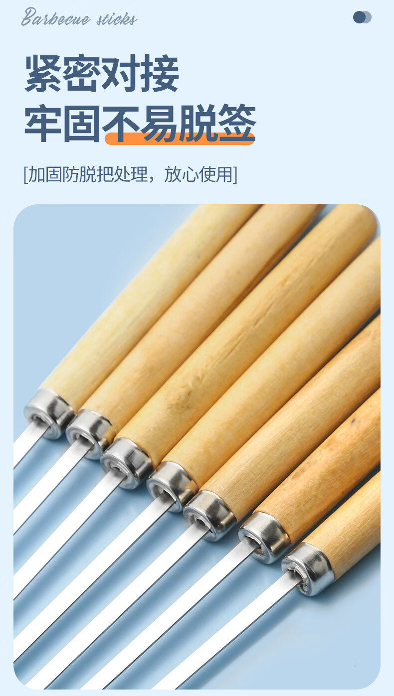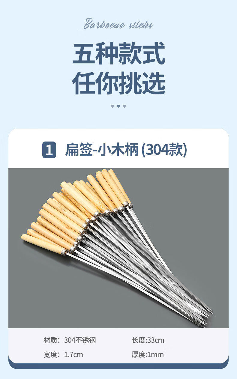 Jimei BBQ skewers 304 stainless steel grilling needle wooden handle flat skewers mutton skewers barbecue iron skewers special tools for barbecue skewers 304 stainless steel material 25 pieces with wooden handle