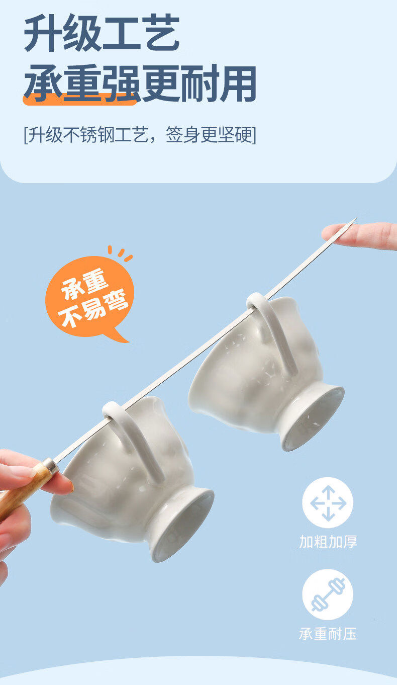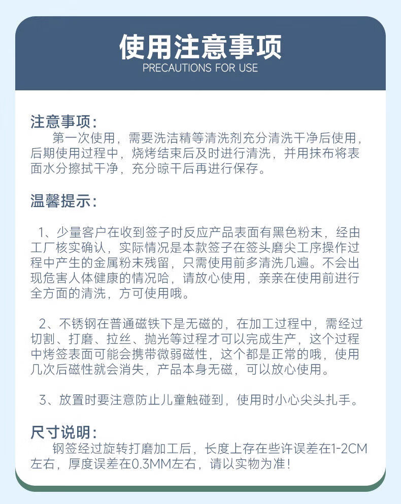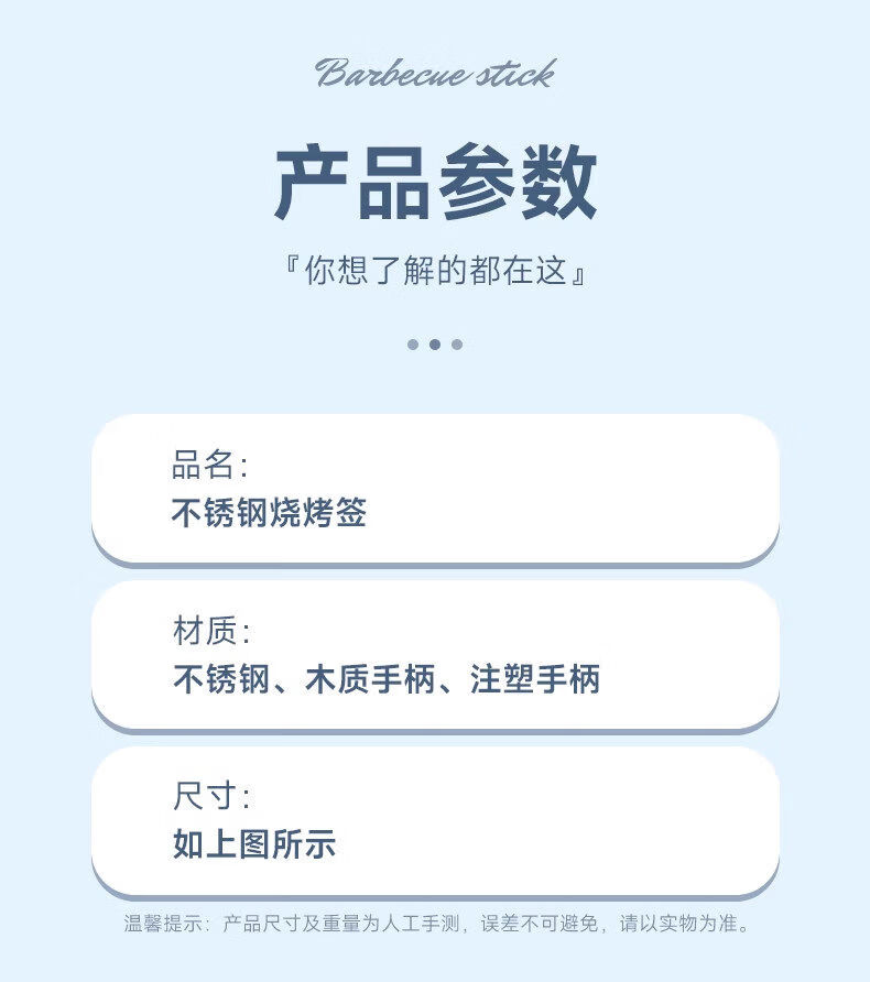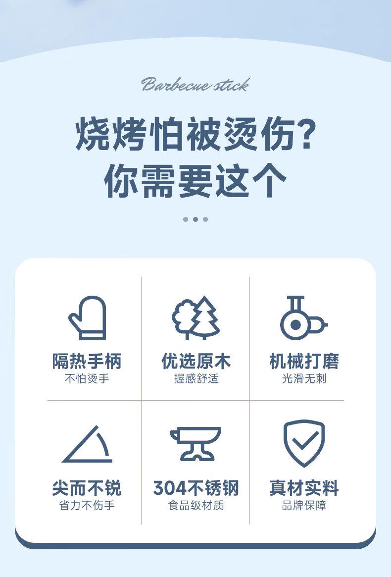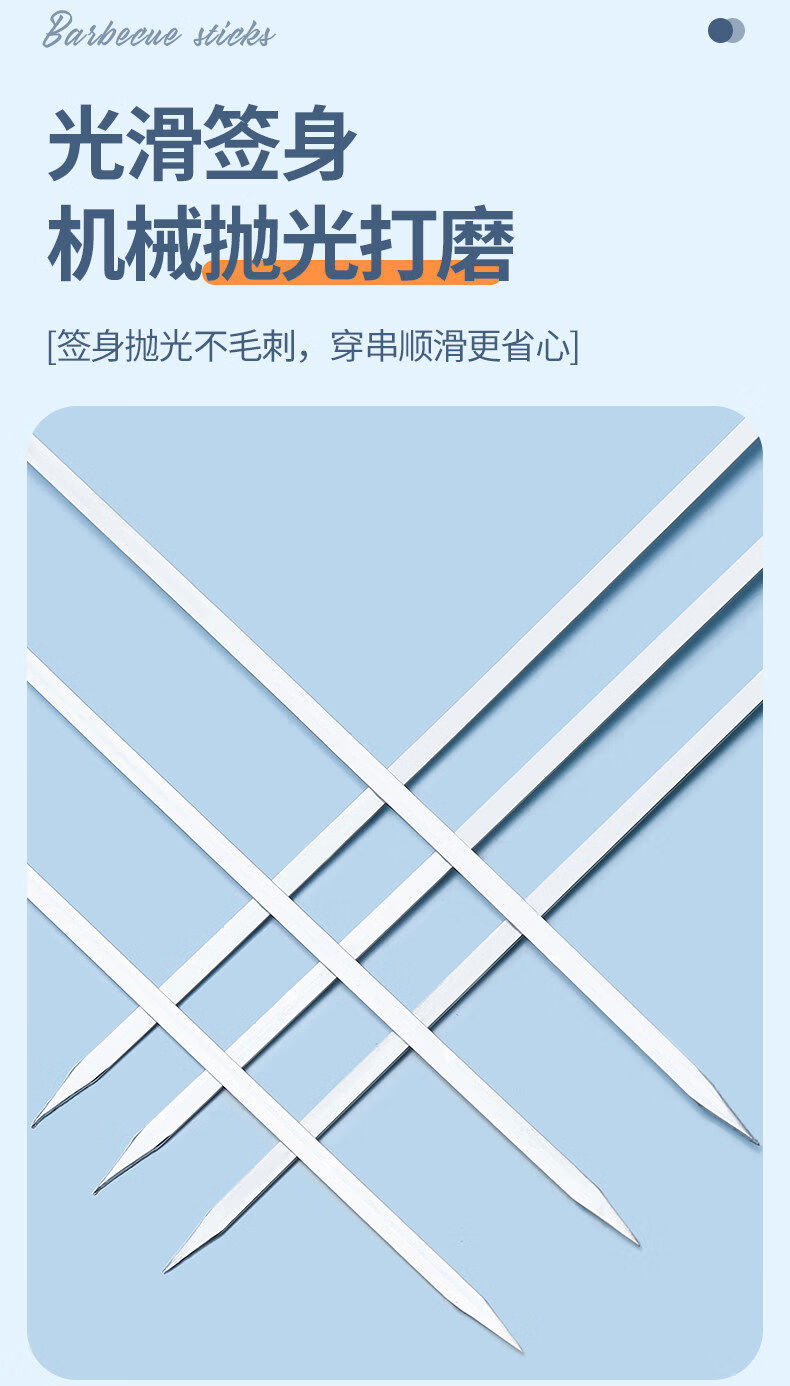 Jimei BBQ skewers 304 stainless steel grilling needle wooden handle flat skewers mutton skewers barbecue iron skewers special tools for barbecue skewers 304 stainless steel material 25 pieces with wooden handle