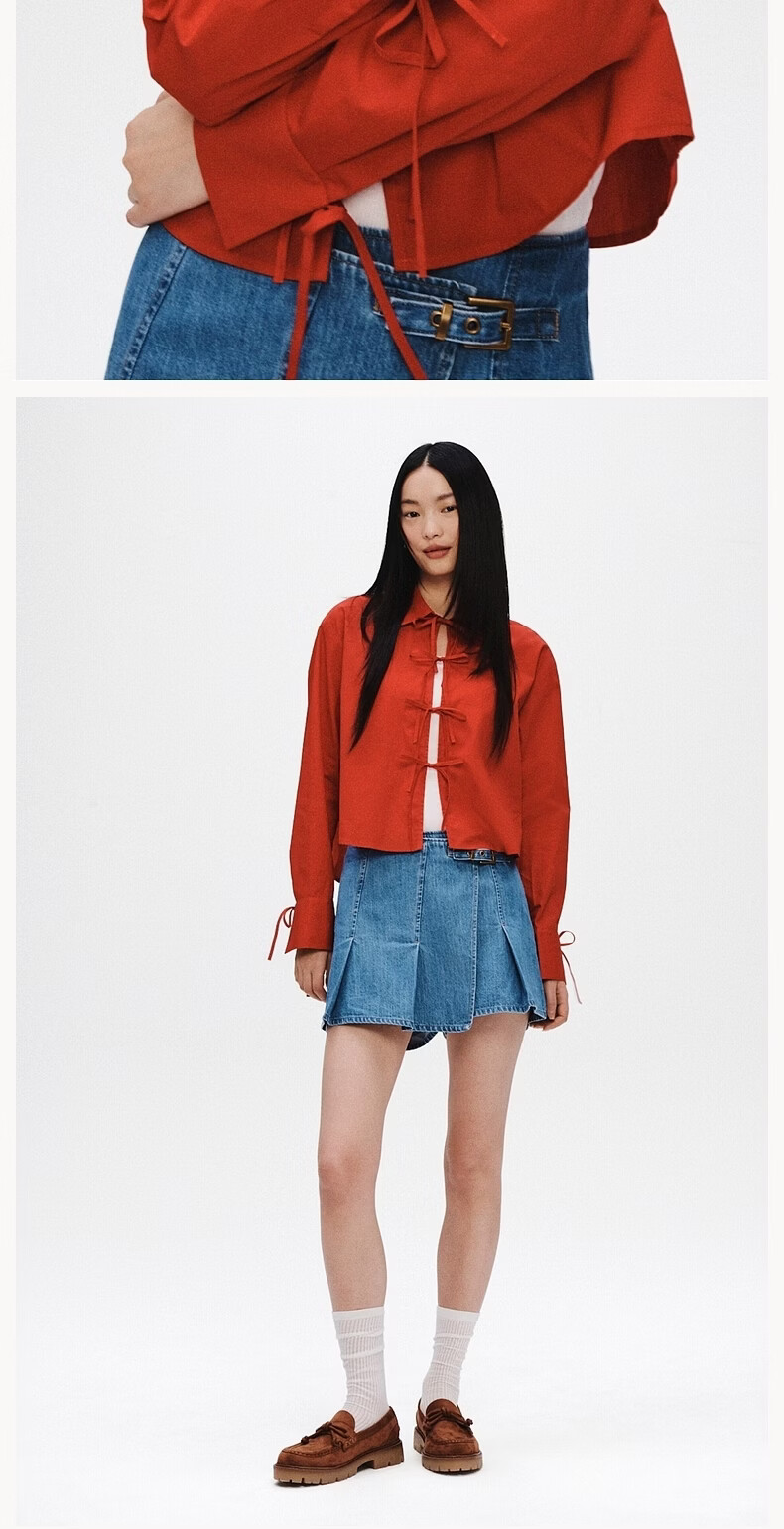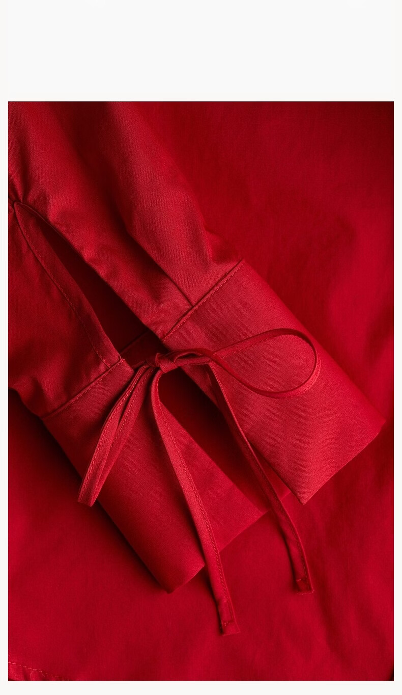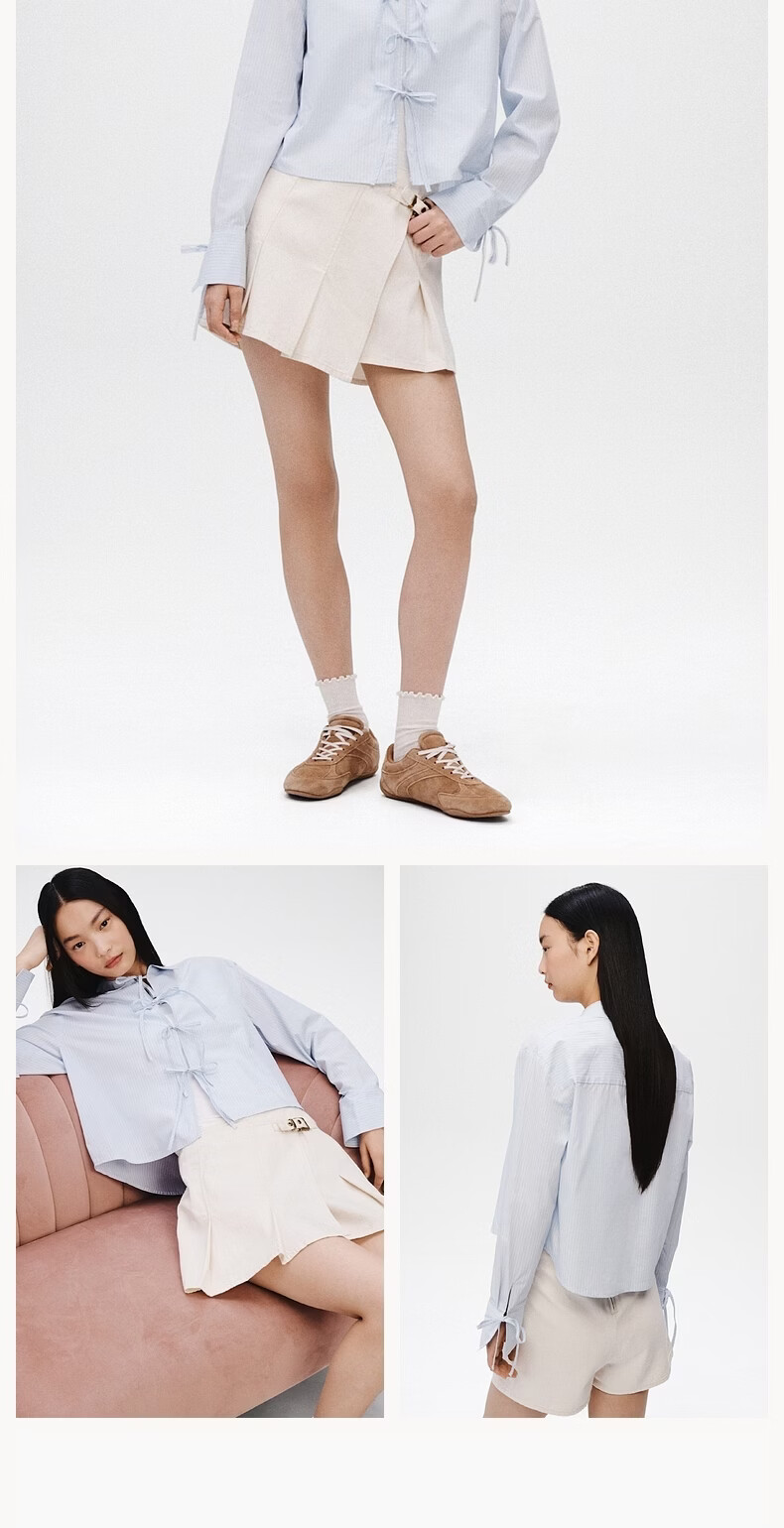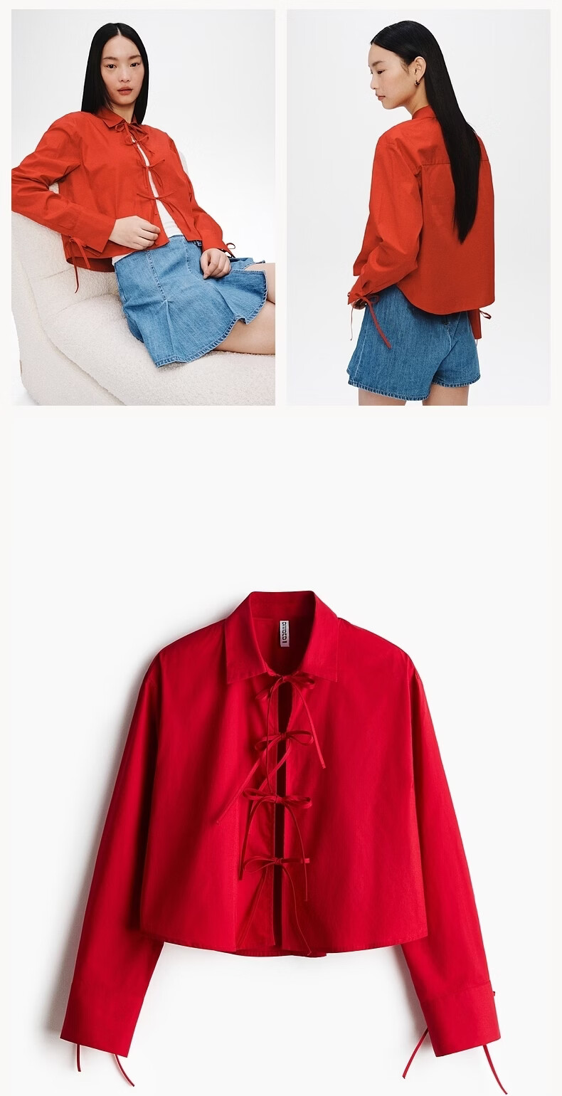 H&M 2026 Spring New Women's Front Tie-Up Poplin Shirt 1327619 Light Blue/Stripes XS 155/80
