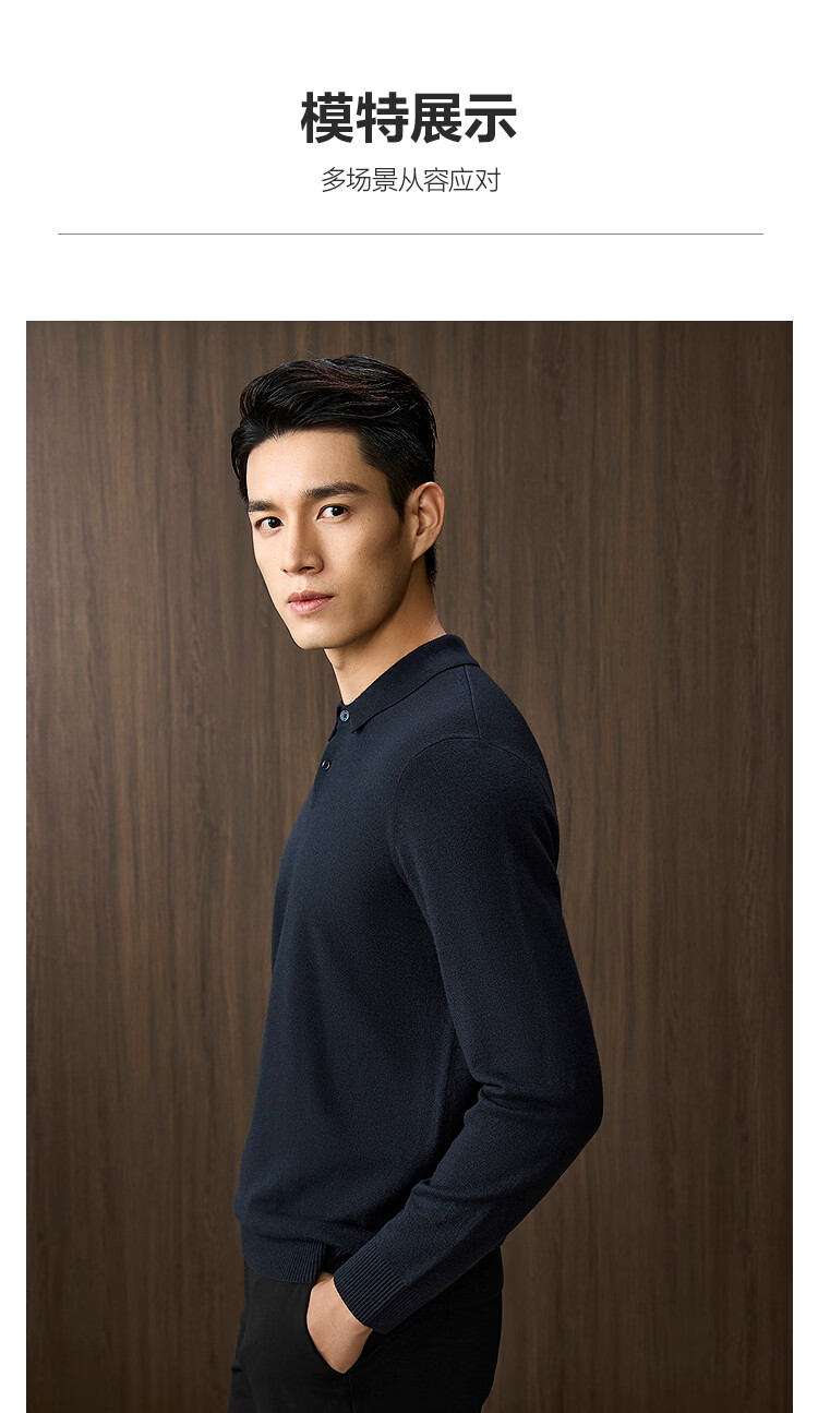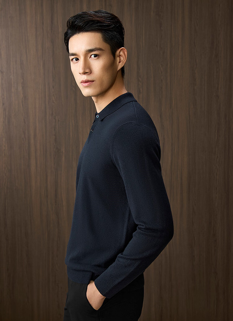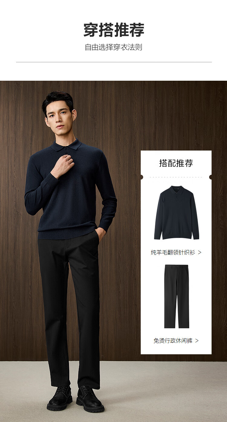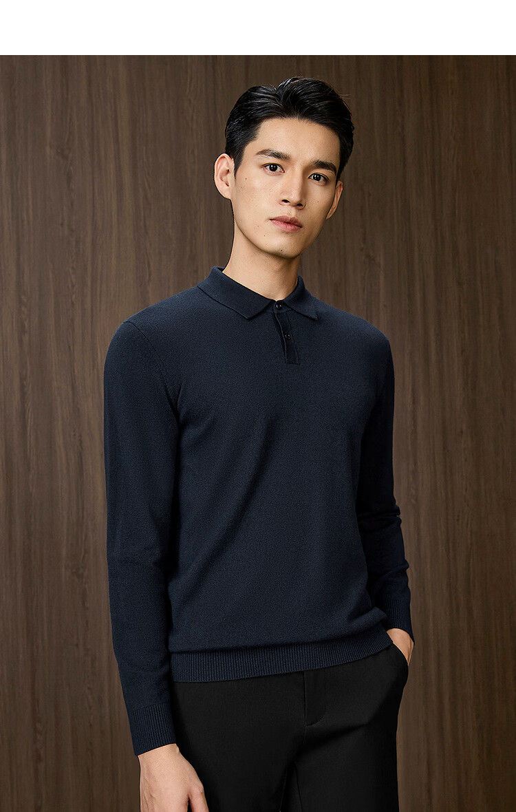 Heilan House Sweater Men's 25 Spring and Autumn New Light Business Classic Series Pure Wool Lapel Top Clothes Men's Sweater Black 98 M 170/88A Recommended 125~136Jin Jin equals 0.5 kg