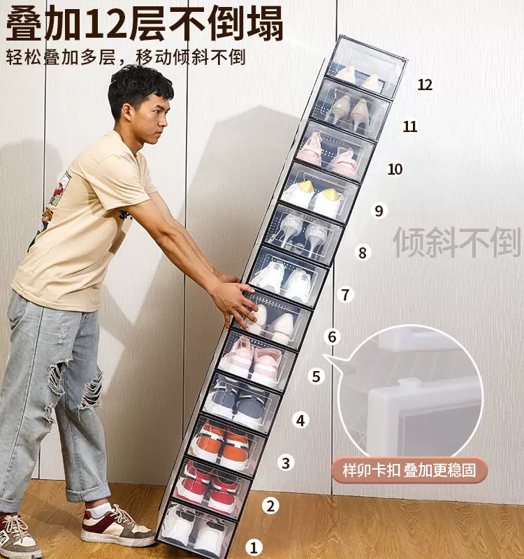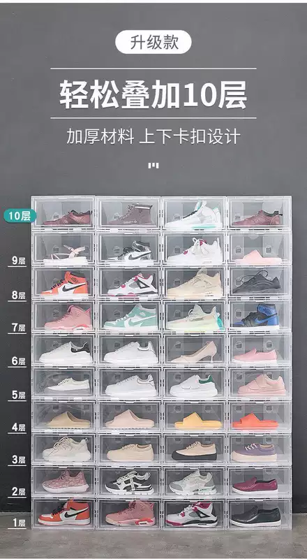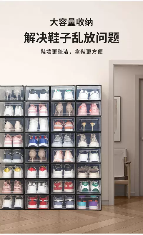 Yusenyi transparent shoe box shoe cabinet plastic storage box shoe rack door dormitory rental living room multi-layer household shoe storage front and rear frames (transparent black frame) 6 pack front and rear frames (transparent black frame) 6 pack 33x23x14cm 33 pcs 33x23x14cm