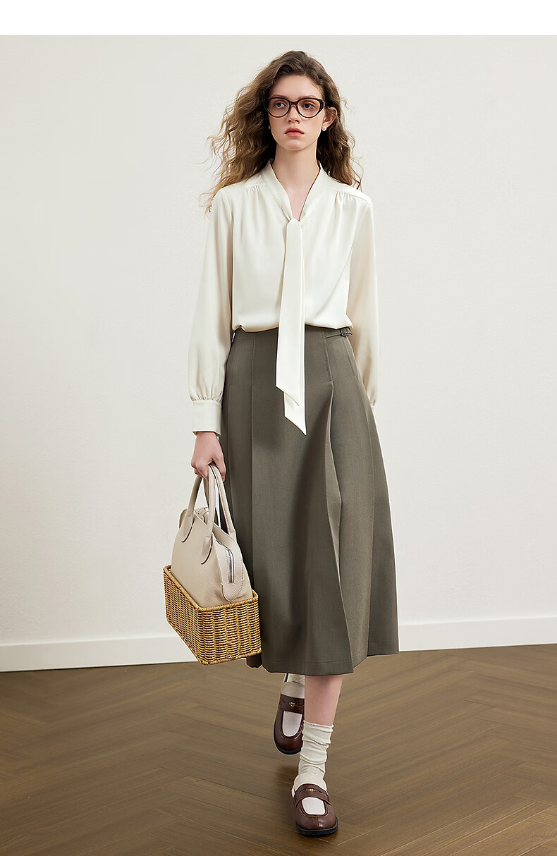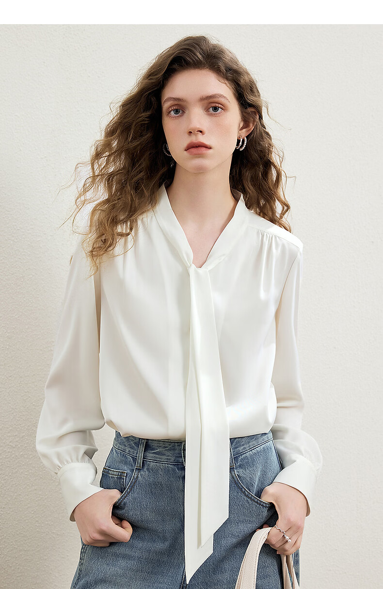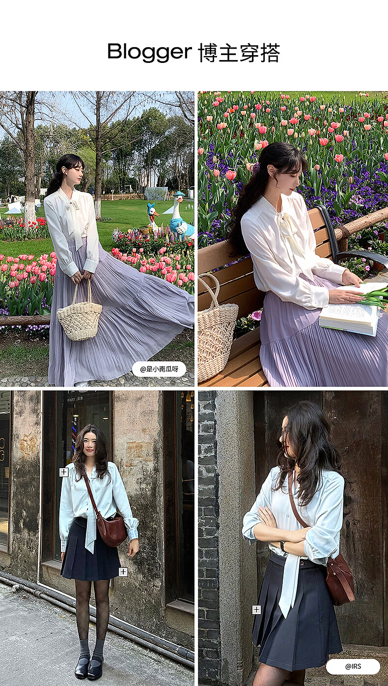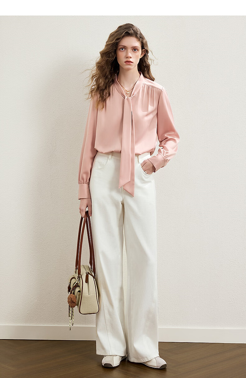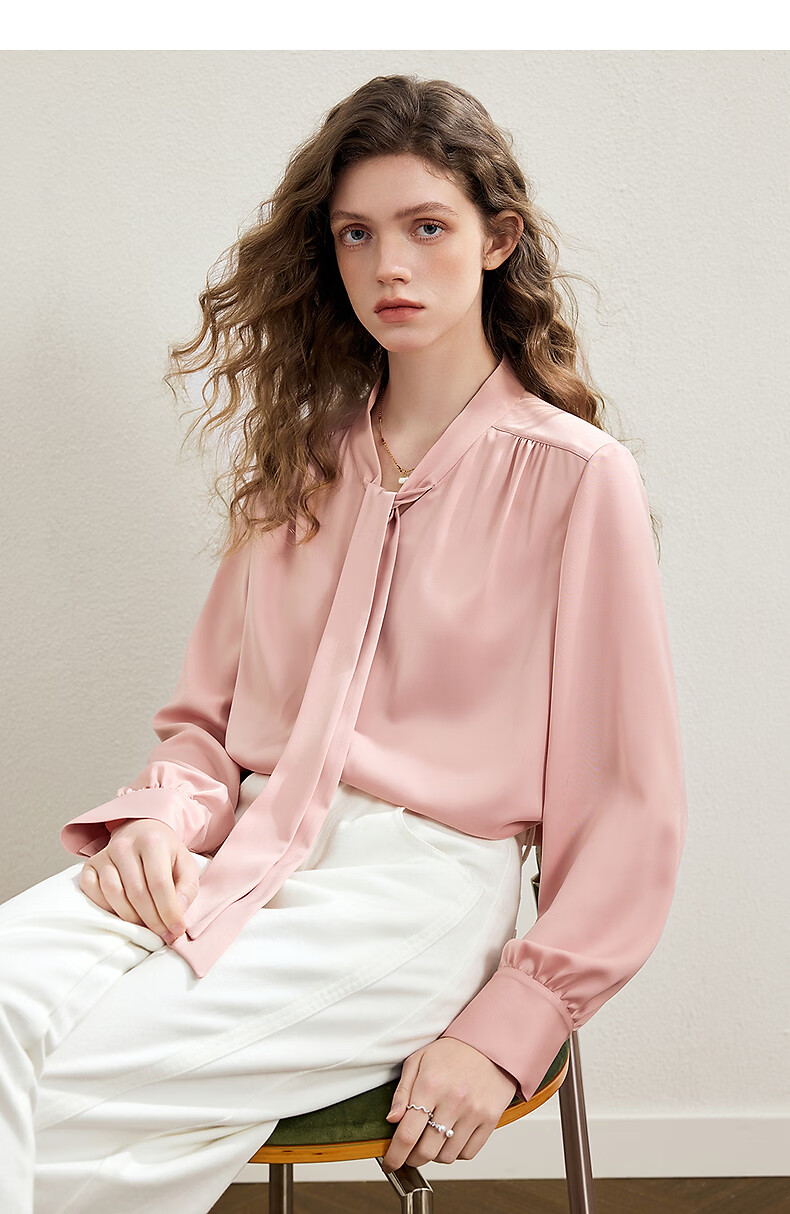 KBNE French retro white shirt women's 2026 spring new long-sleeved ribbon shirt design unique top pink XS