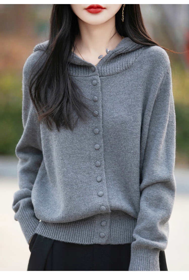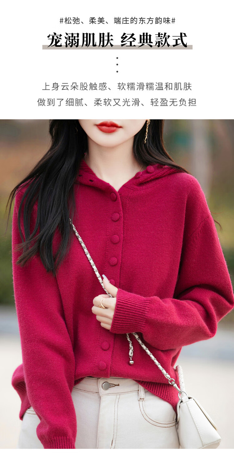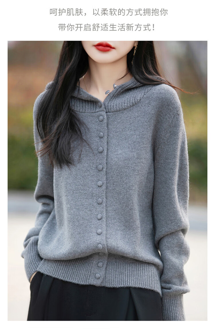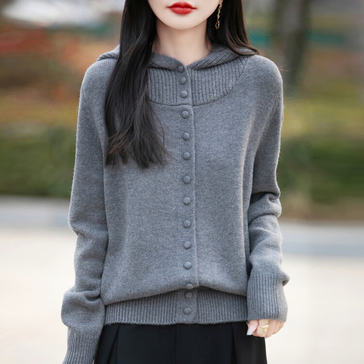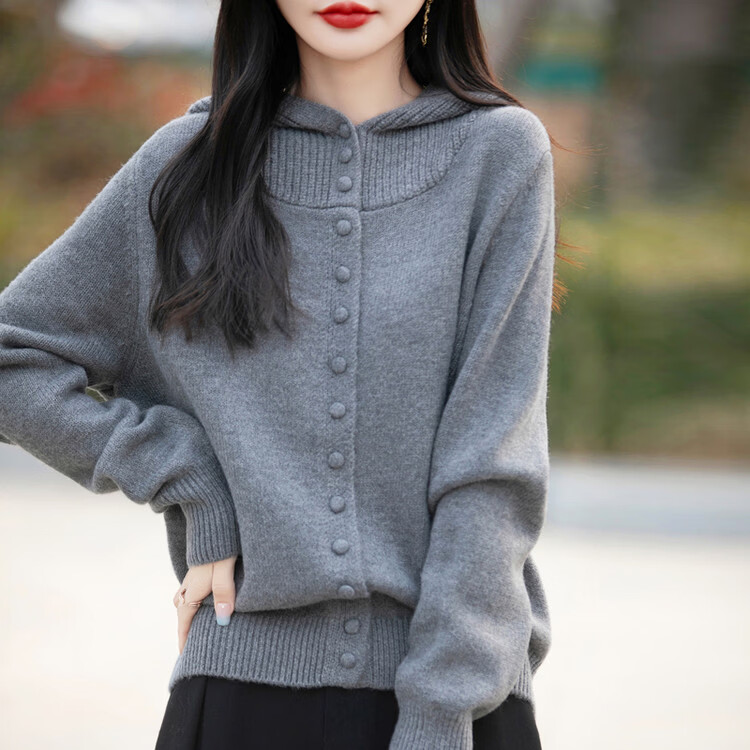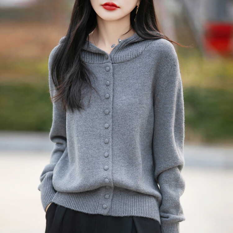 Hengyuanxiang New Year's red sweater for age reduction, a complete set of women's French hooded cardigan sweater wide-leg pants two-piece suit Gray L