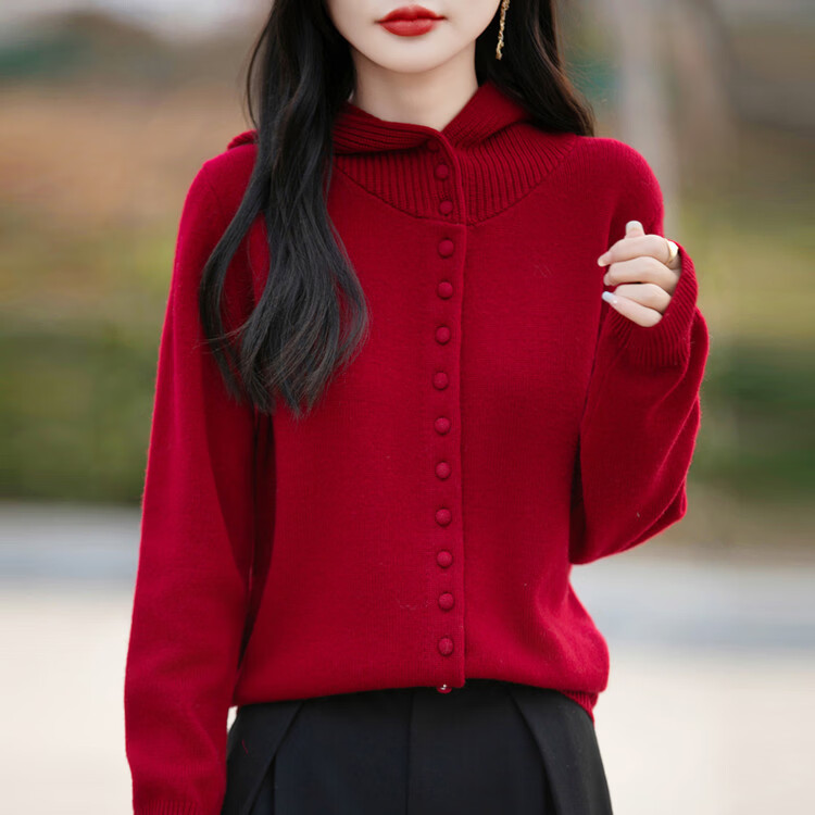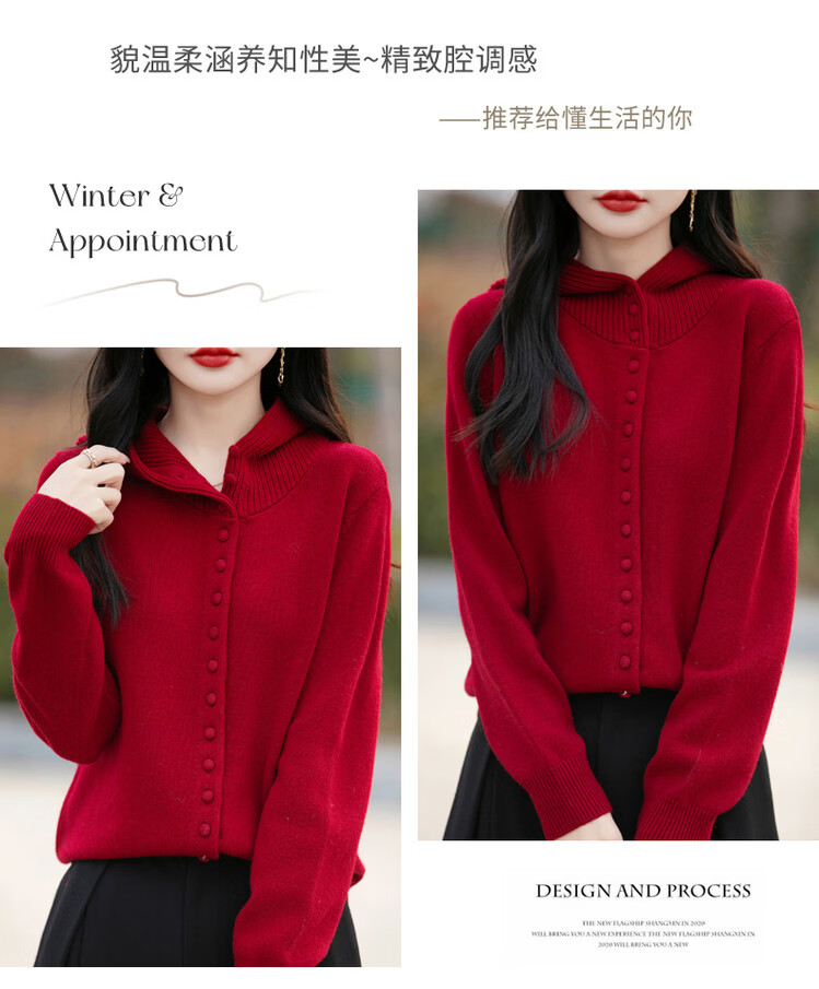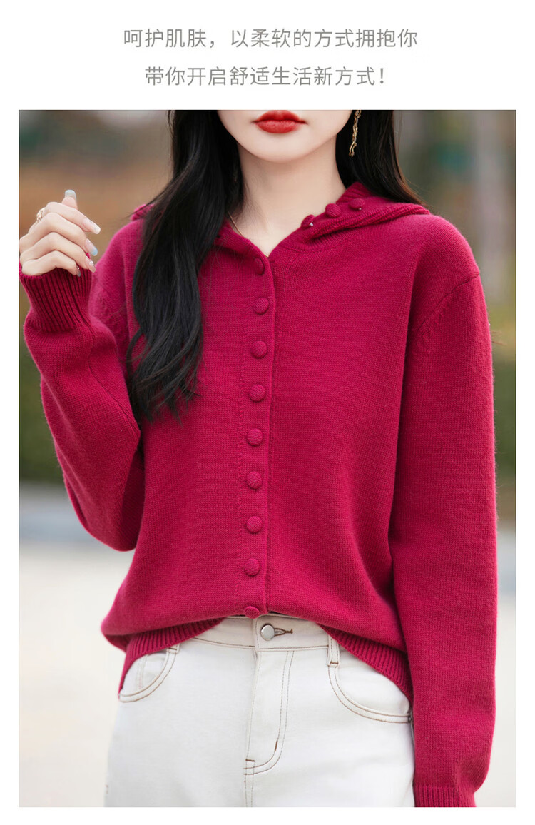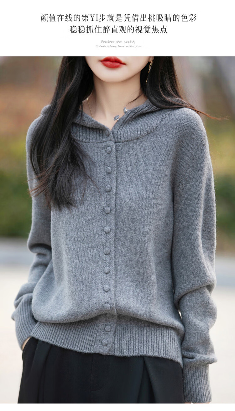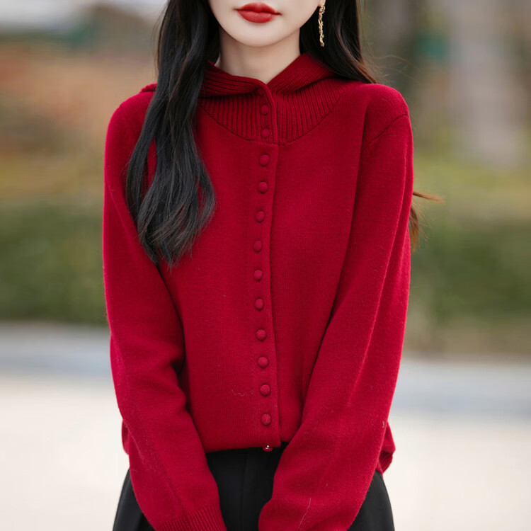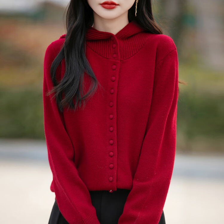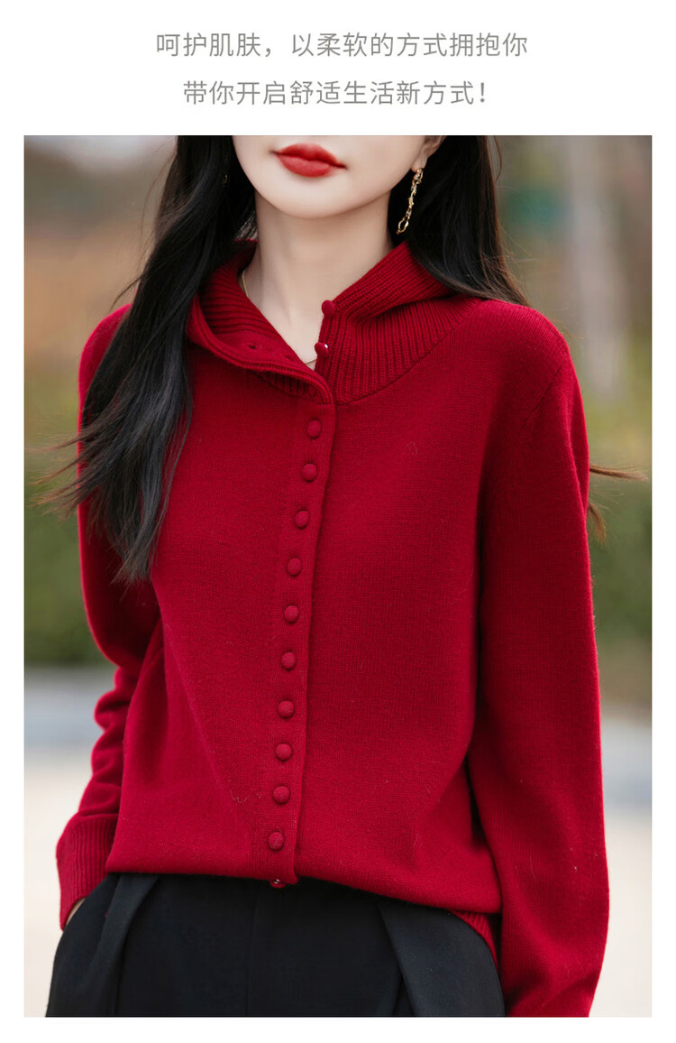 Hengyuanxiang New Year's red sweater for age reduction, a complete set of women's French hooded cardigan sweater wide-leg pants two-piece suit Gray L