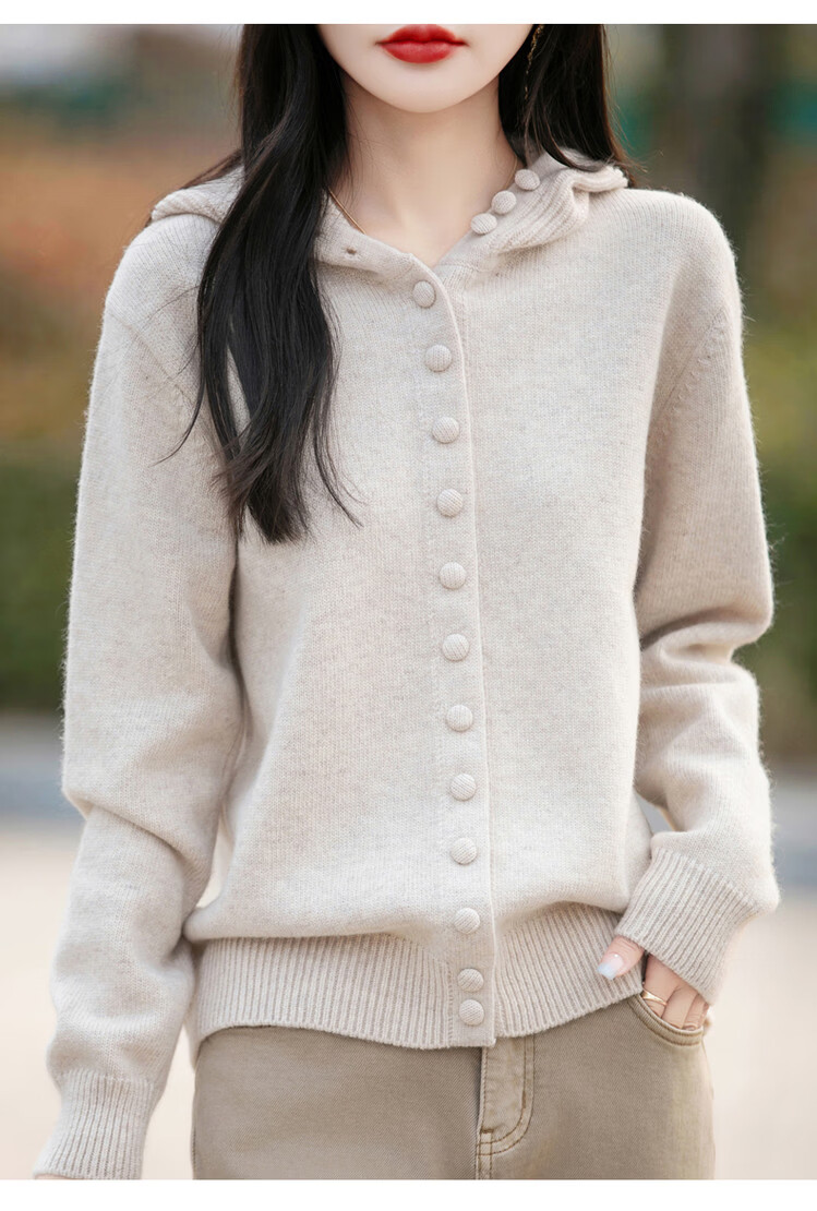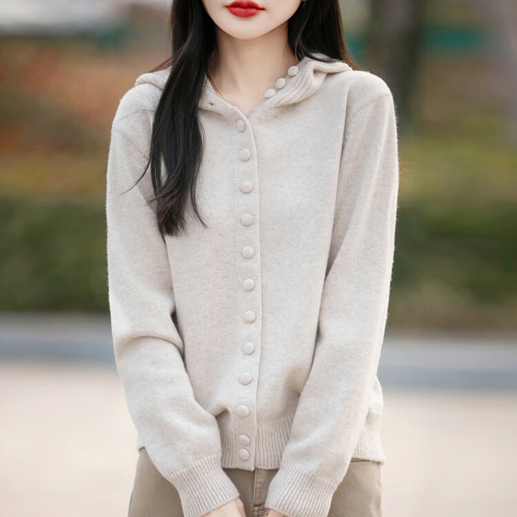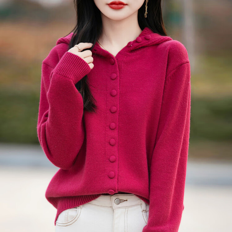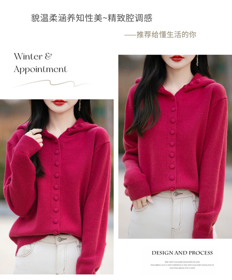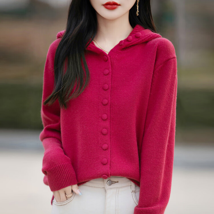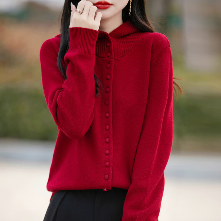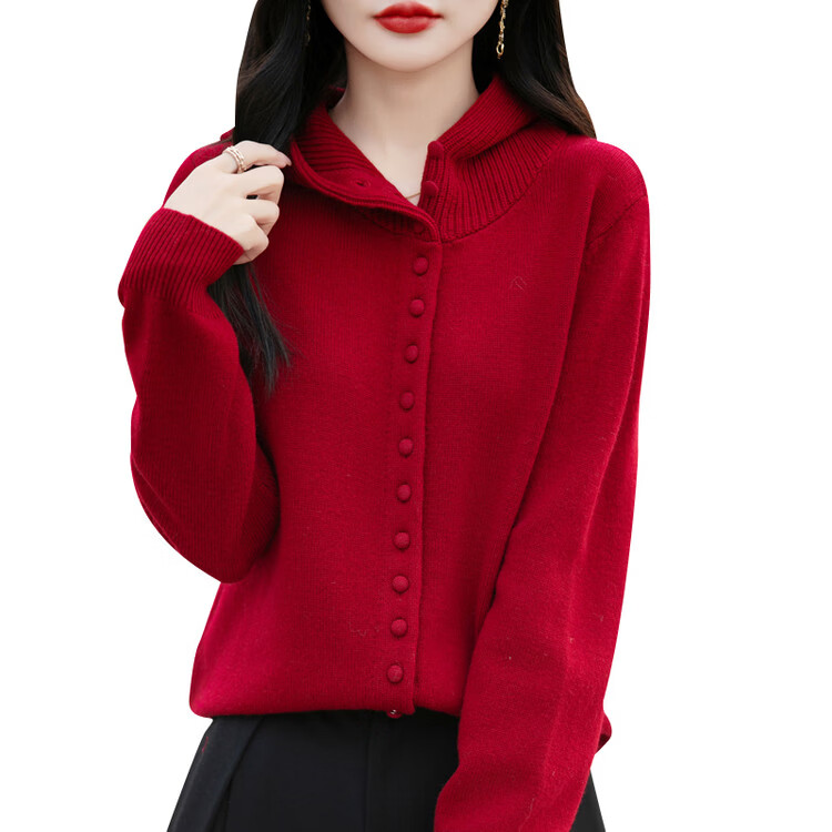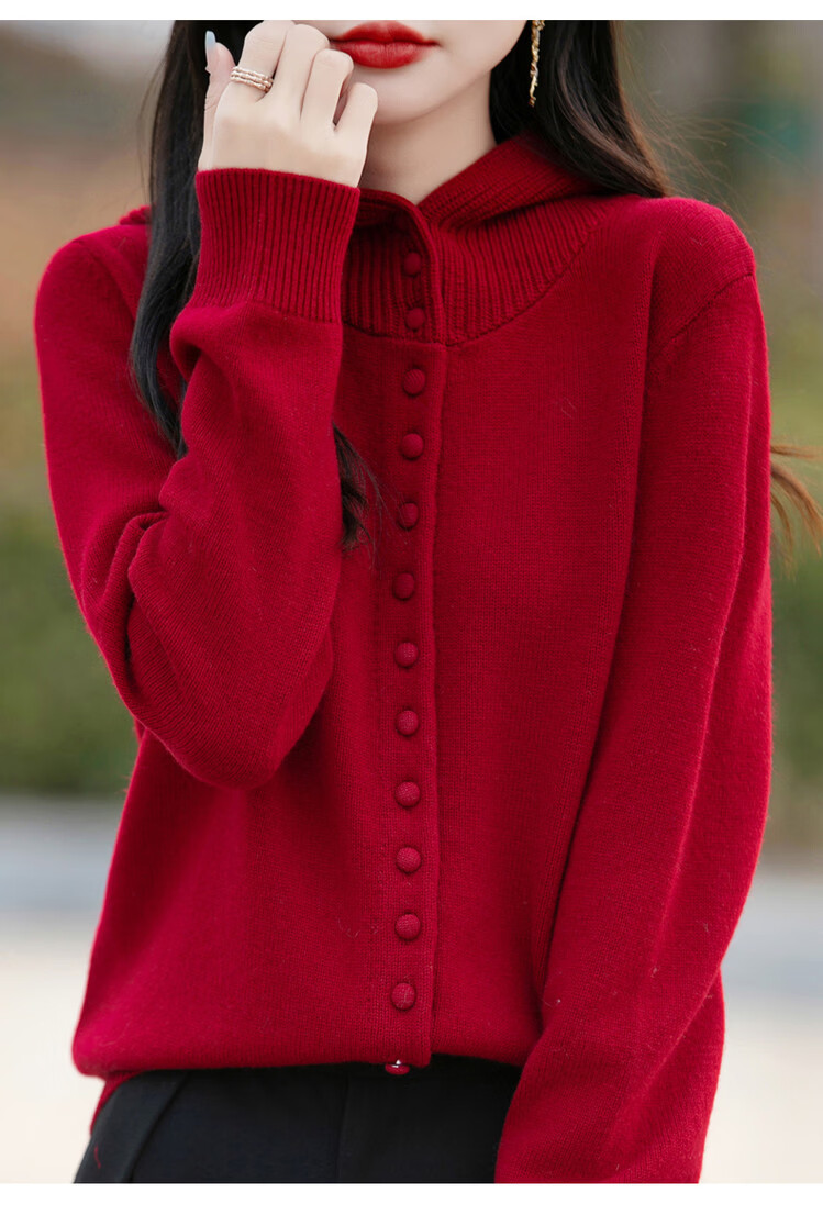 Hengyuanxiang New Year's red sweater for age reduction, a complete set of women's French hooded cardigan sweater wide-leg pants two-piece suit Gray L