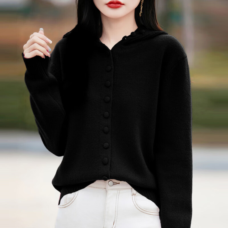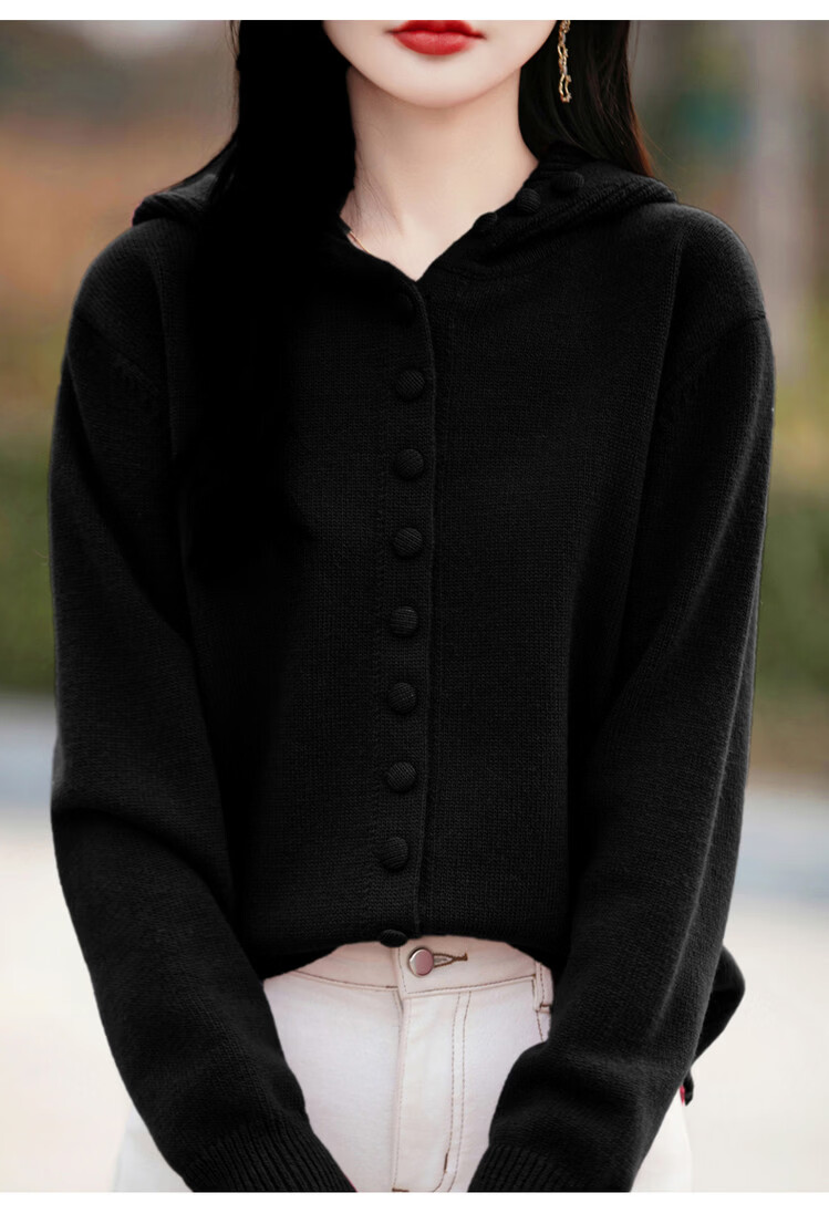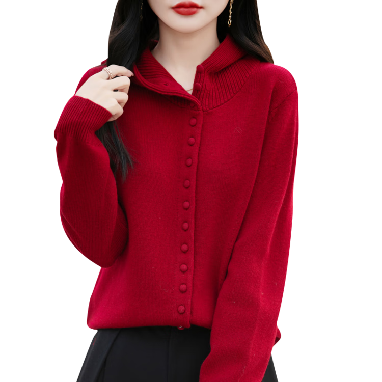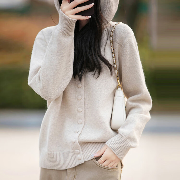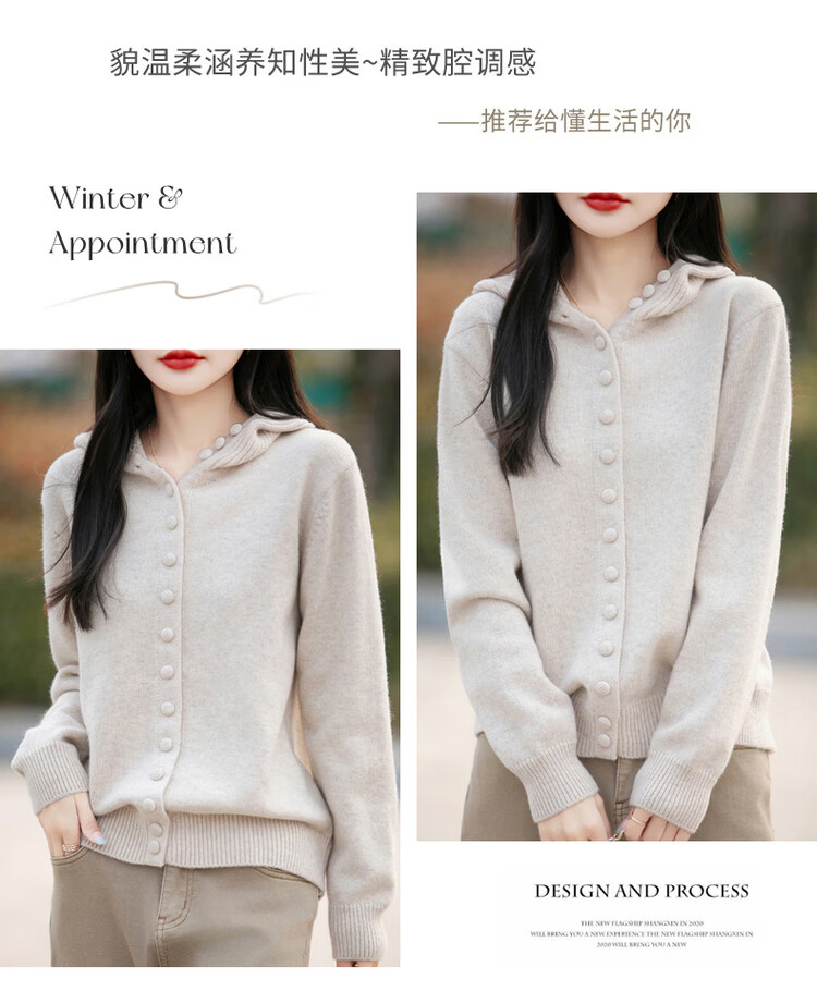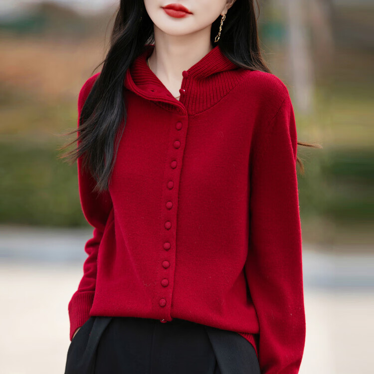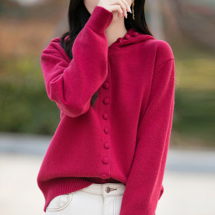 Hengyuanxiang New Year's red sweater for age reduction, a complete set of women's French hooded cardigan sweater wide-leg pants two-piece suit Gray L