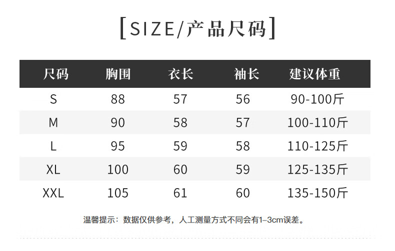 China (cm) 165 / 88-90 170 / 96-98 175 / 108-110 180 / 118-122 185 / 126-130