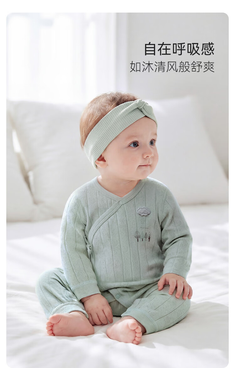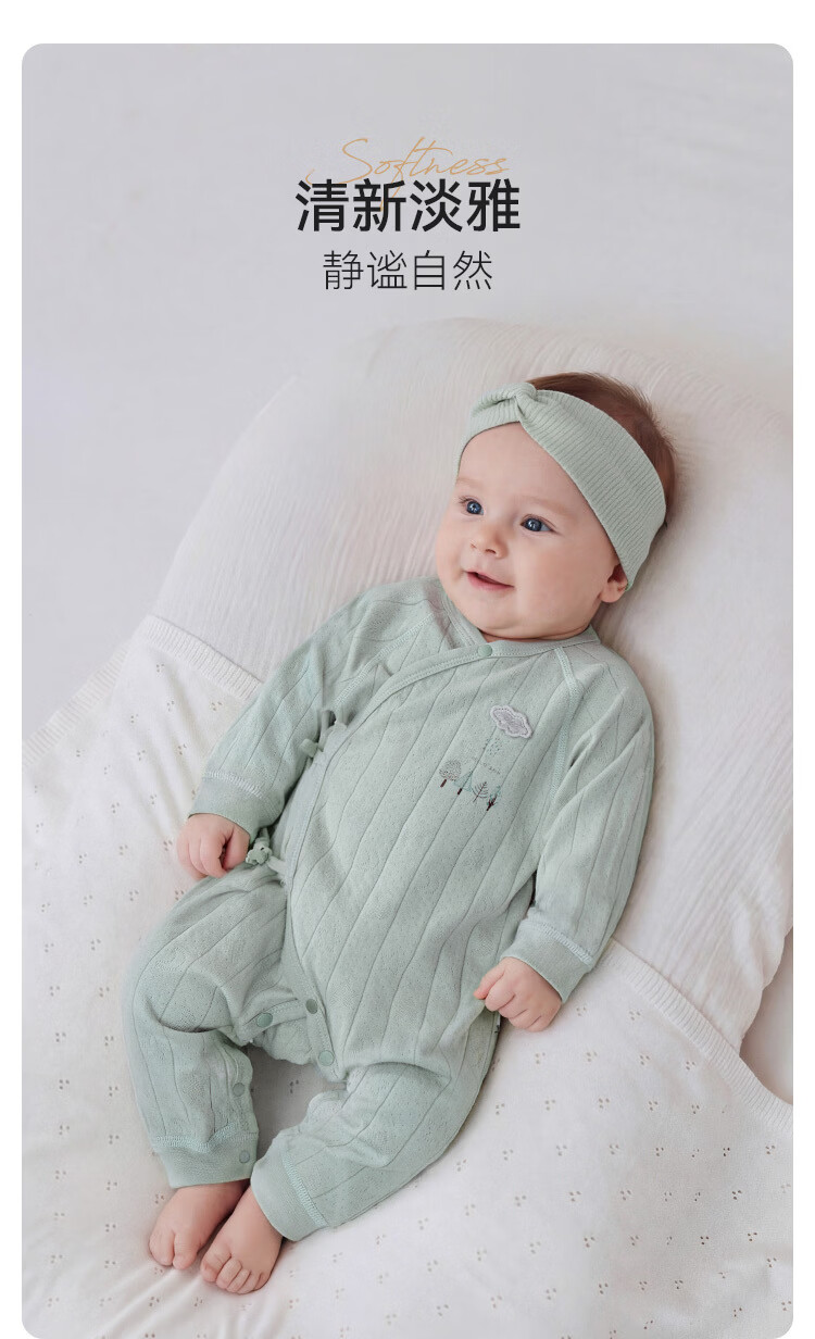 Babylove newborn one-piece spring and autumn baby pure cotton lace-up romper jacquard breathable monk suit Lishui green 52cm