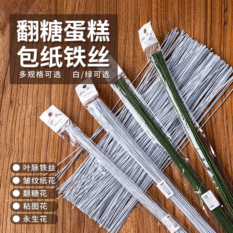 Fantasy fondant wire tool paper package floral art fine wire fondant flower branch cake plug-in ribbon wire 1 meter long 20 pieces