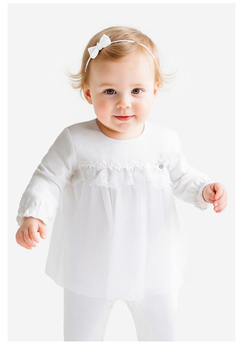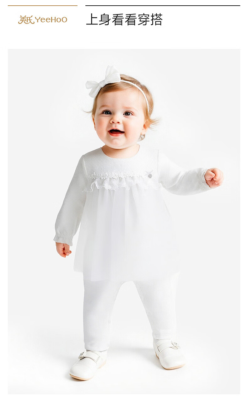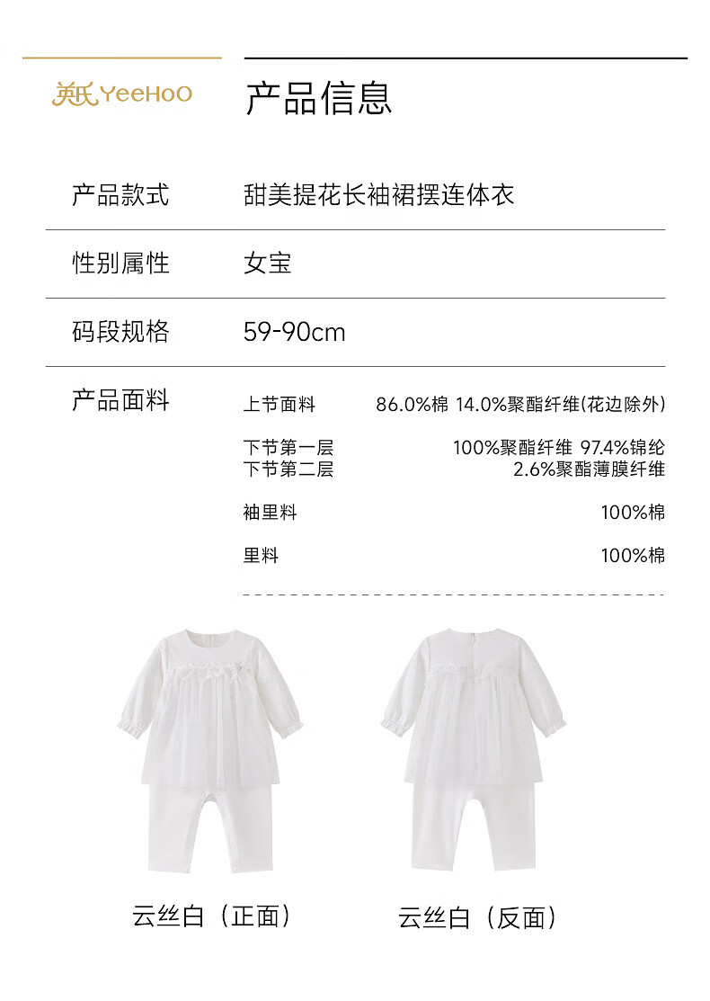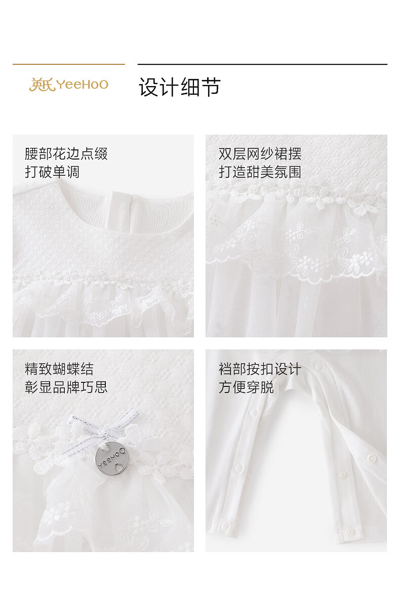 YEEHOO shopping mall same style newborn clothes long-sleeved baby girl zipper solid color jumpsuit baby outing clothes Yunsi white 73cm