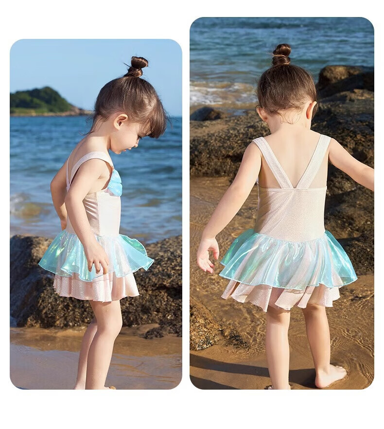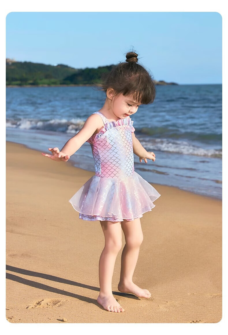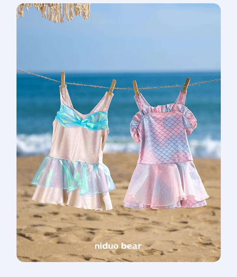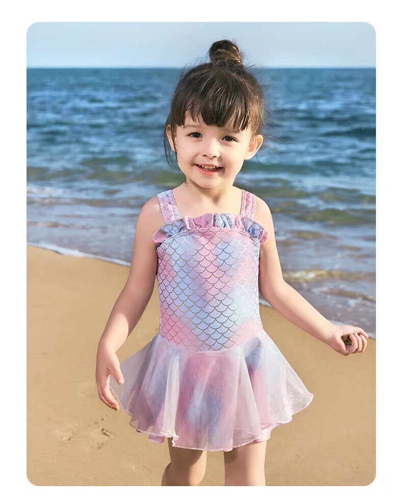 Nidokuma children's mermaid swimsuit girls one-piece swimsuit baby dress swimsuit quick-drying sun protection Rose Mermaid 80 cm