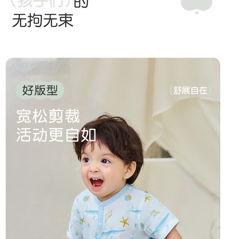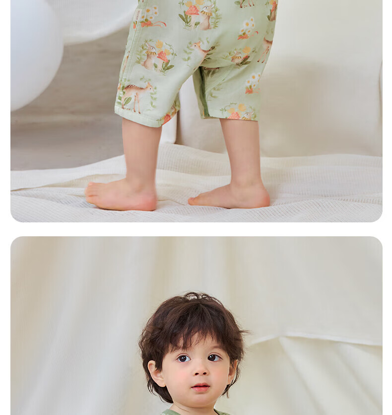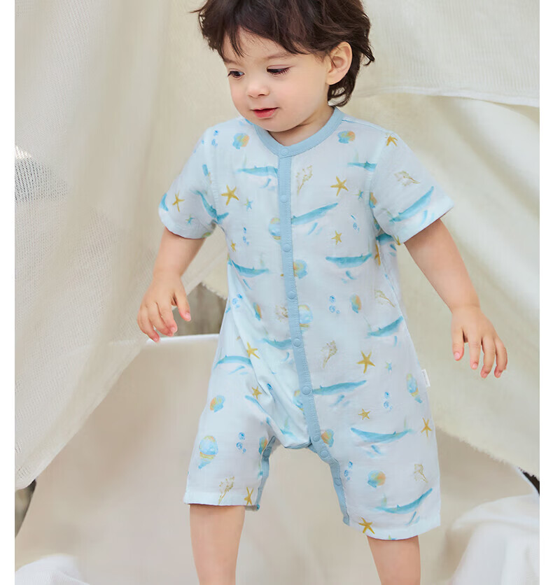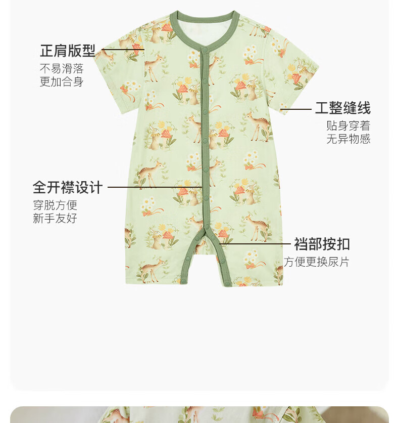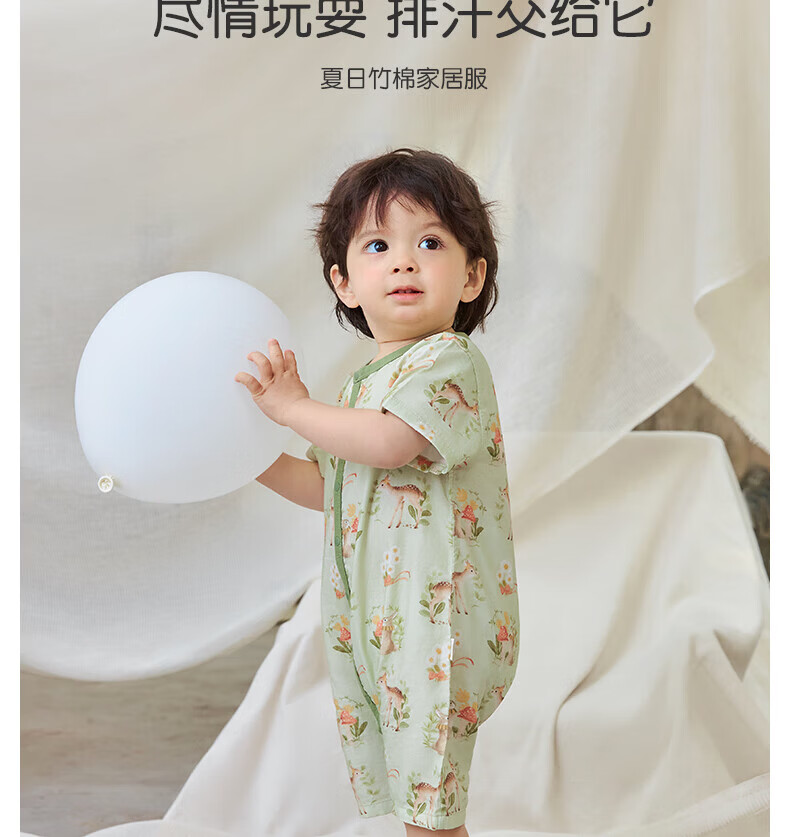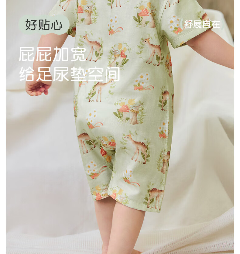 Nido Bear summer new baby jumpsuit gauze baby crawling clothes newborn short-sleeved bamboo fiber forest deer 66cm