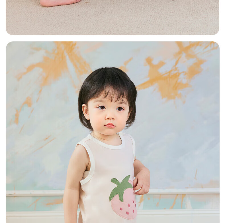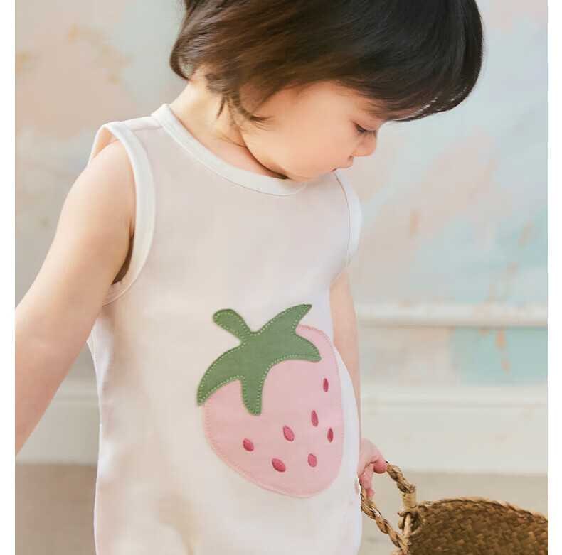 Nido Bear summer new baby jumpsuit baby sleeveless baby vest newborn vest crawling suit air-conditioned suit cream strawberry 73cm