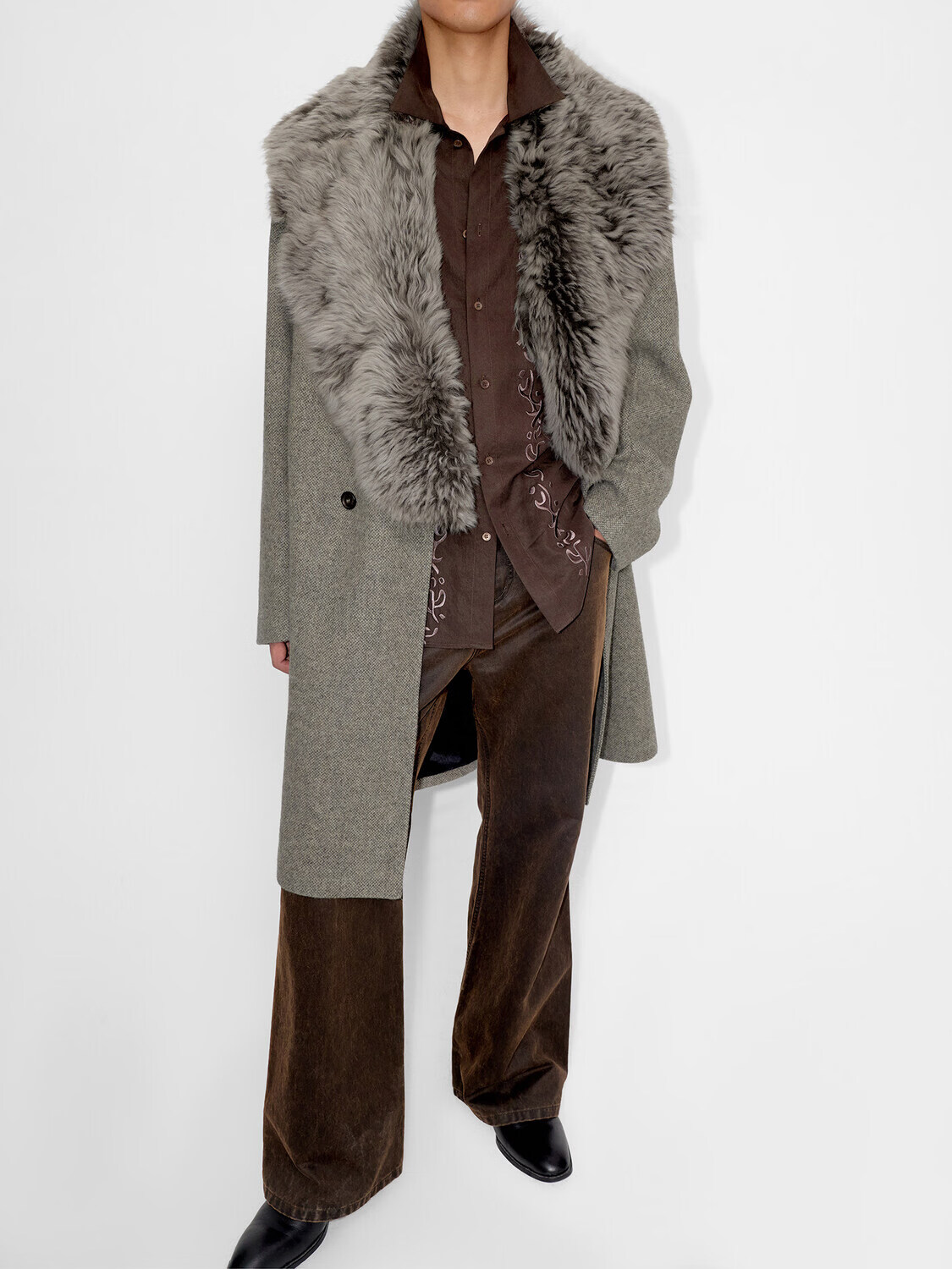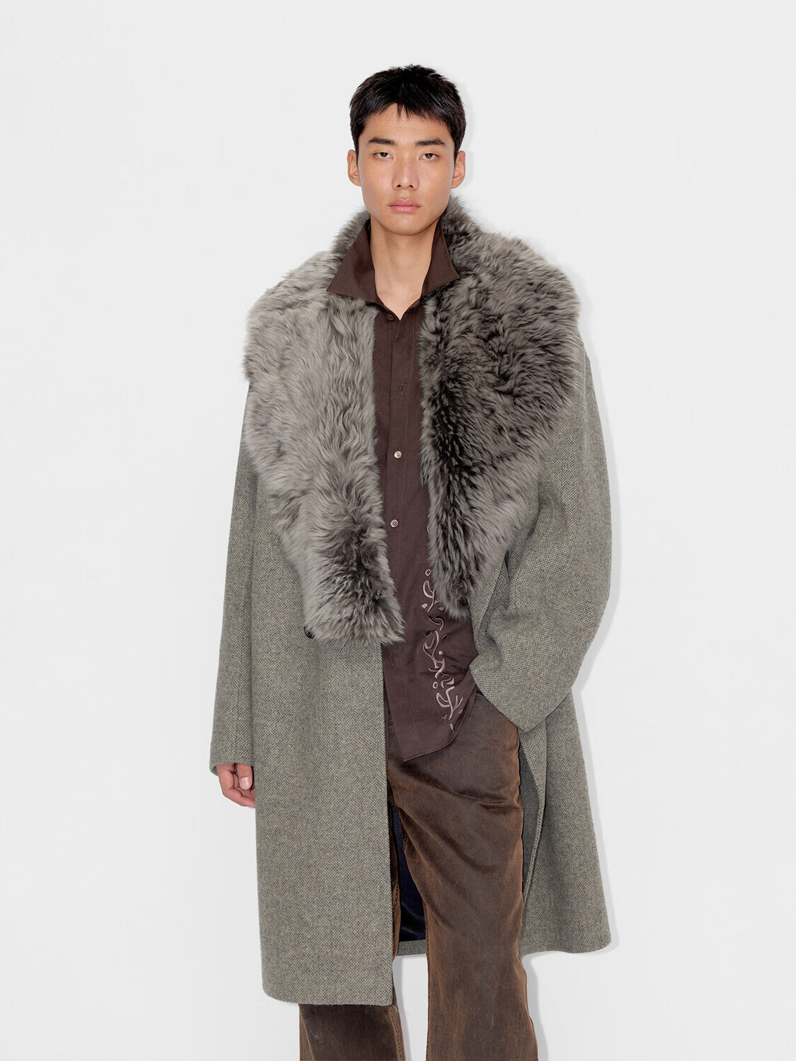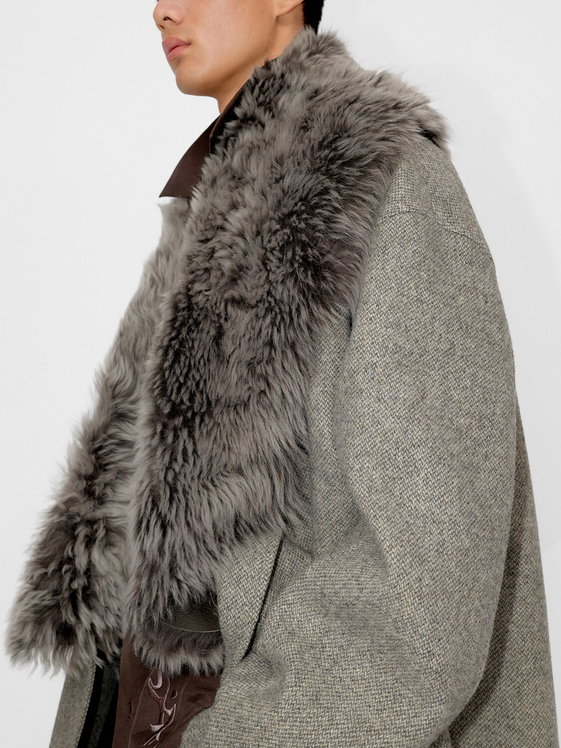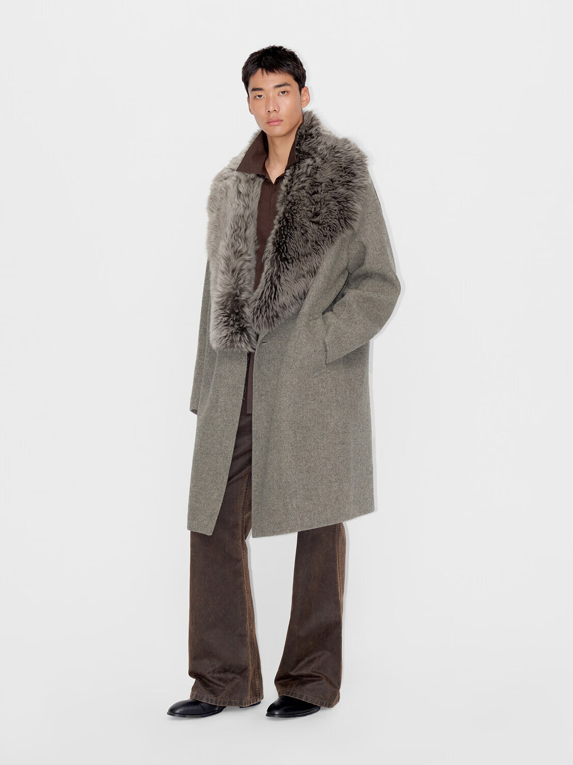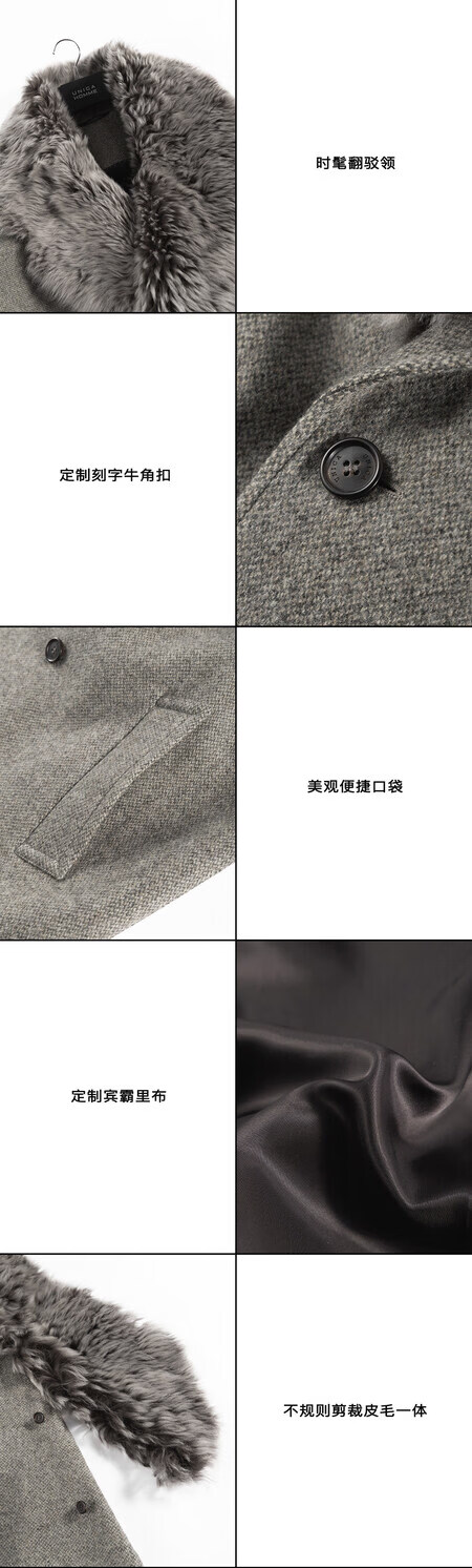 UNICA HOMME detachable fur one-collar wool tweed lapel coat amber beige coat S ready for delivery within 48 hours