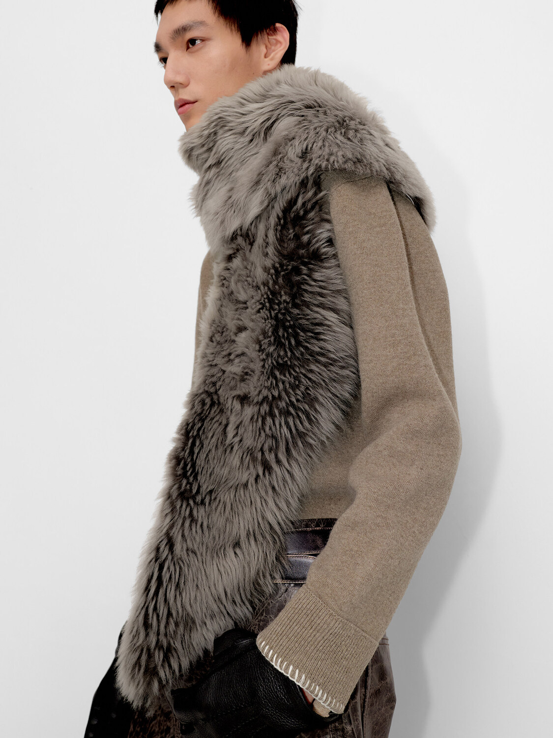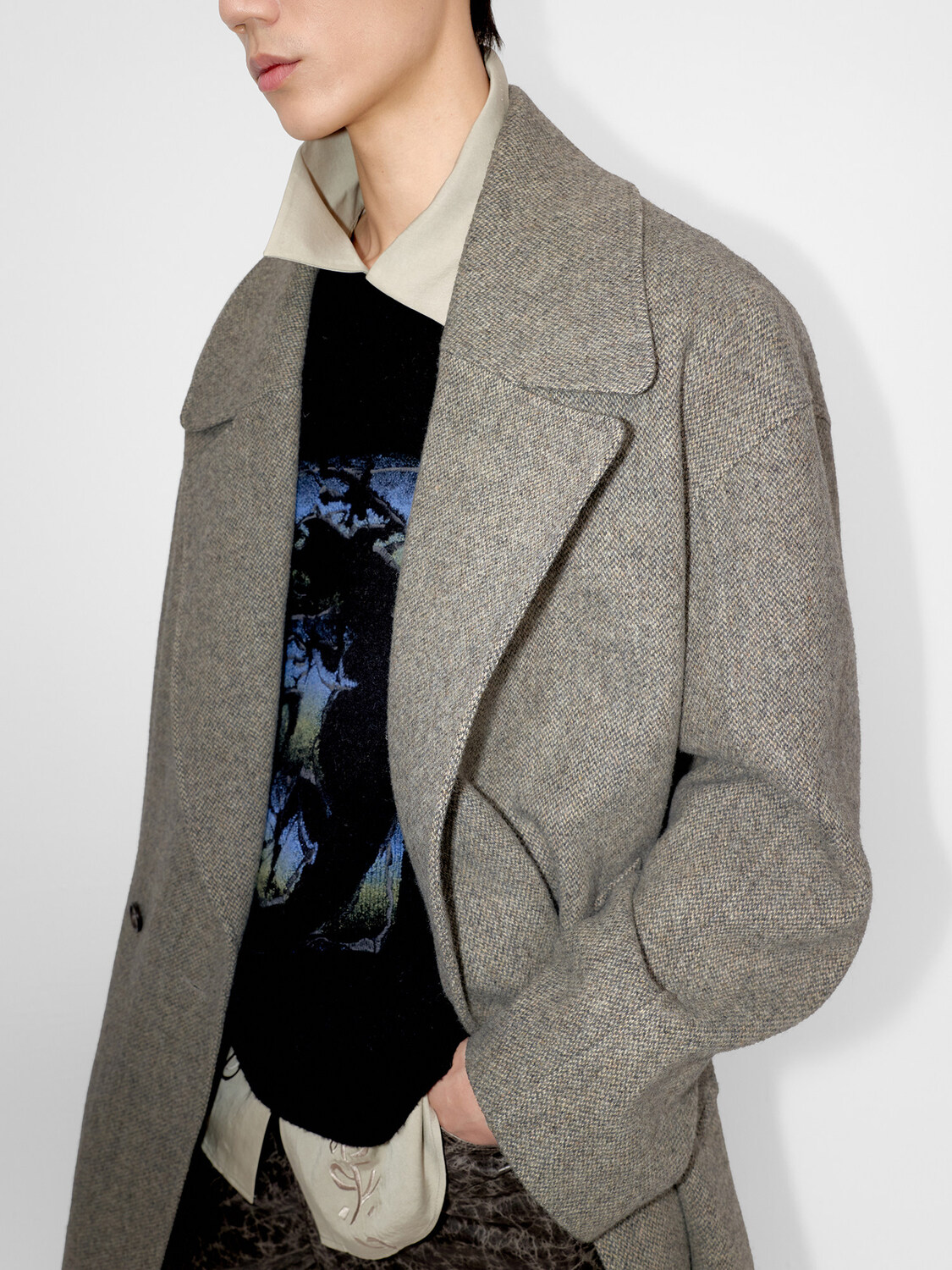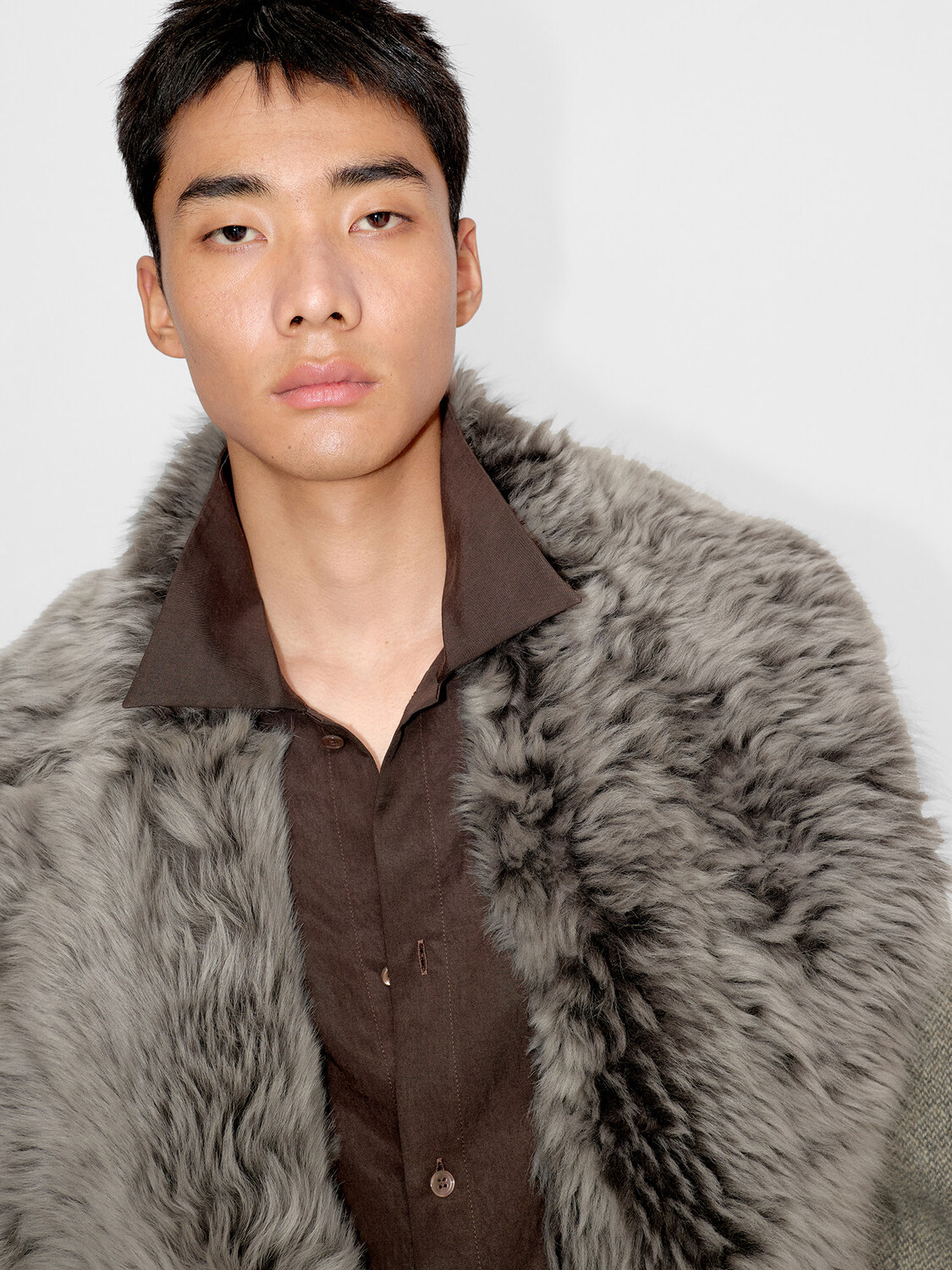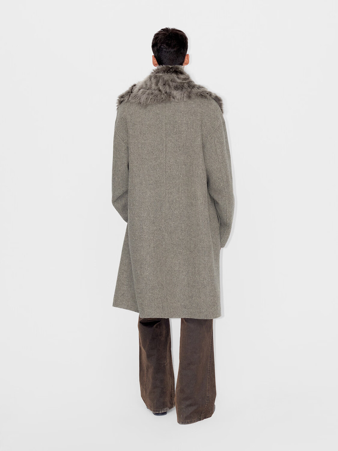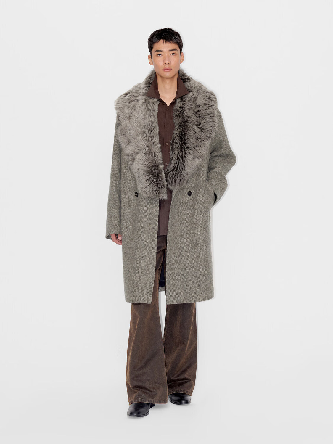 UNICA HOMME detachable fur one-collar wool tweed lapel coat amber beige coat S ready for delivery within 48 hours
