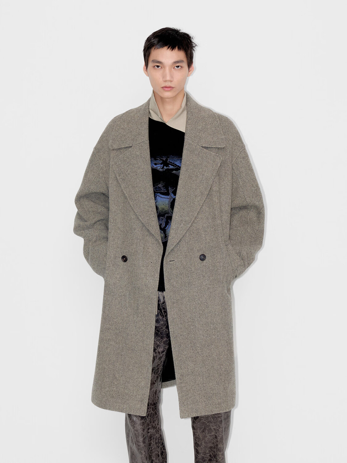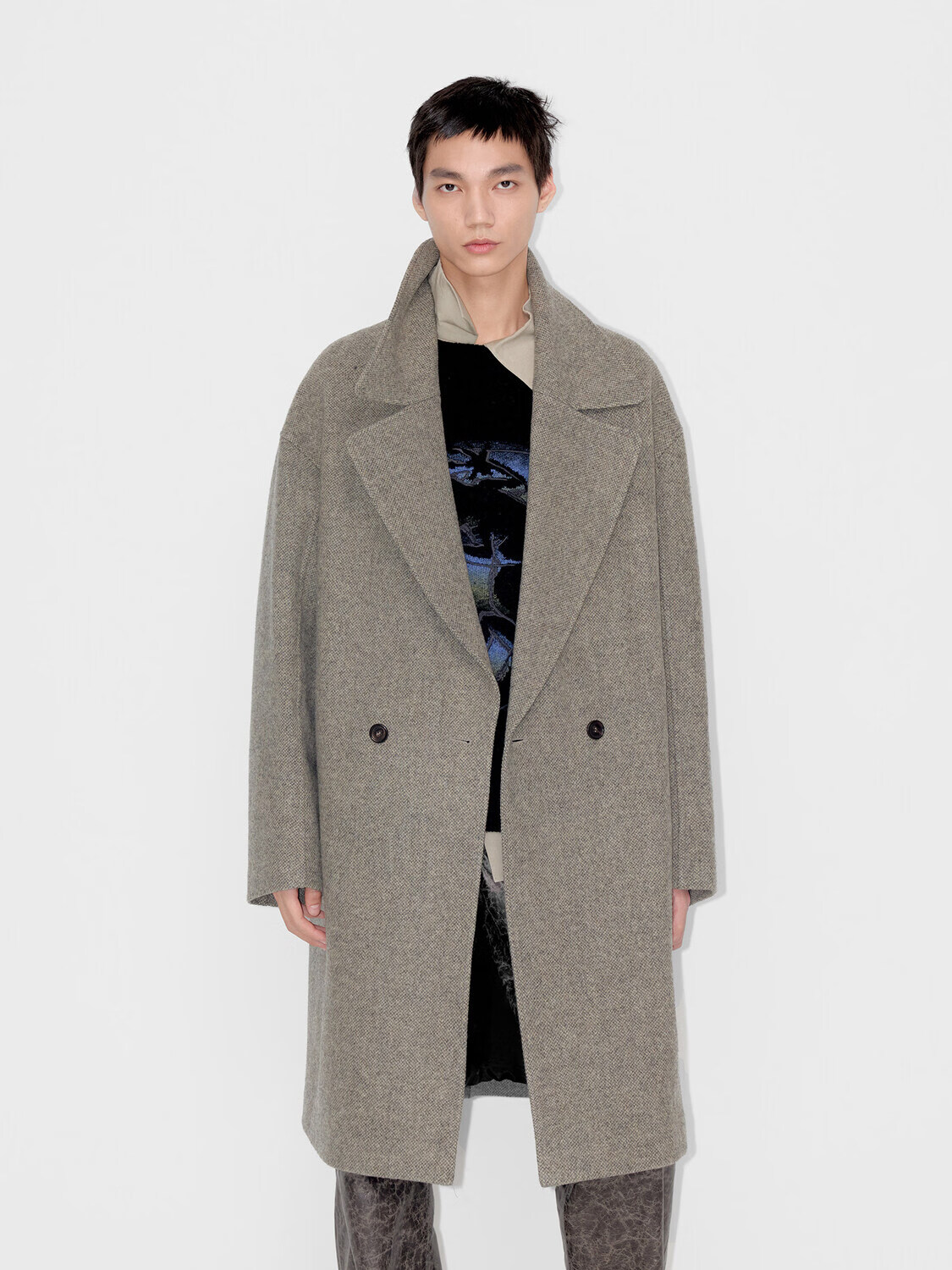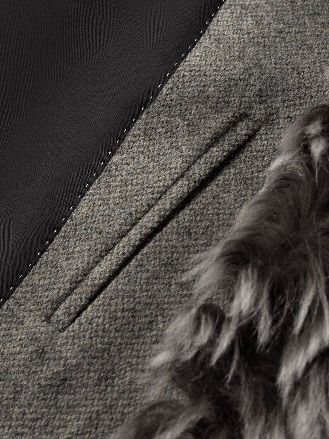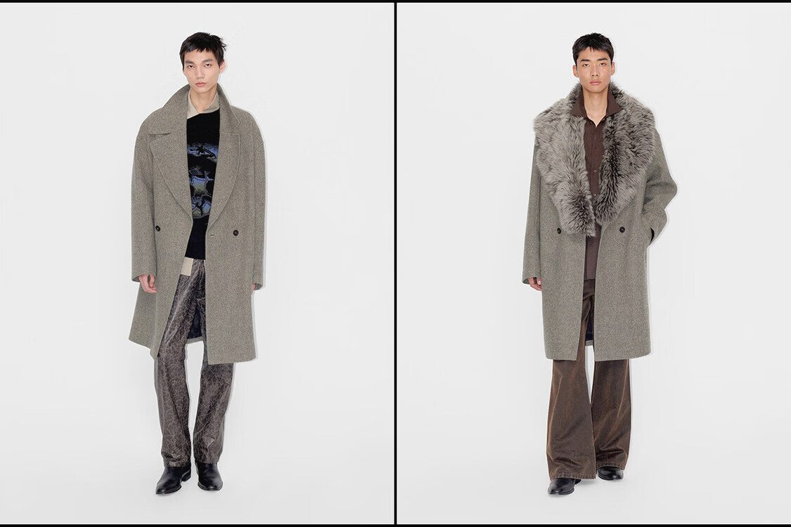 UNICA HOMME detachable fur one-collar wool tweed lapel coat amber beige coat S ready for delivery within 48 hours