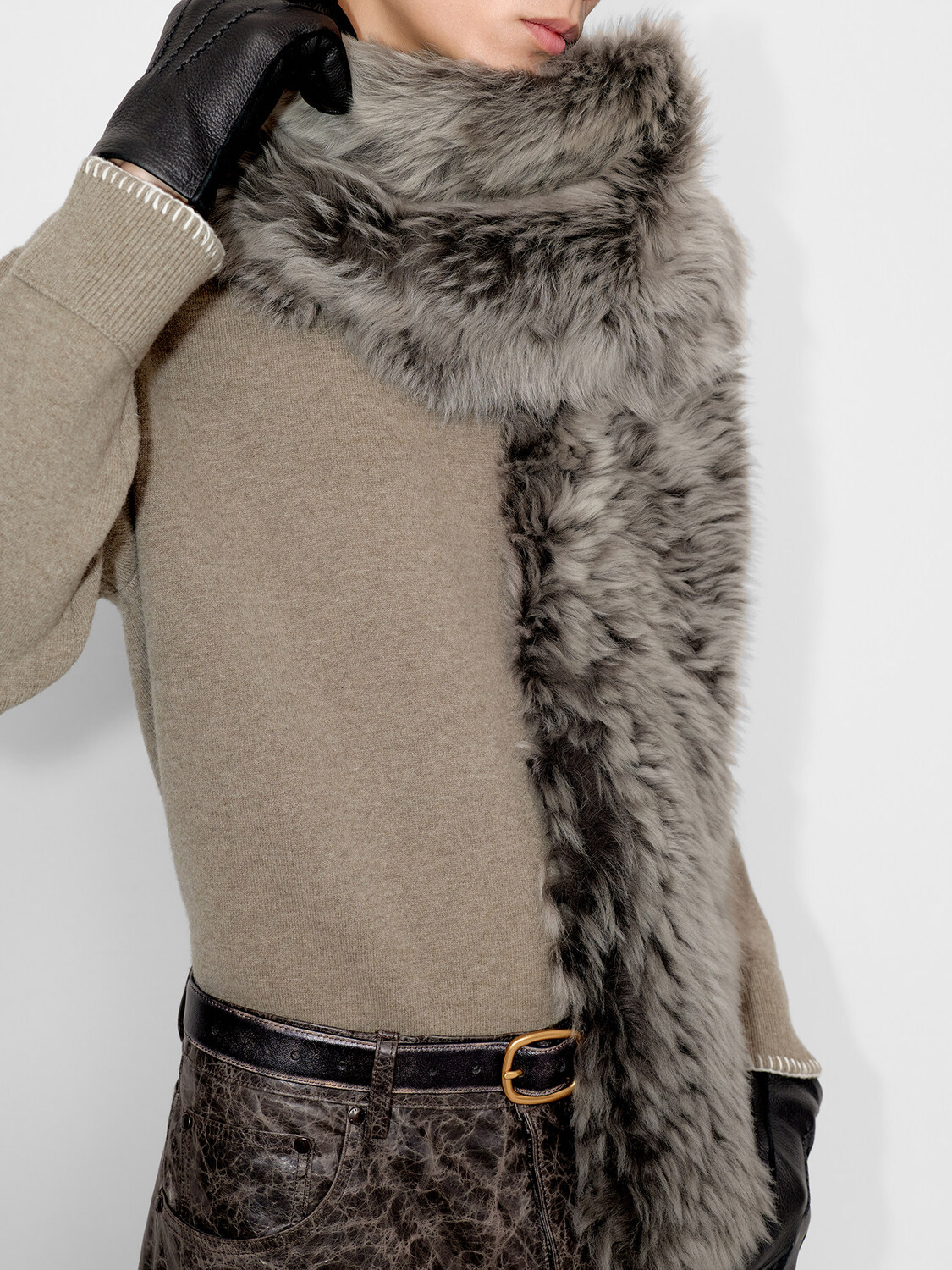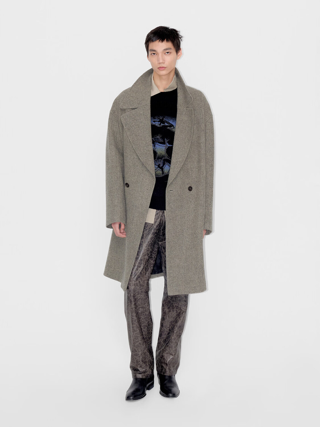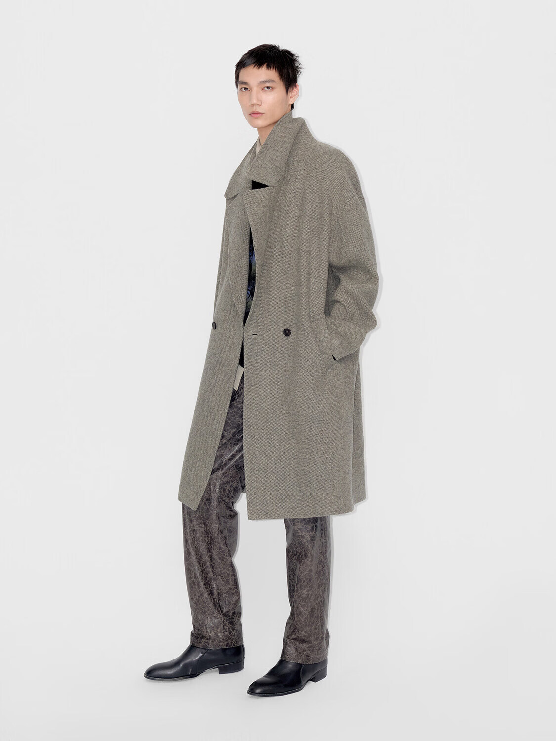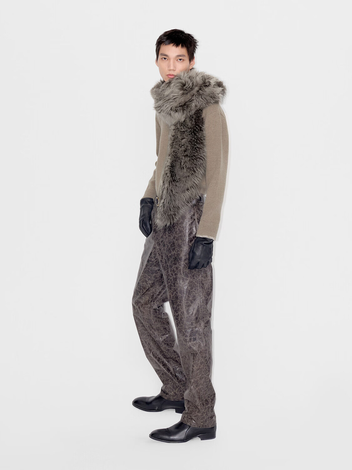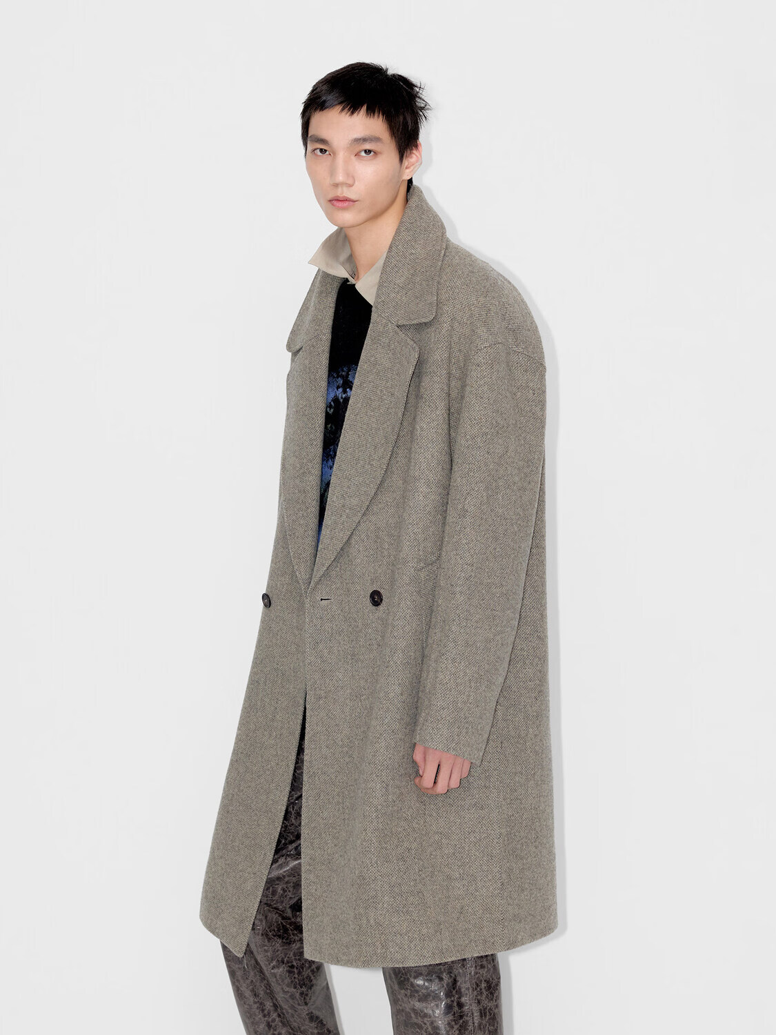 UNICA HOMME detachable fur one-collar wool tweed lapel coat amber beige coat S ready for delivery within 48 hours