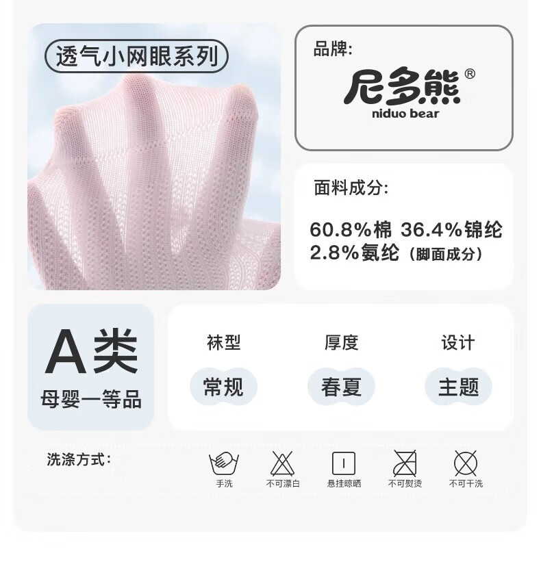 Nido Bear Baby Socks Summer Thin Cotton Socks Baby Breathable Mesh Socks Girls Boneless Socks Children's Socks S4013 Summer Large Mesh 4 Pairs 6-12 Months (Suitable for Feet Length 9-11cm)