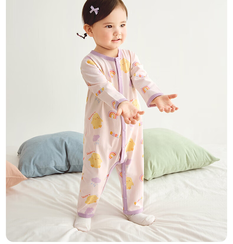 Nido Bear Spring Clothes New Baby Clothes Baby Onesies Pure Cotton Rompers Infants and Toddlers Spring and Autumn Pajamas Rainbow Chick 66cm