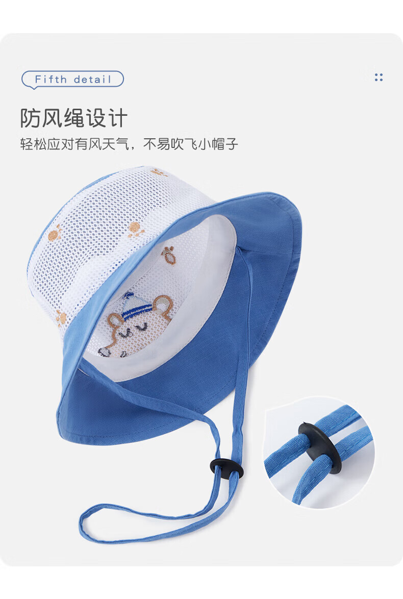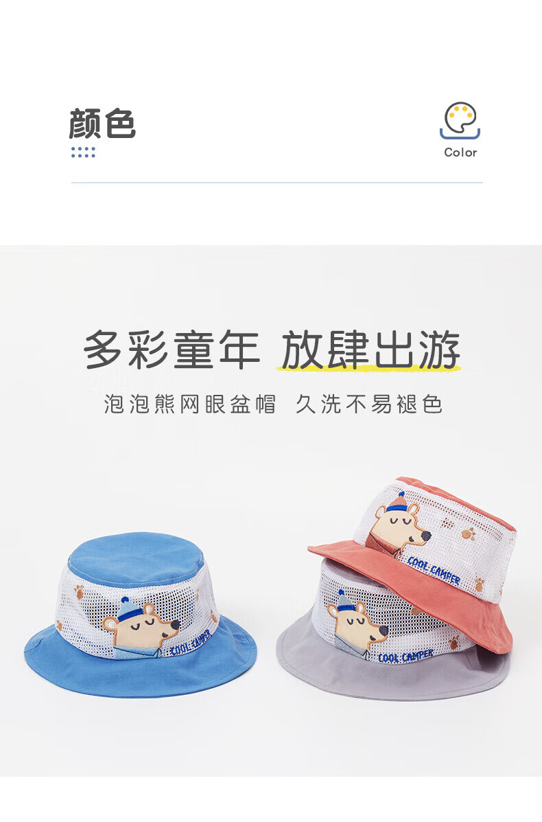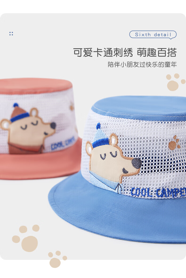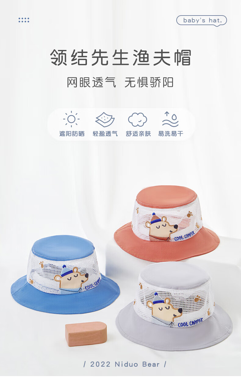 Nido Bear children's hat summer breathable mesh sun hat baby hat sun protection fisherman hat basin hat MSQ224 red head circumference 48 (suitable for 1-2 years old)